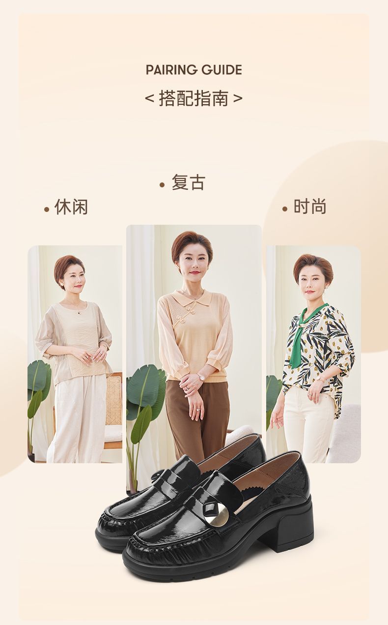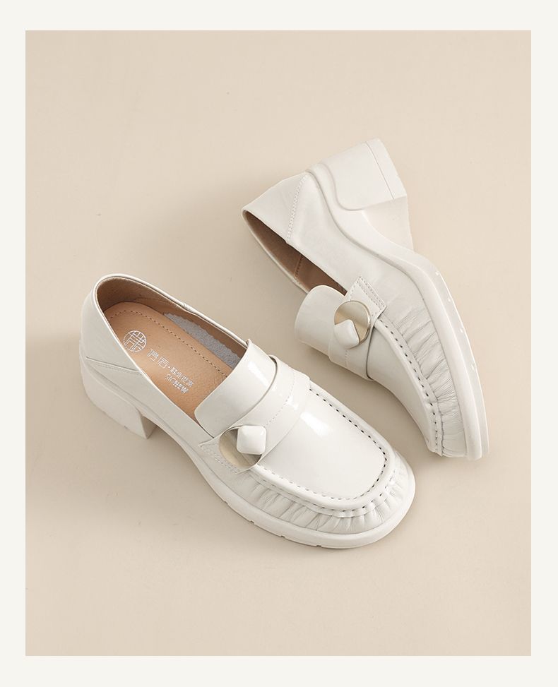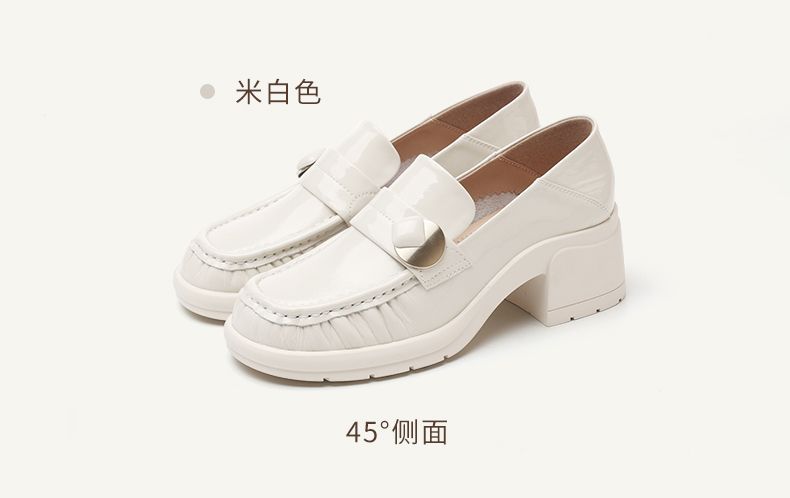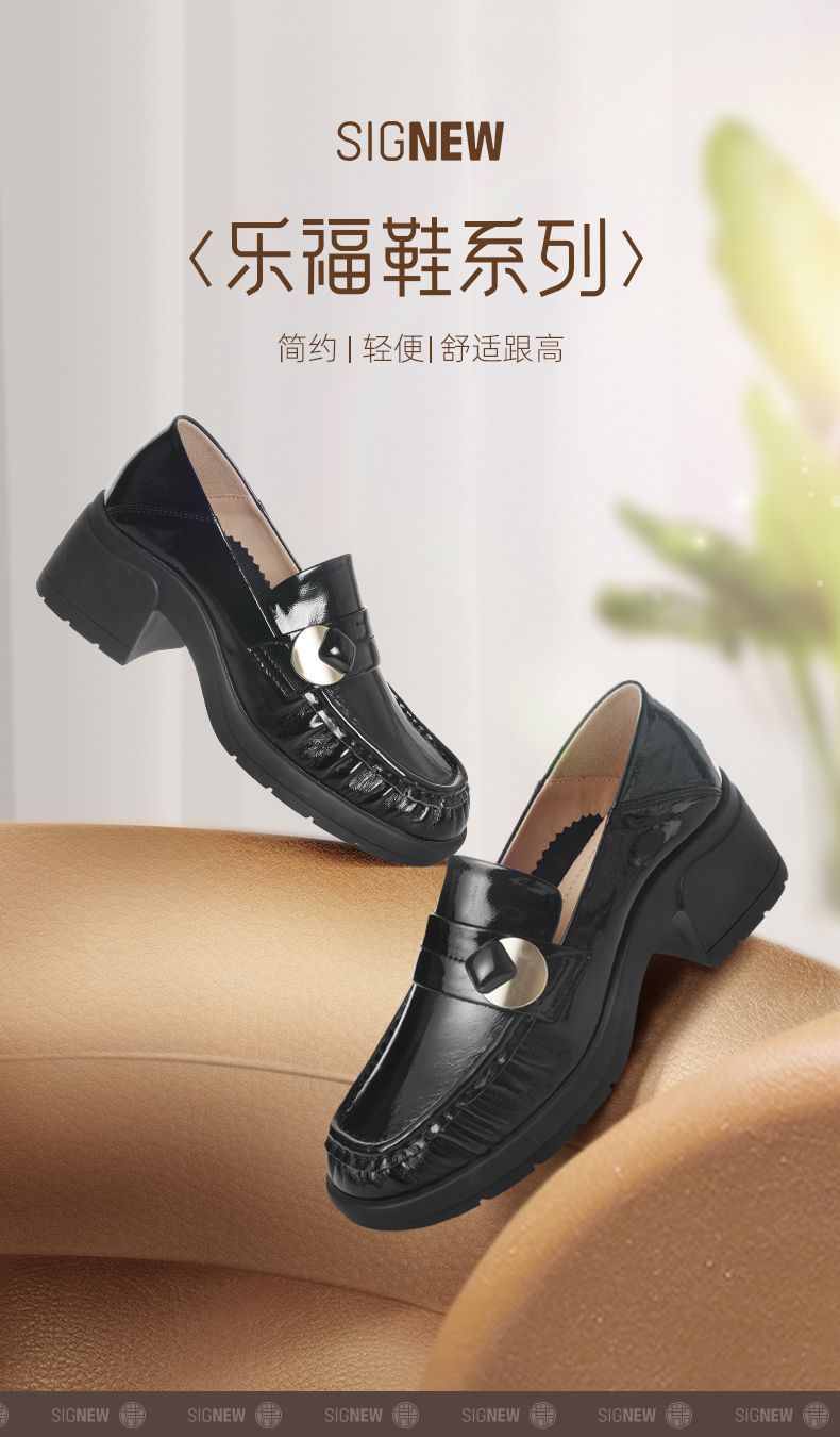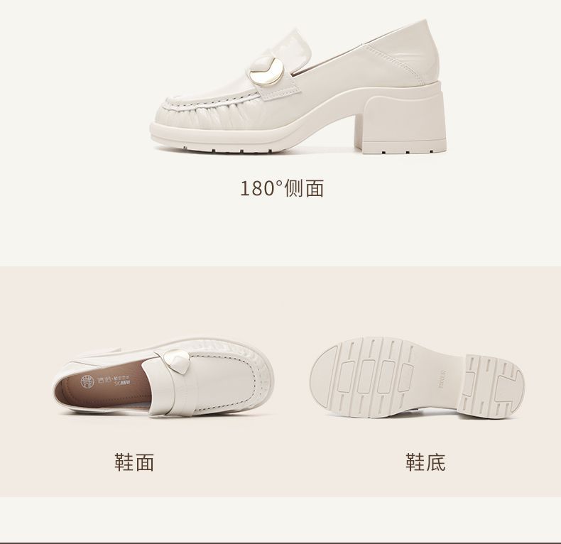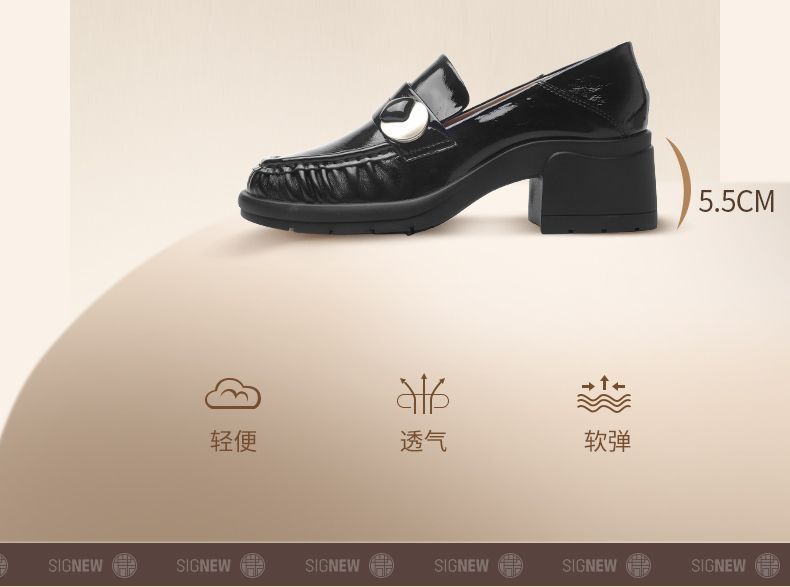 信诺真皮厚底粗跟英伦风乐福鞋2025年春季新款软底女鞋一脚蹬单鞋X5C009-61