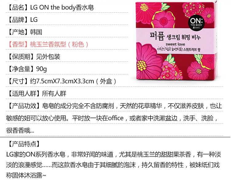 【中欧班列精选】XDR 韩国 ON香水皂 粉 桃玉兰香90G 2块