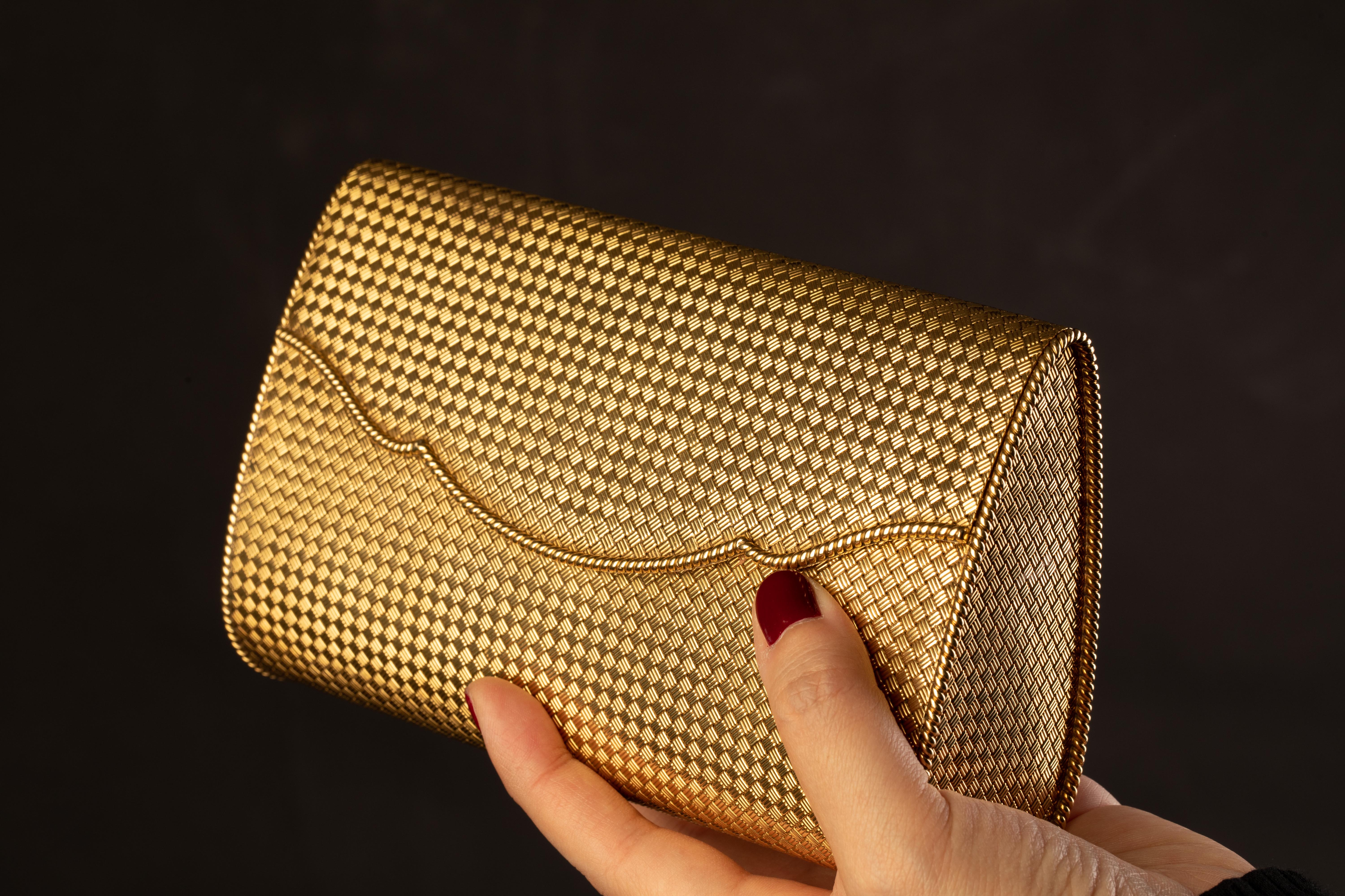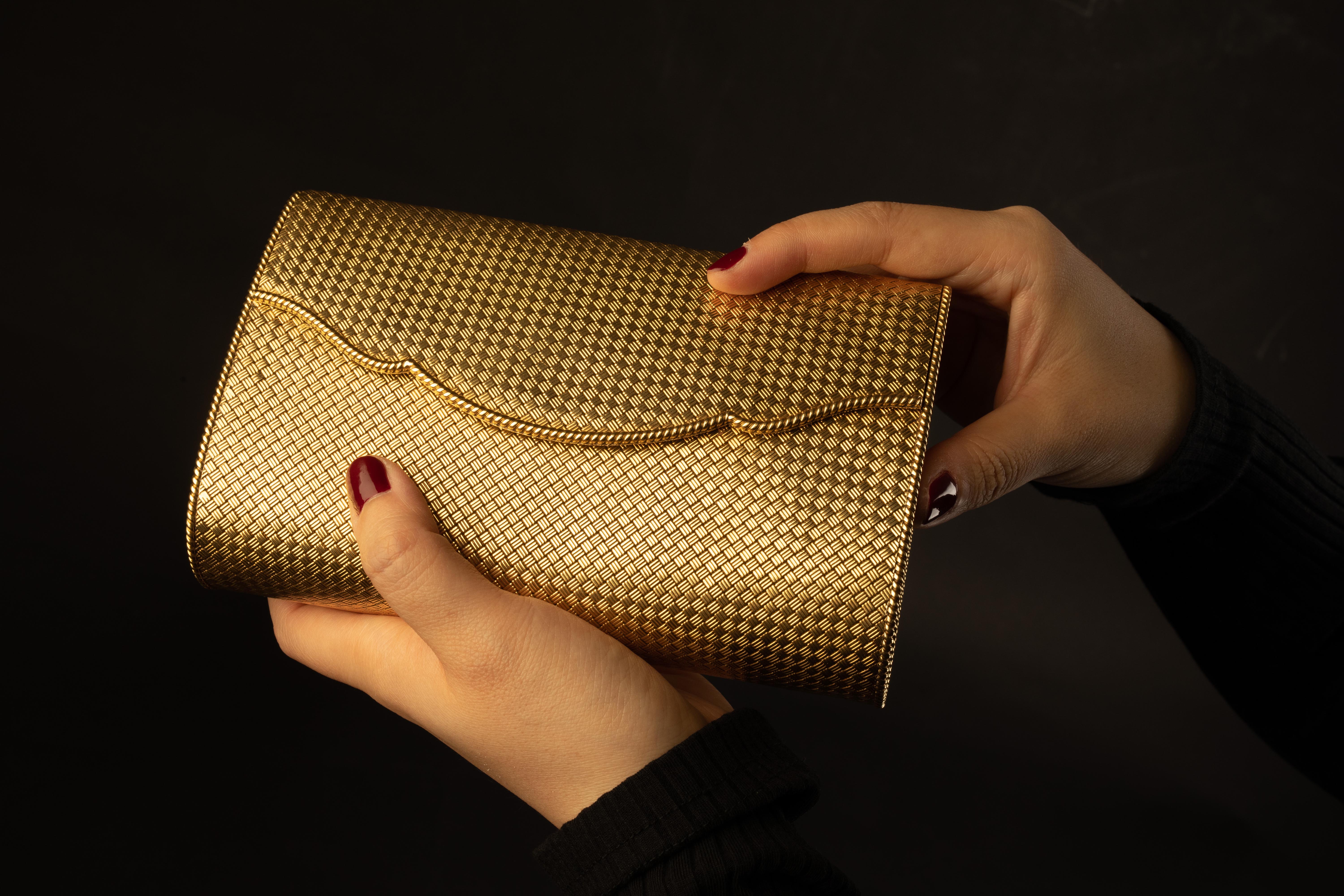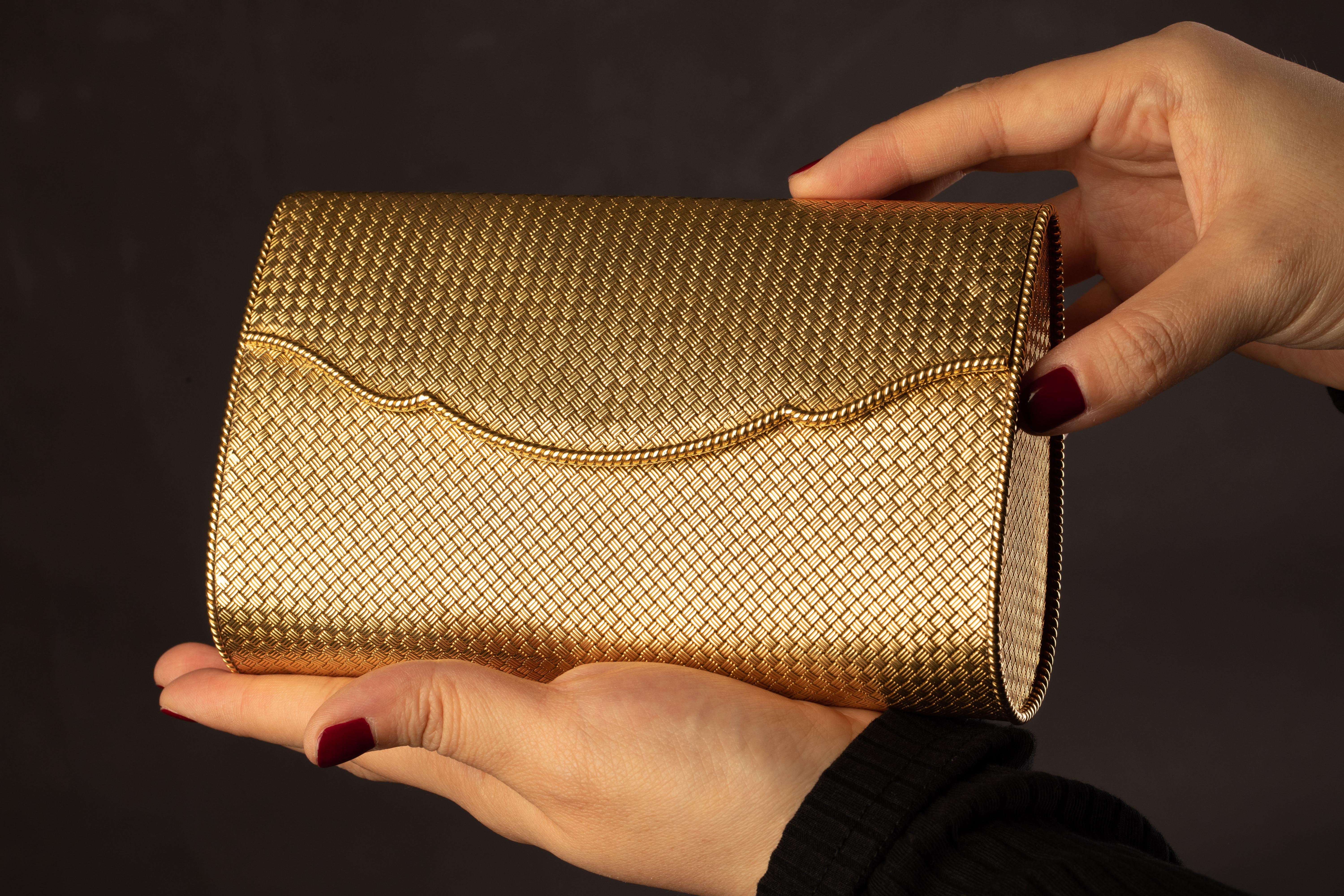独角鹿西洋古董法国珠宝世家出品18K黄金编织晚宴包