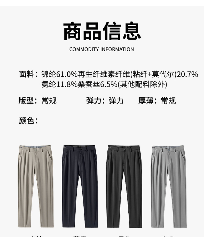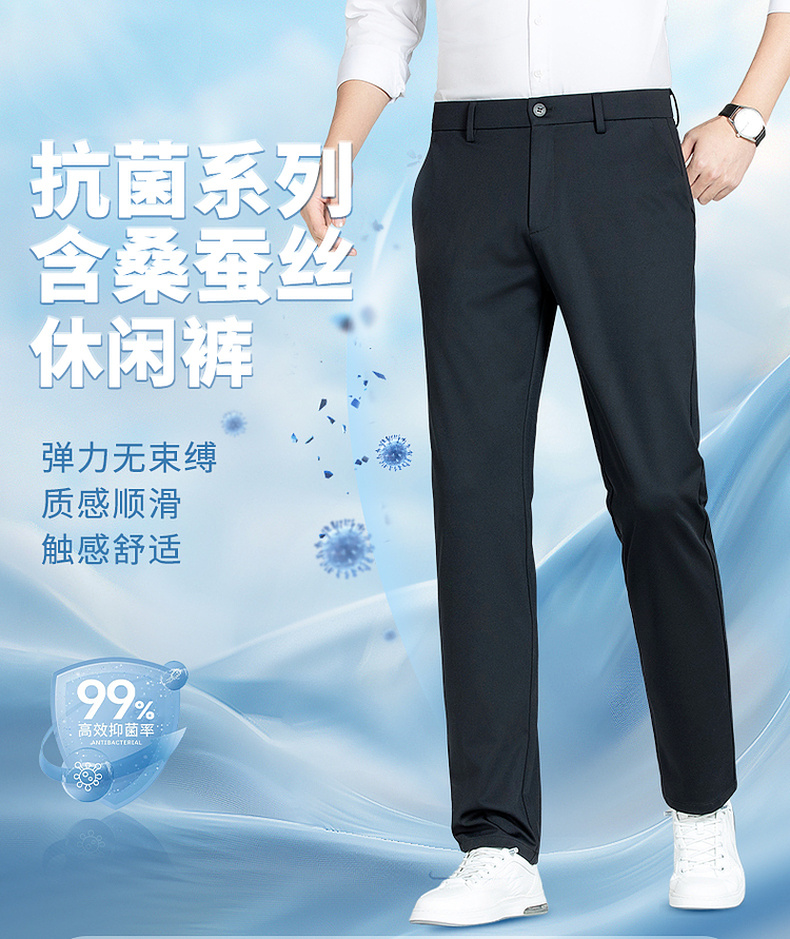 【含桑蚕丝&抗菌】圣得西男士休闲裤2025年夏季新款弹力商务长裤