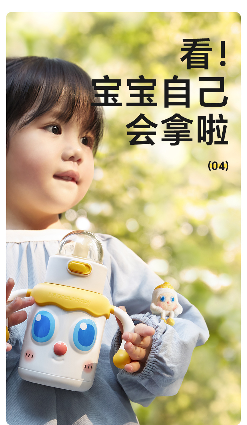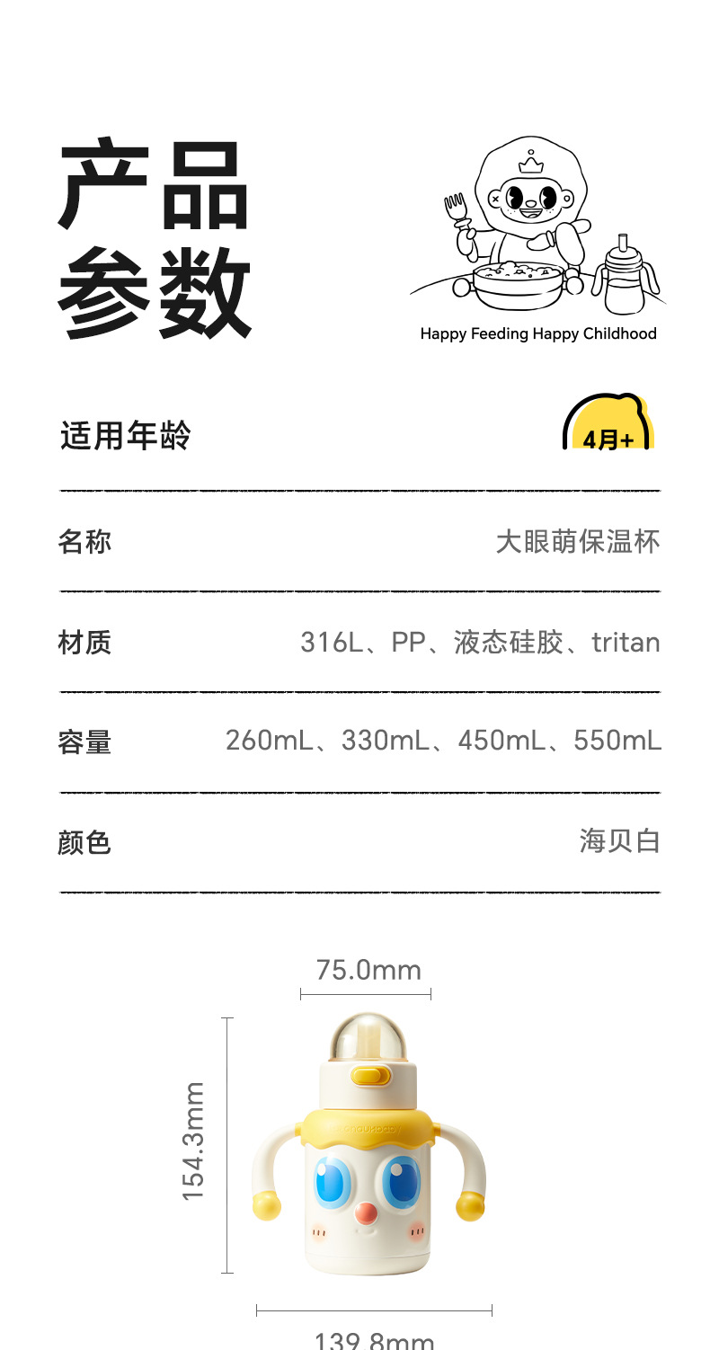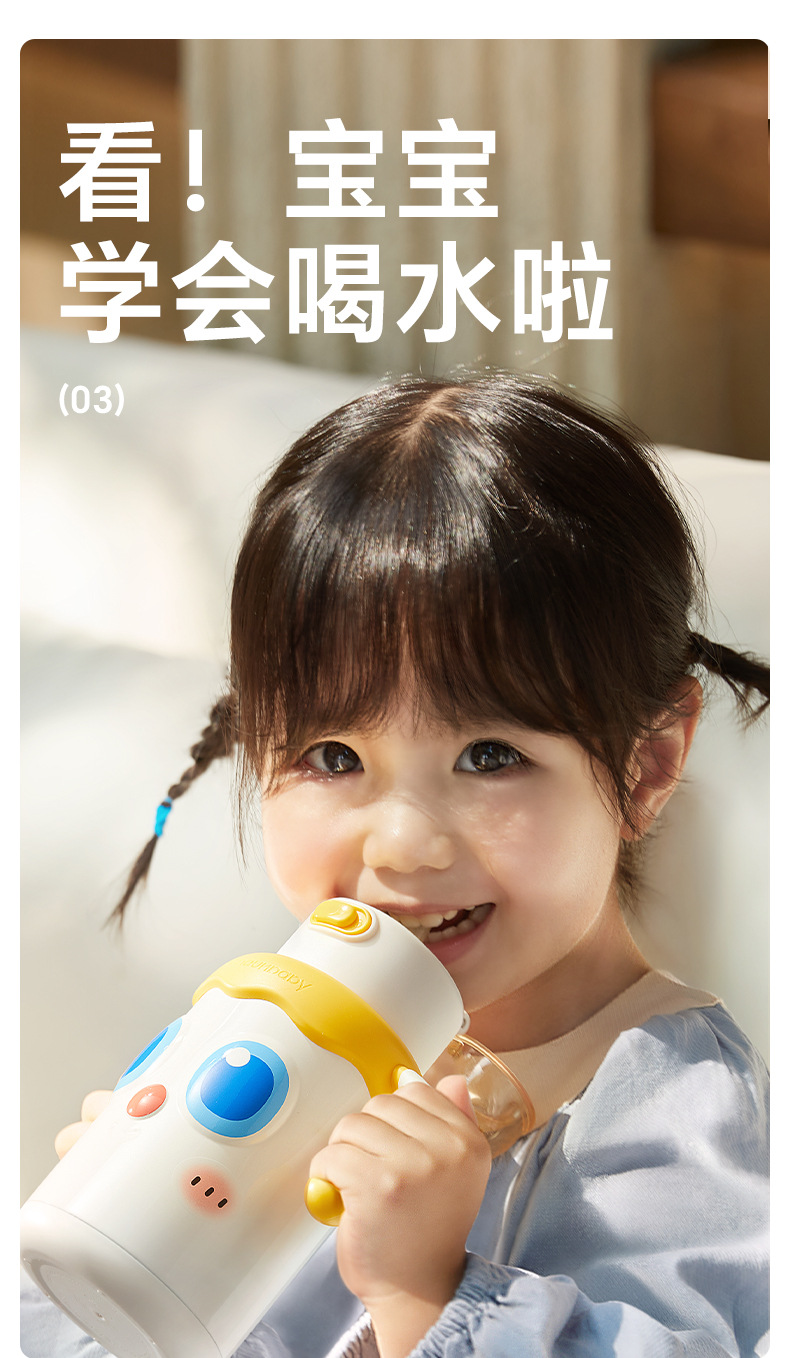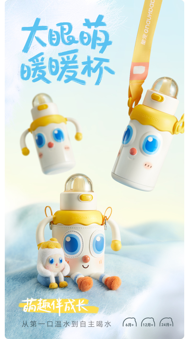 皇宠婴幼儿大眼萌保温杯儿童宝宝水杯4个月1岁以上鸭嘴吸管学饮杯;官网特供