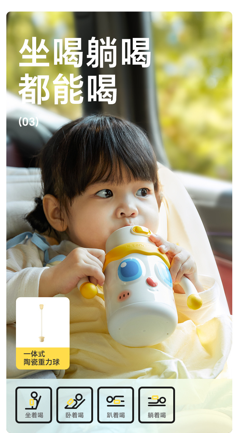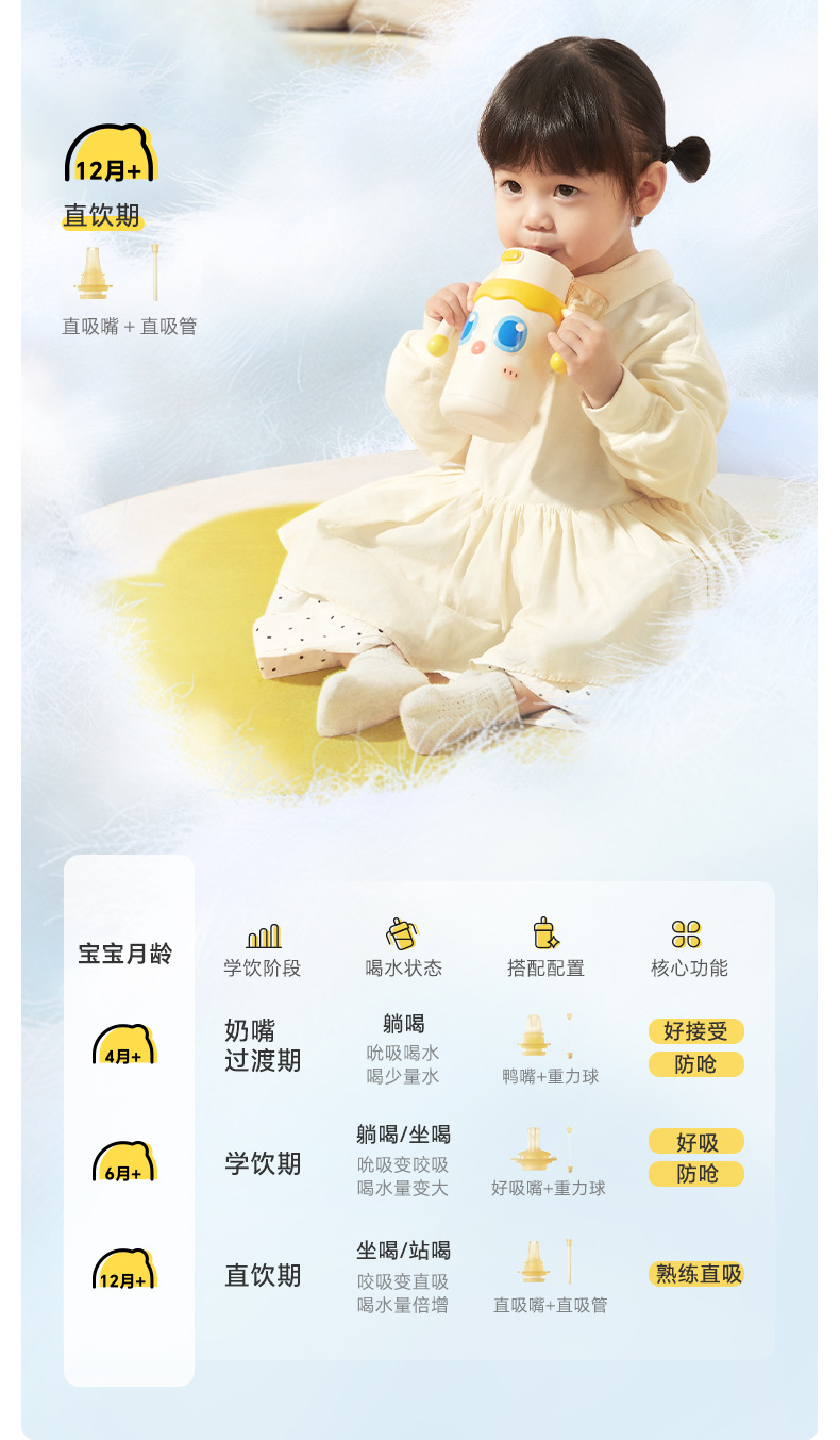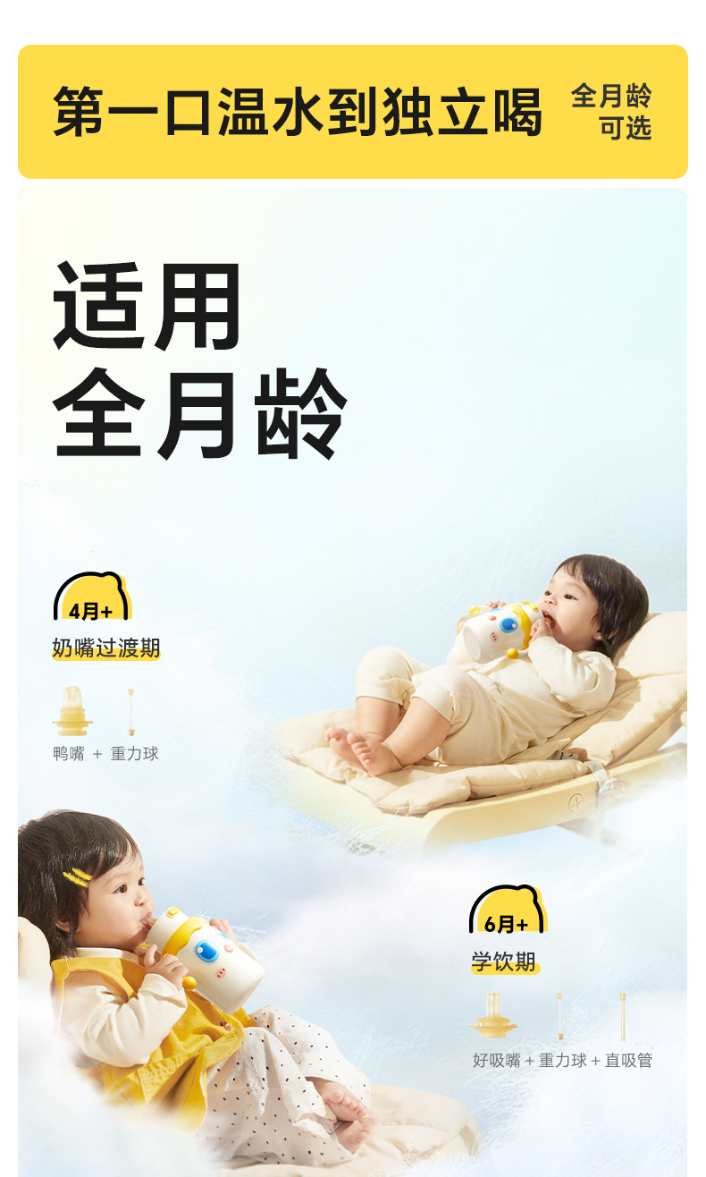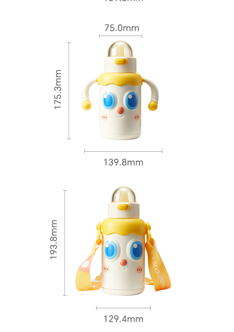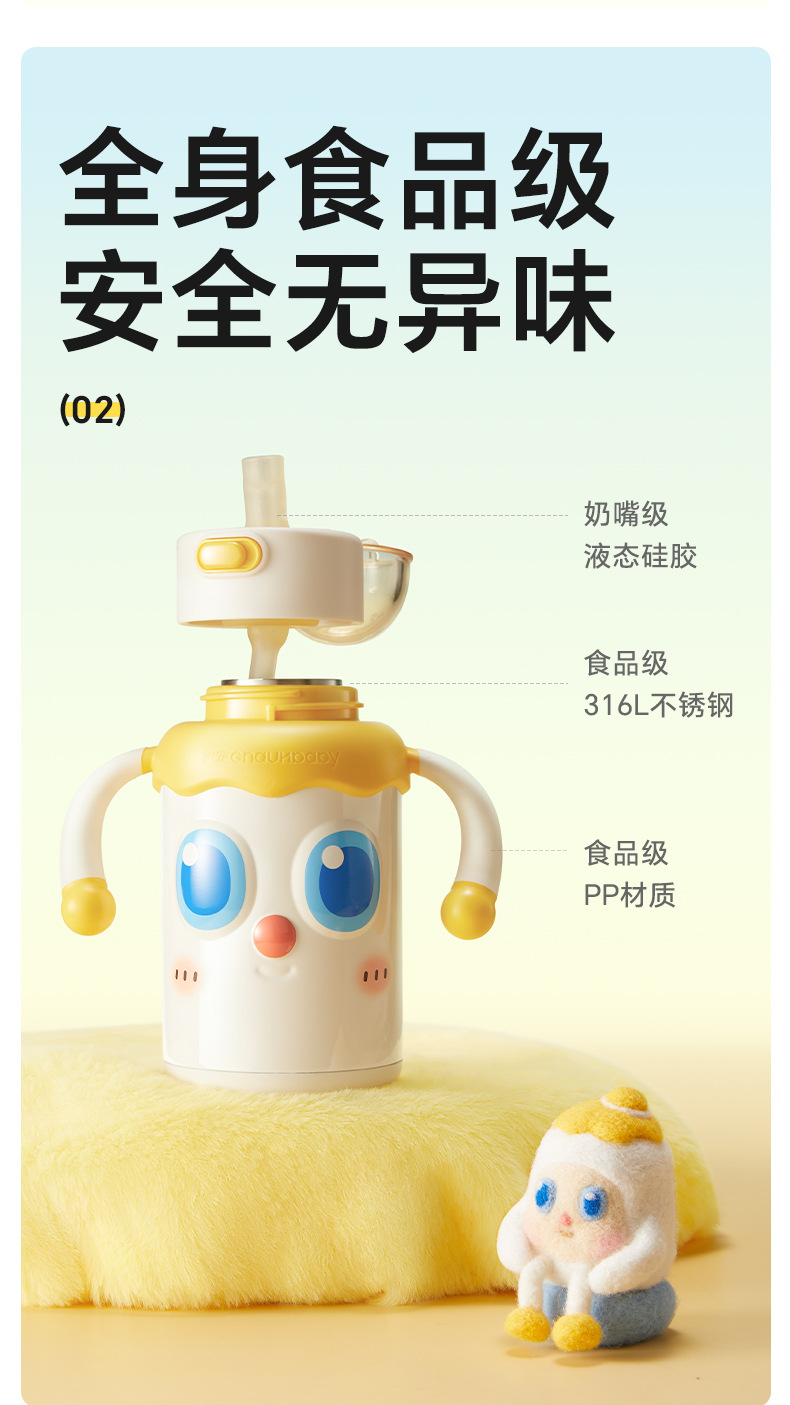 皇宠婴幼儿大眼萌保温杯儿童宝宝水杯4个月1岁以上鸭嘴吸管学饮杯;官网特供