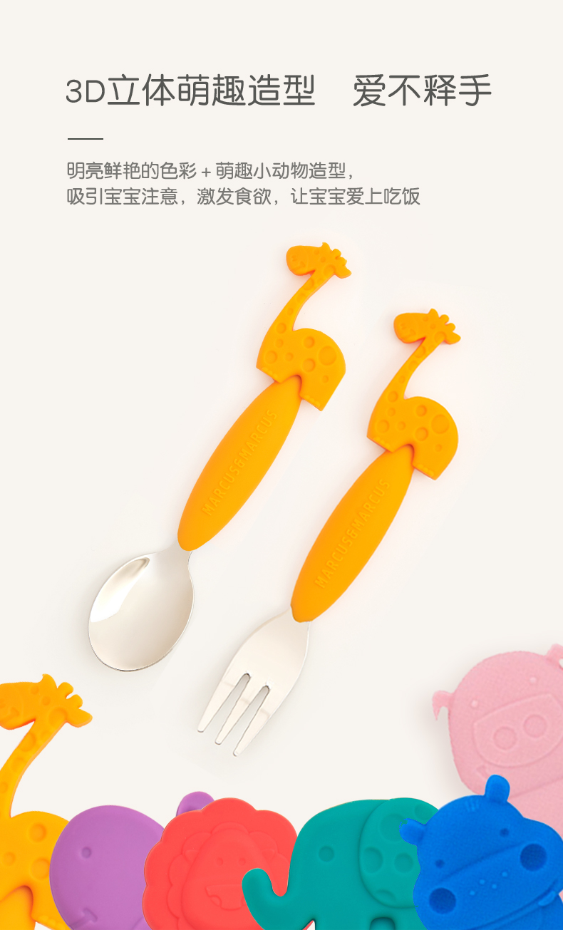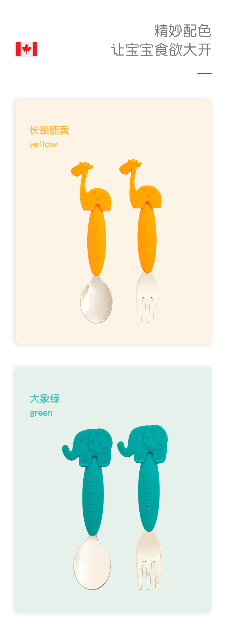 加拿大 Marcus儿童叉勺套装 儿童可爱动物叉勺套装
