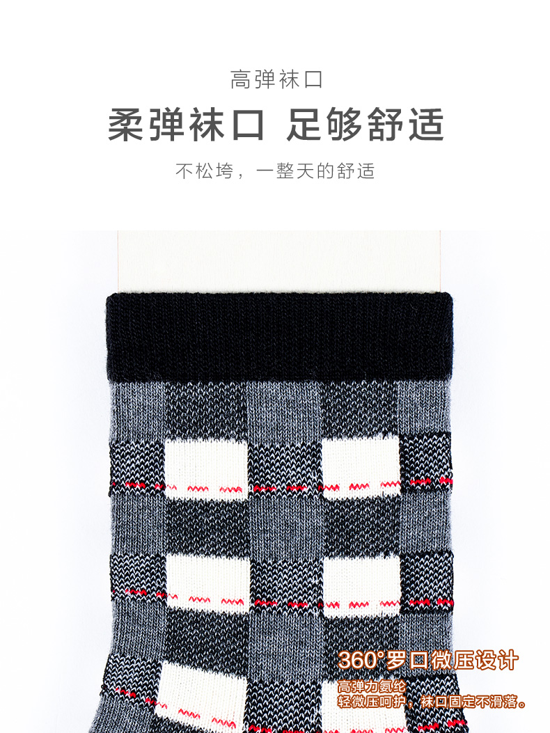 【任选6双99.5】春季男款秋冬中筒丝光羊毛冬季保暖撞色横杠提花中邦保暖男袜子