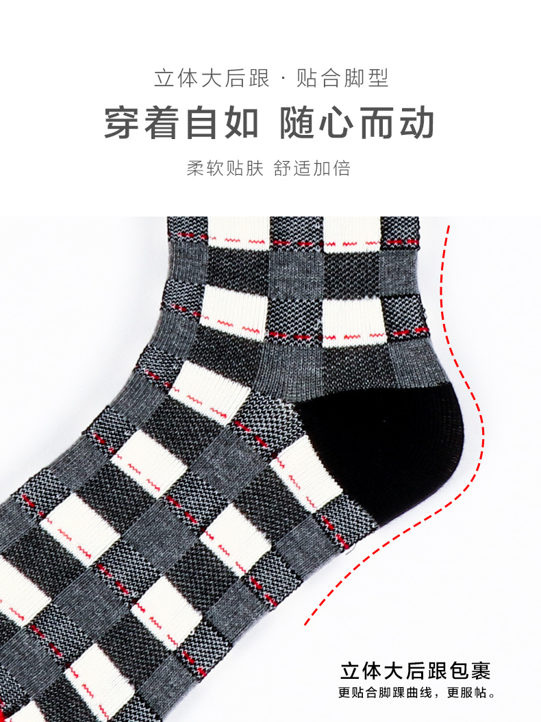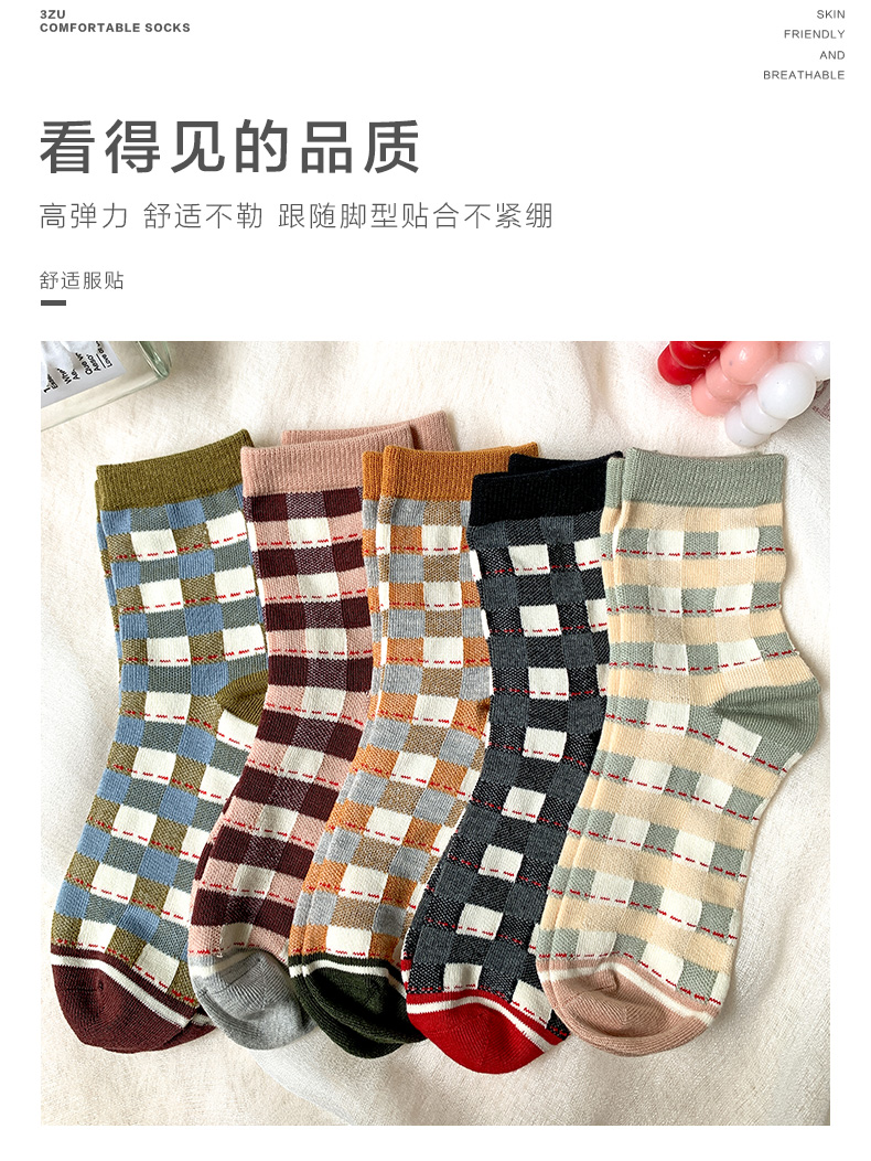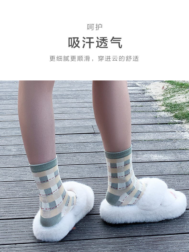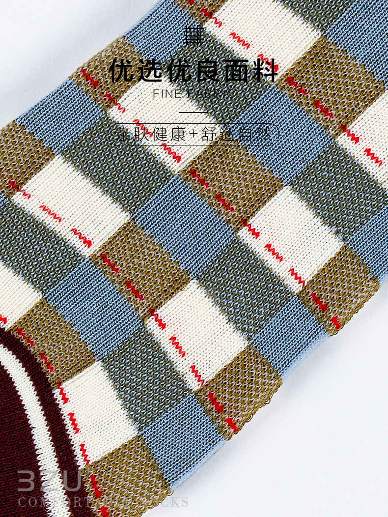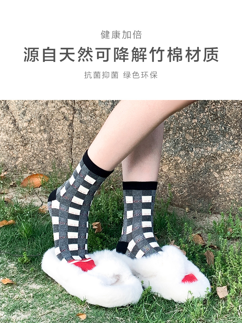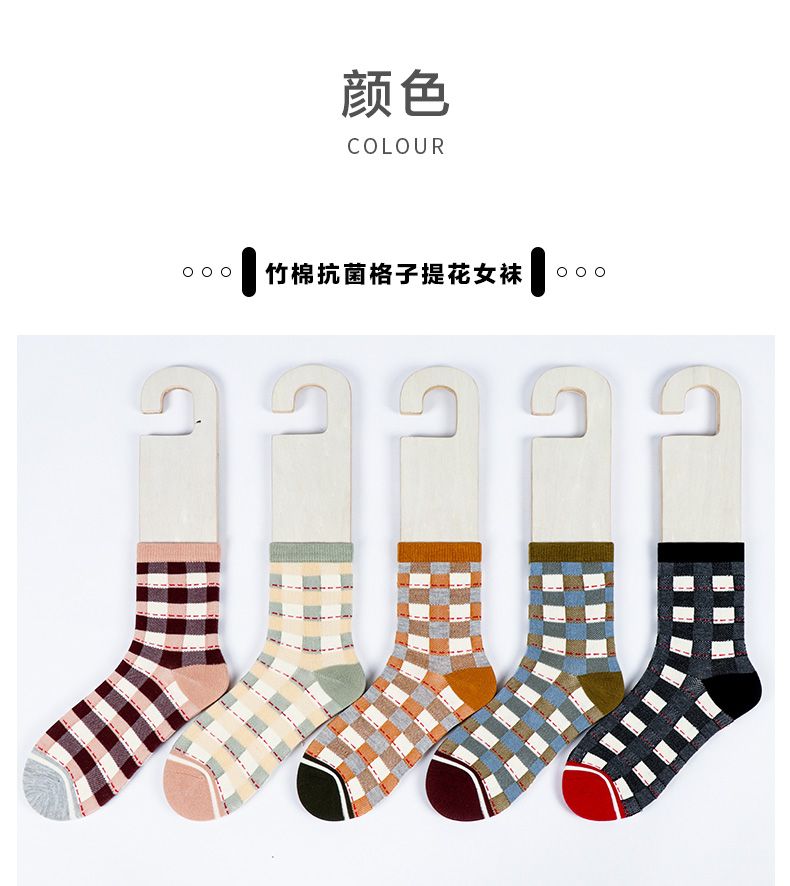 23秋冬新品女士竹棉抗菌健康环保加密编织多彩格纹文艺长邦女袜