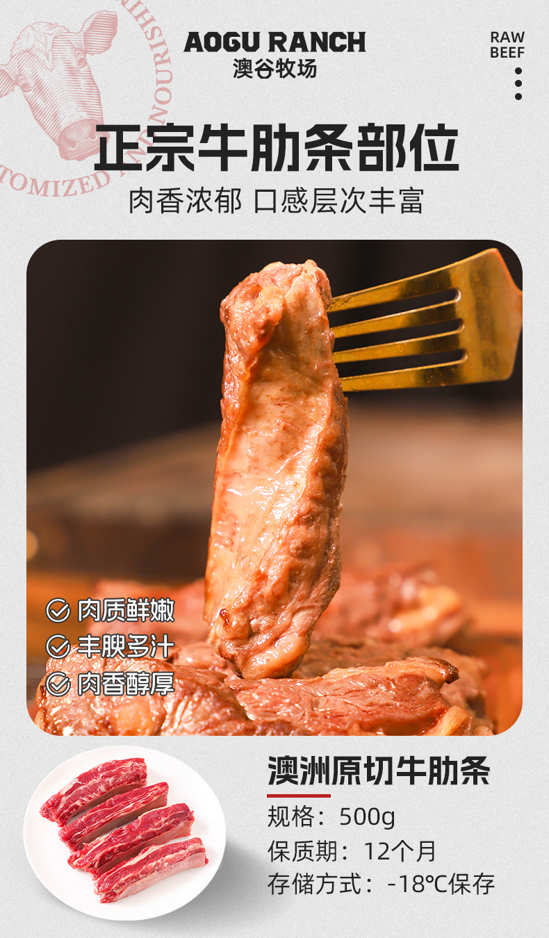 【4斤更划算】澳洲精修原切牛肋条去骨肋条