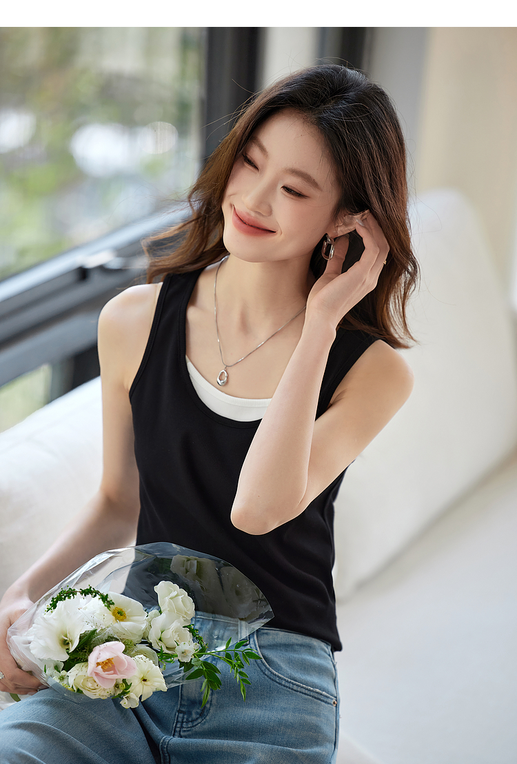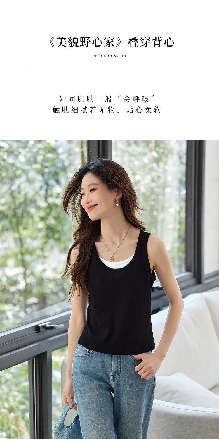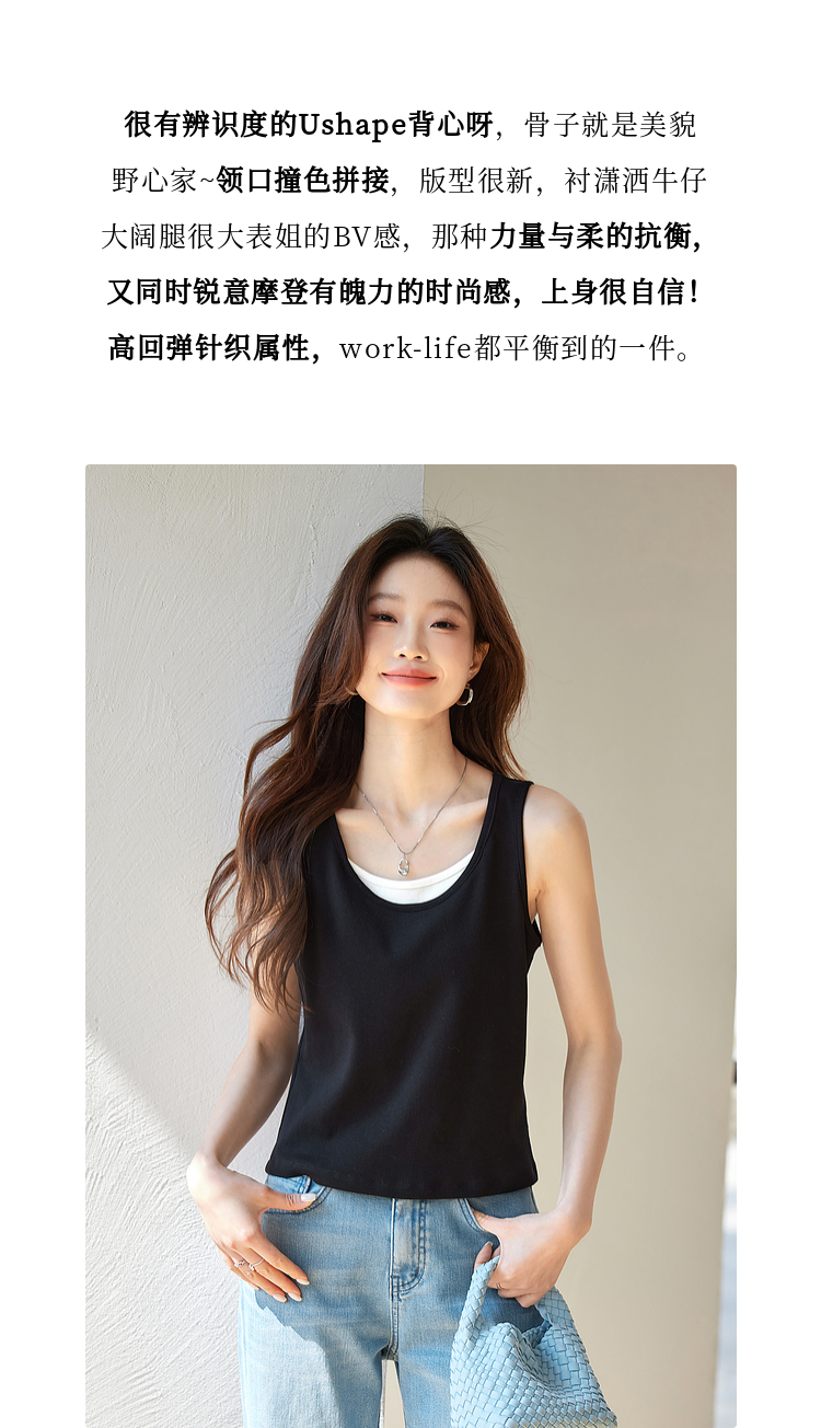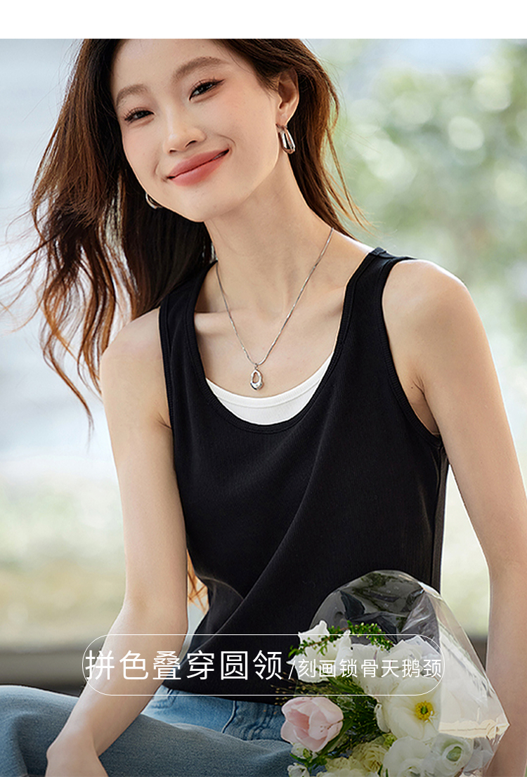 【1件9折】熙世界撞色假两件小背心女夏季外穿2025新款修身显瘦无袖吊带上衣