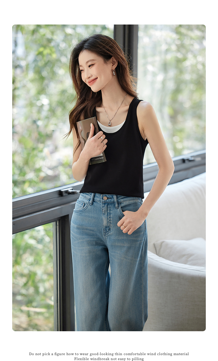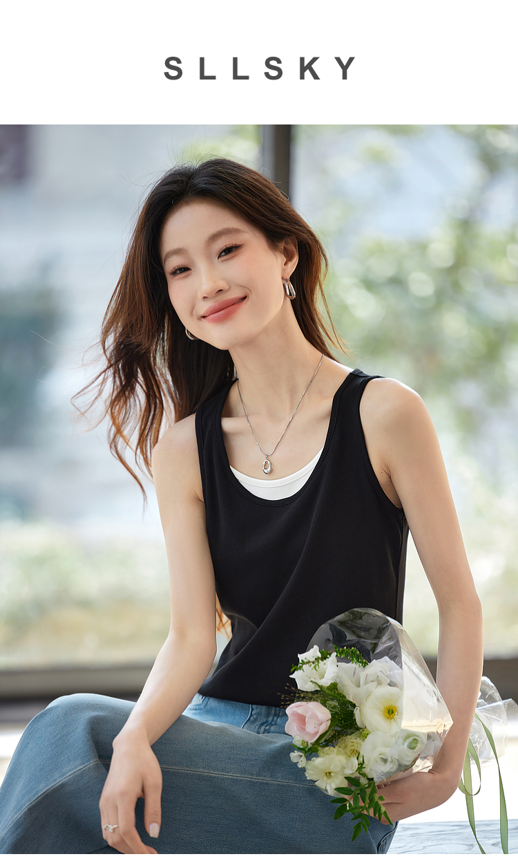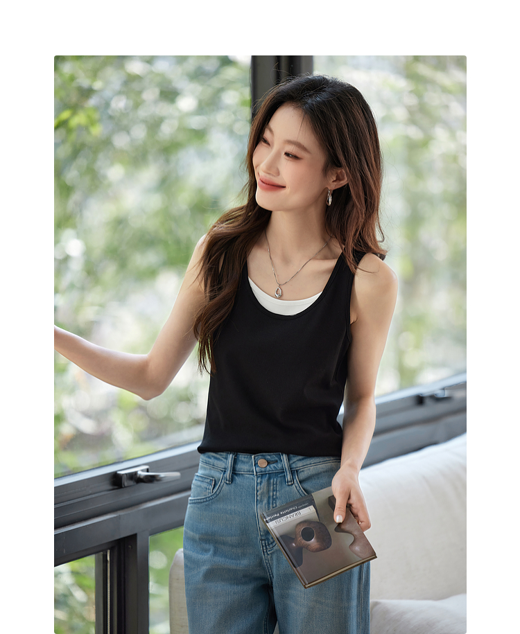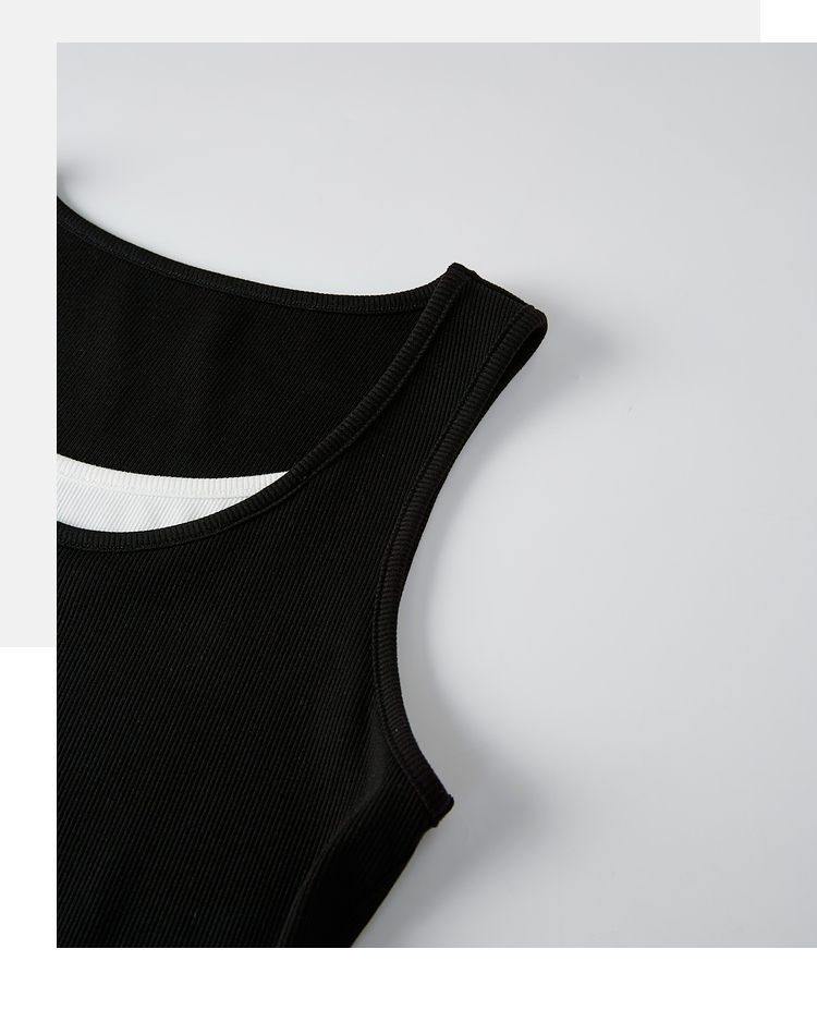 【1件9折】熙世界撞色假两件小背心女夏季外穿2025新款修身显瘦无袖吊带上衣