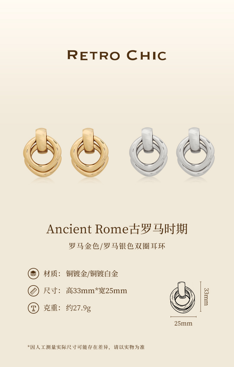 【钟楚曦&江一燕&管乐&刘孜同款】Retro Chic | 罗马金/银色双圈耳环&罗马链条项链套装