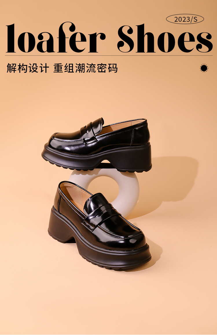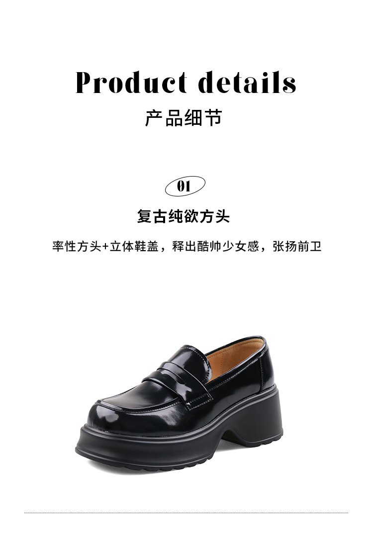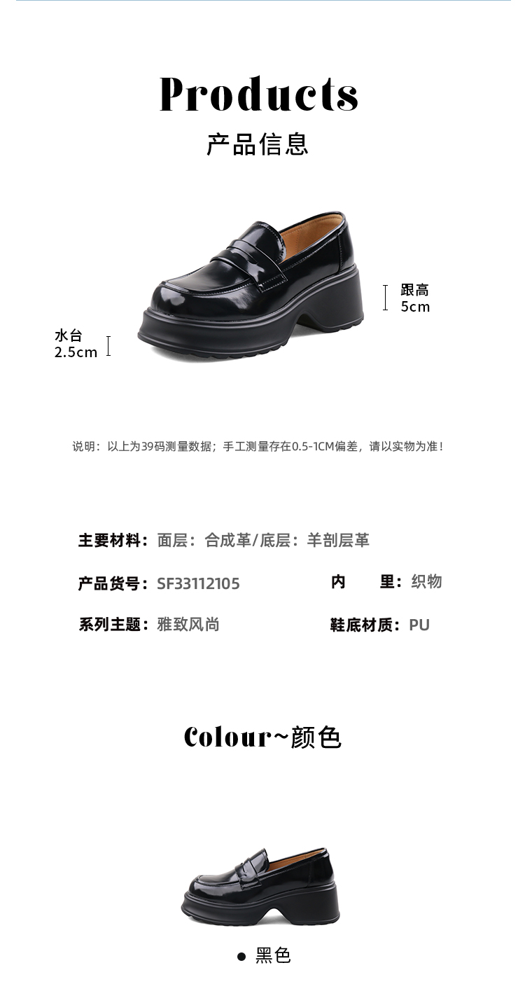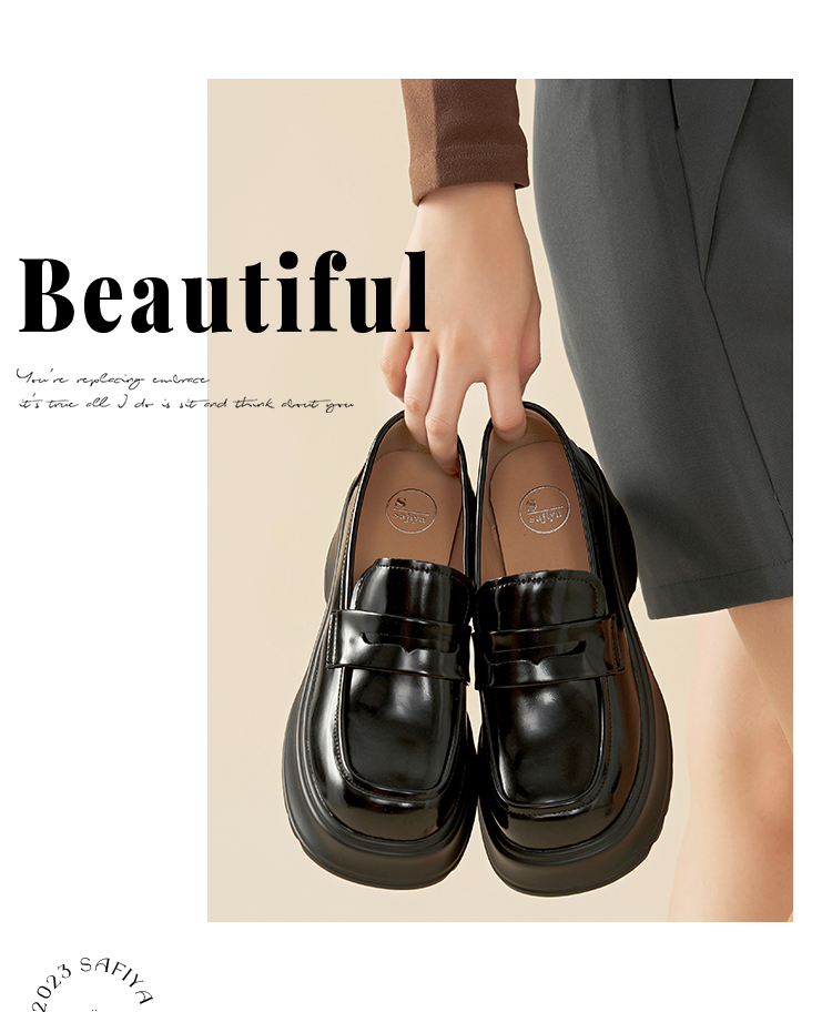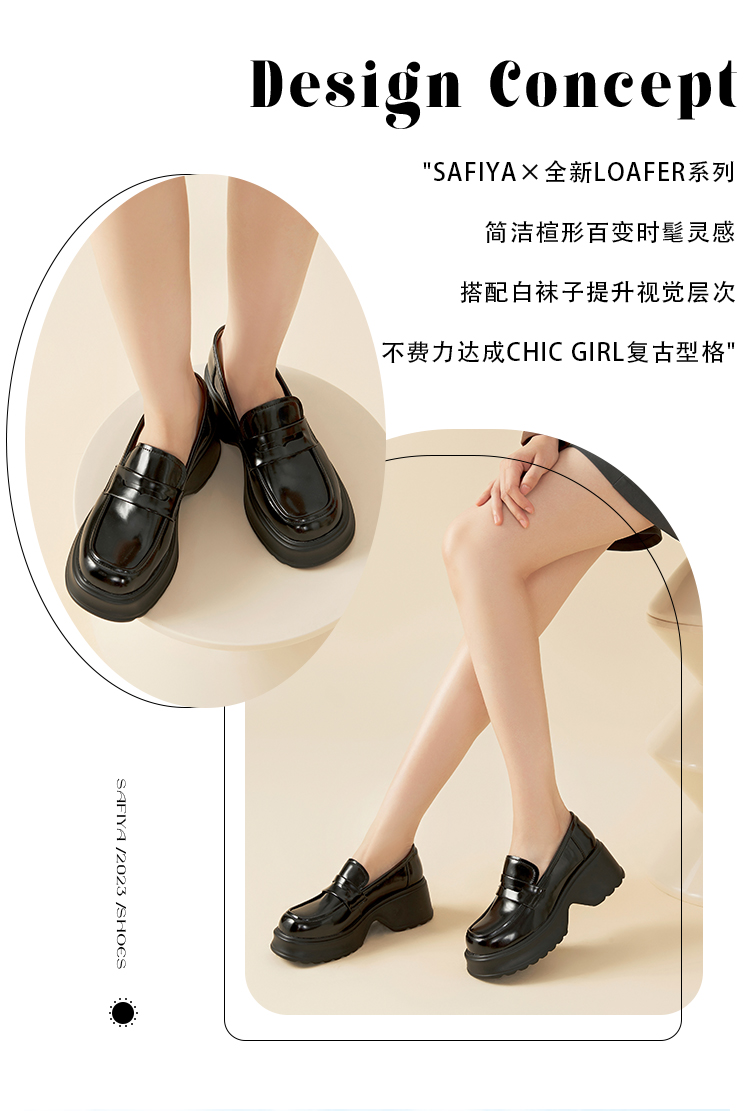Safiya/索菲娅2023秋季新品 潮流厚底粗跟方头复古英伦JK小皮鞋乐福鞋 SF33112054