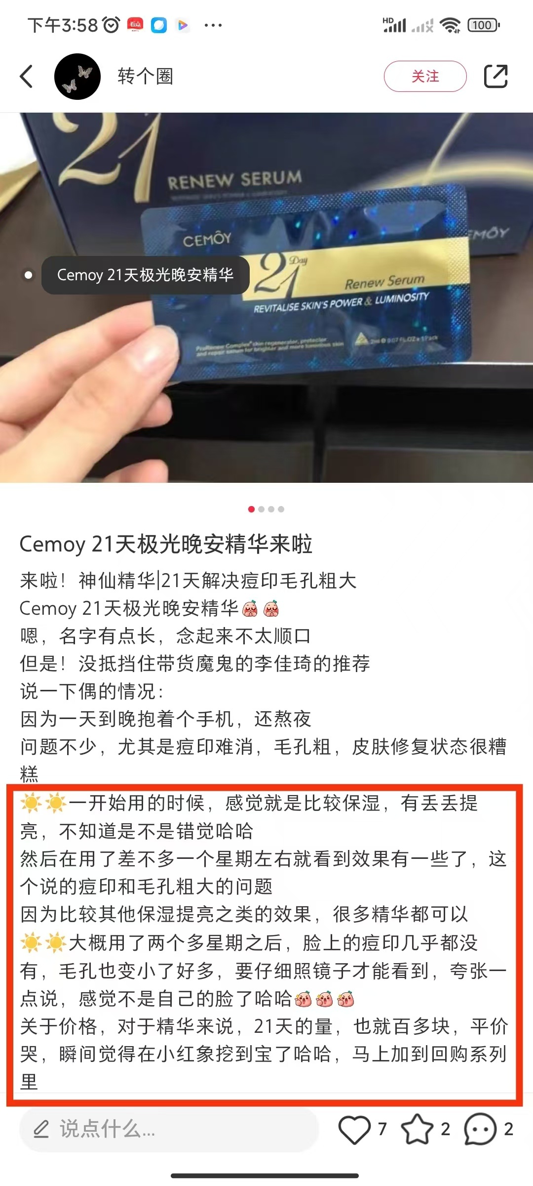 被李佳琦OMG捧上天的Cemoy21天晚安精华
