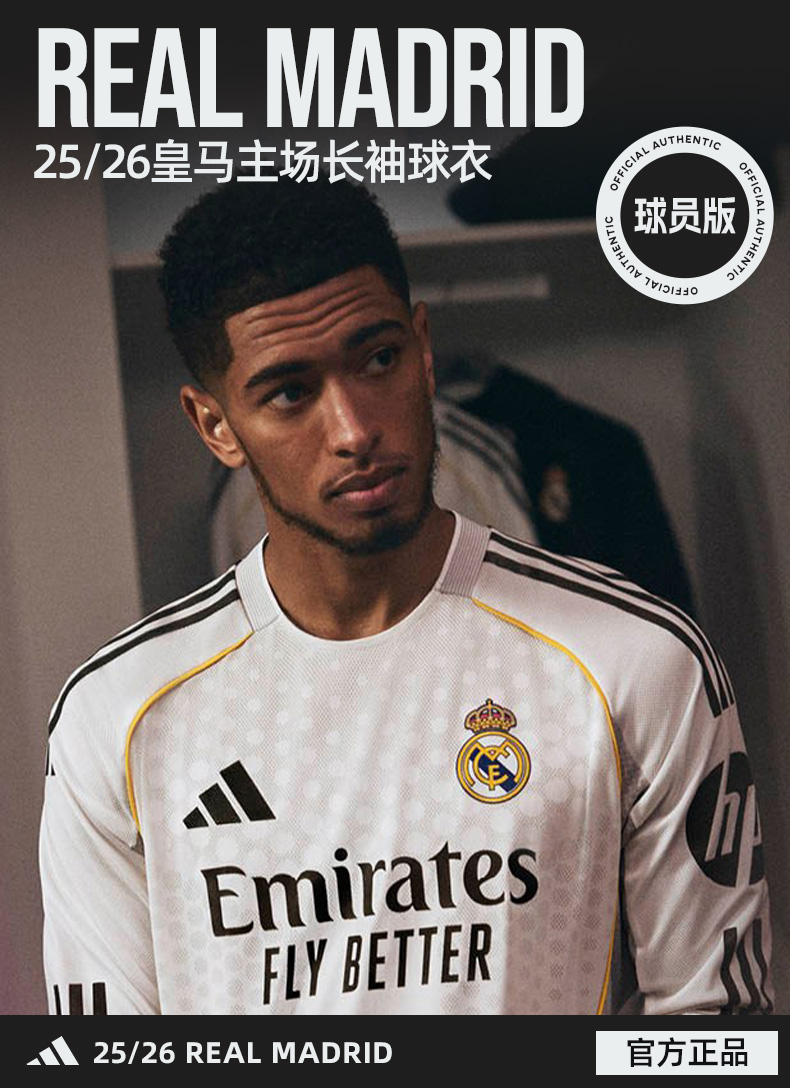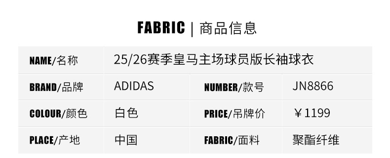 SFS阿迪达斯Adidas 25/26皇马主场长袖球员版球衣JN8866