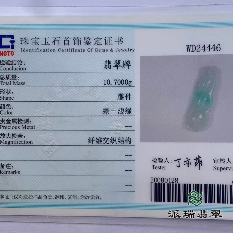 派瑞翡翠 翡翠挂件 糯种 绿色