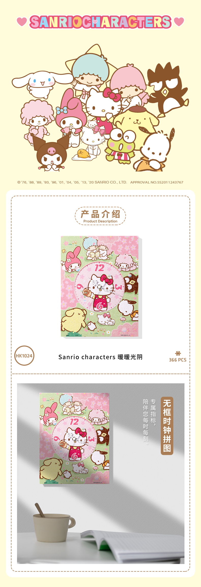 366片 无框时钟拼图 塑料拼图 HK1024 Sanrio Characters 暖暖光阴