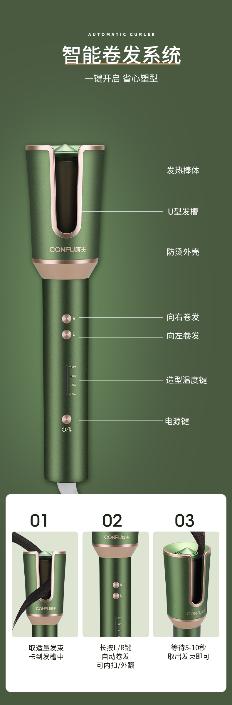 康夫全自动卷发棒大波浪28mm旋转烫发棒卷发神器懒人不伤发电卷棒