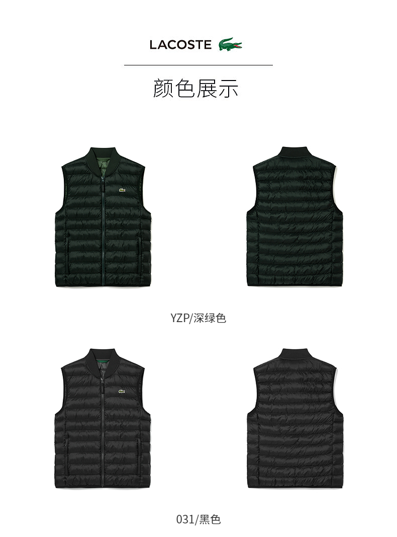 【海南专供价】Lacoste法国鳄鱼男士新款罗纹立领拉链背心马甲外套BH0537-98