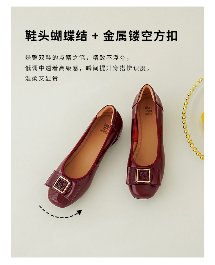 【牛皮/羊皮革】西村名物2026年春季新款舒适低跟羊皮内里内垫浅口单鞋T26AE17941