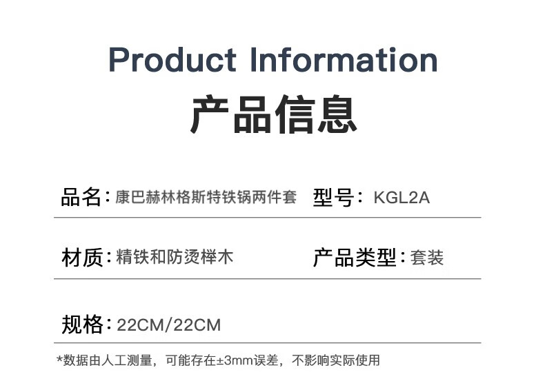 【分仓直发包邮】康巴赫-林格斯特铁锅二件套22/22CM(KGL2A)