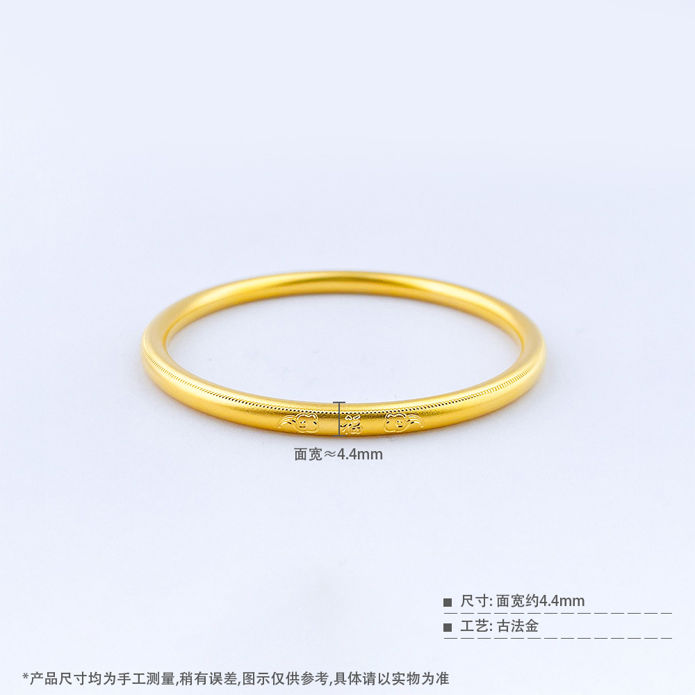 【限时克减150元】足金999 古法空心固口CNC福字祥云手镯(面宽约4.2-4.6mm)(YGFSZ00484)(预售产品下单后不退款不退货不换货不补差价)