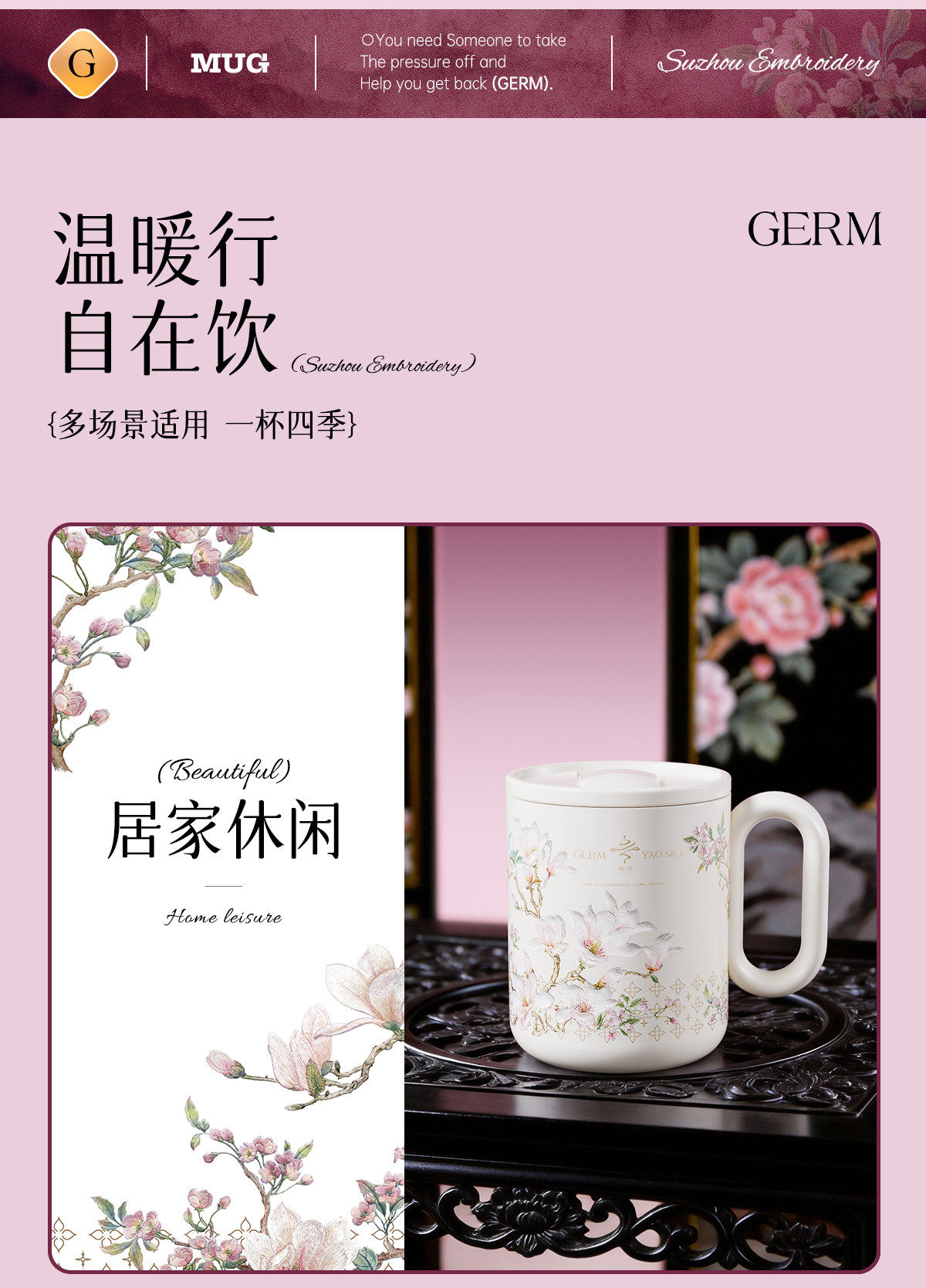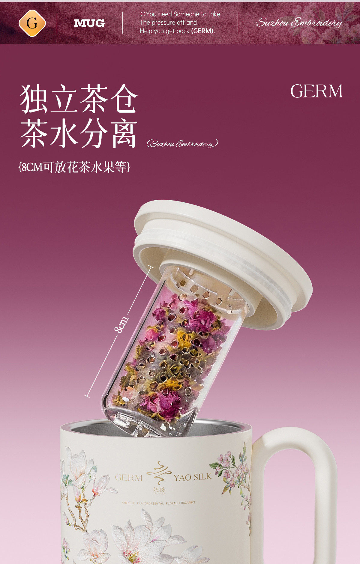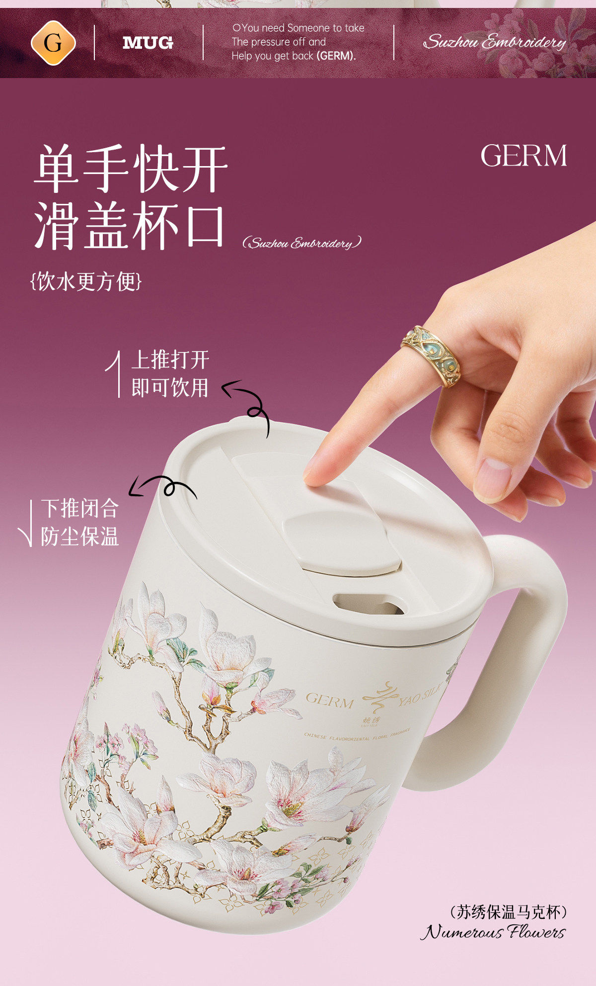 GERM格米非遗苏绣马克保温杯高颜值家用早餐喝水杯子女士生日礼物