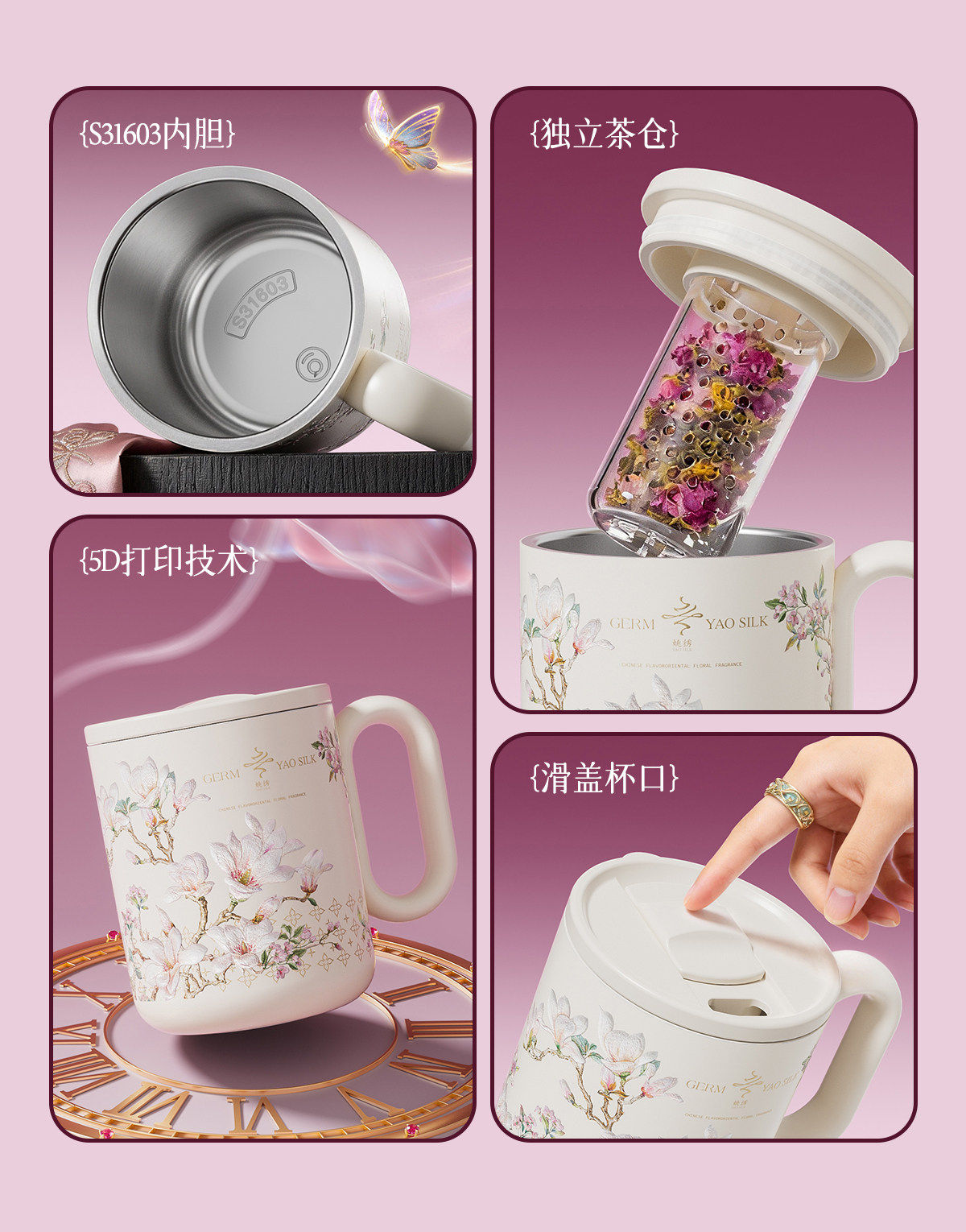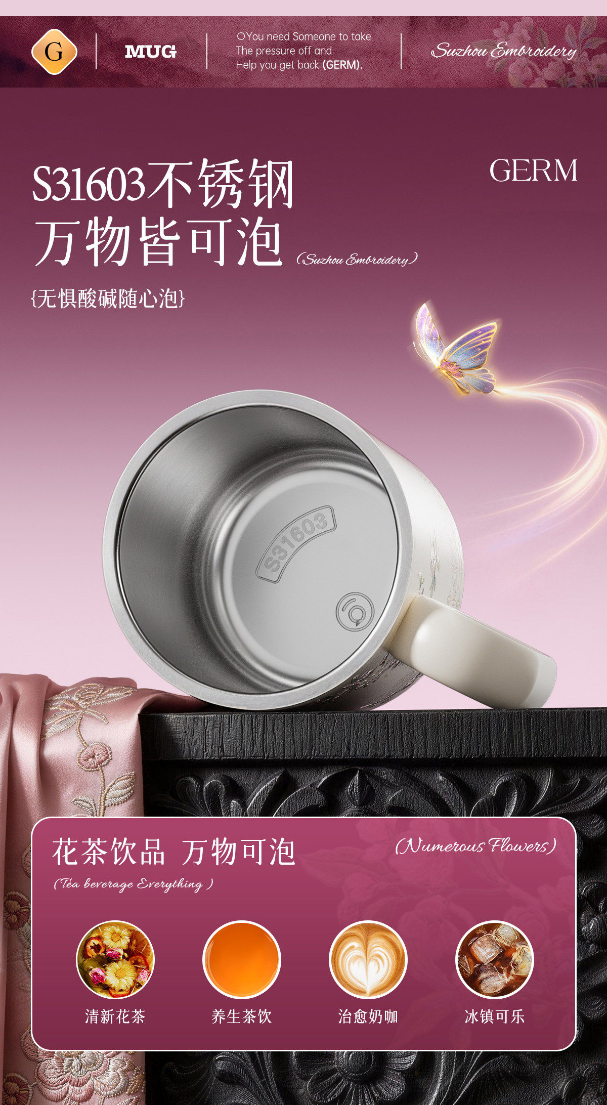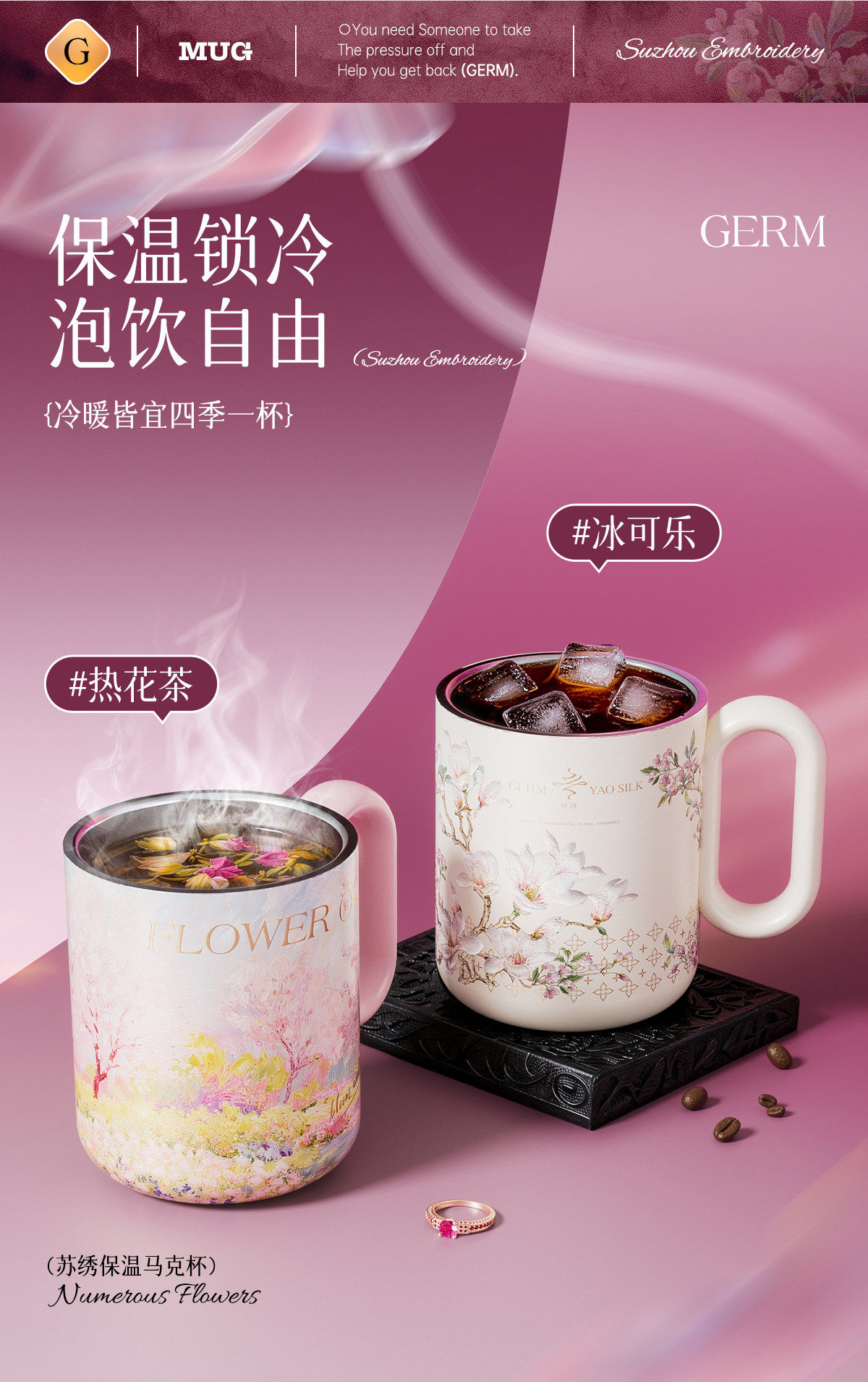 GERM格米非遗苏绣马克保温杯高颜值家用早餐喝水杯子女士生日礼物