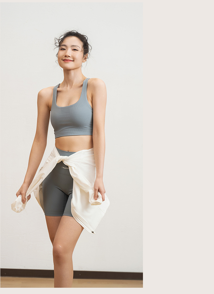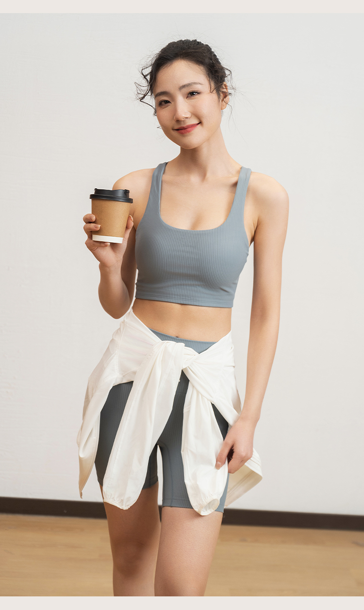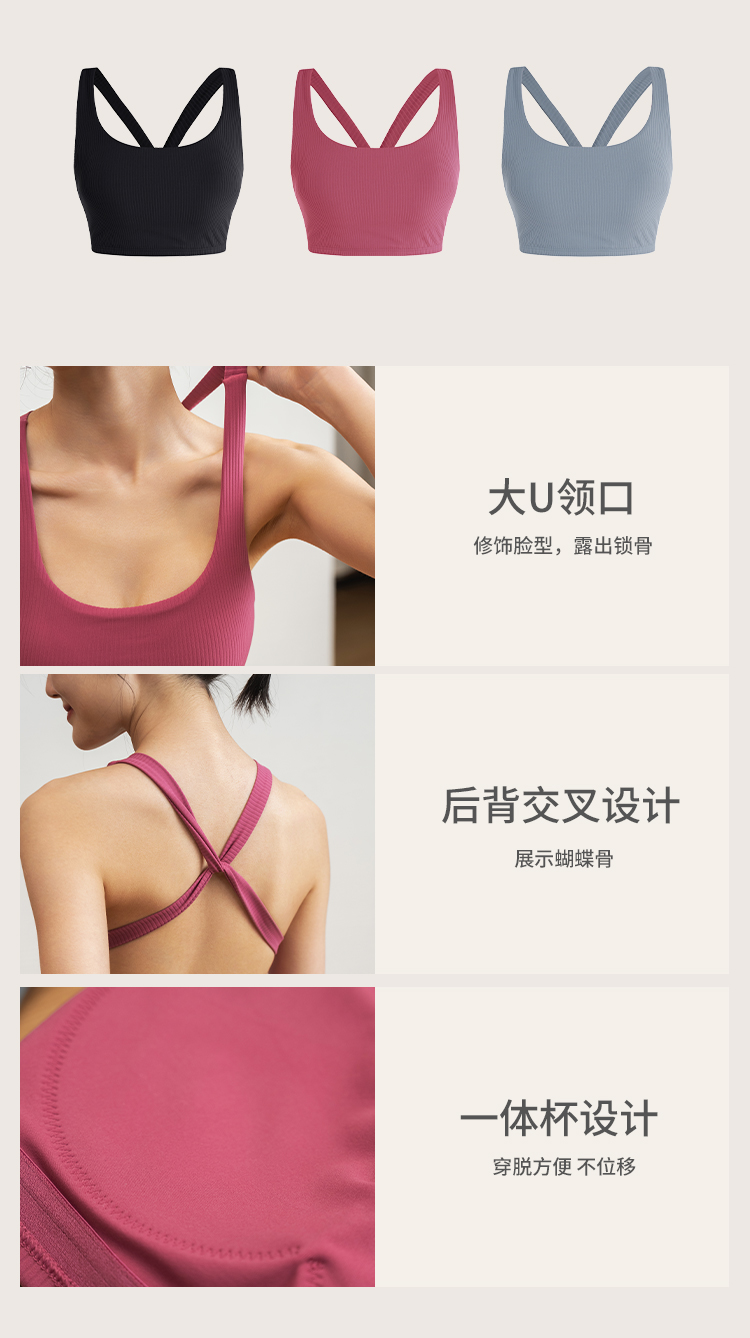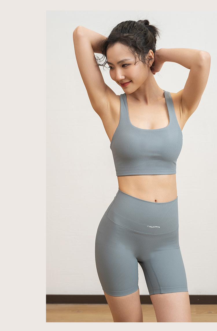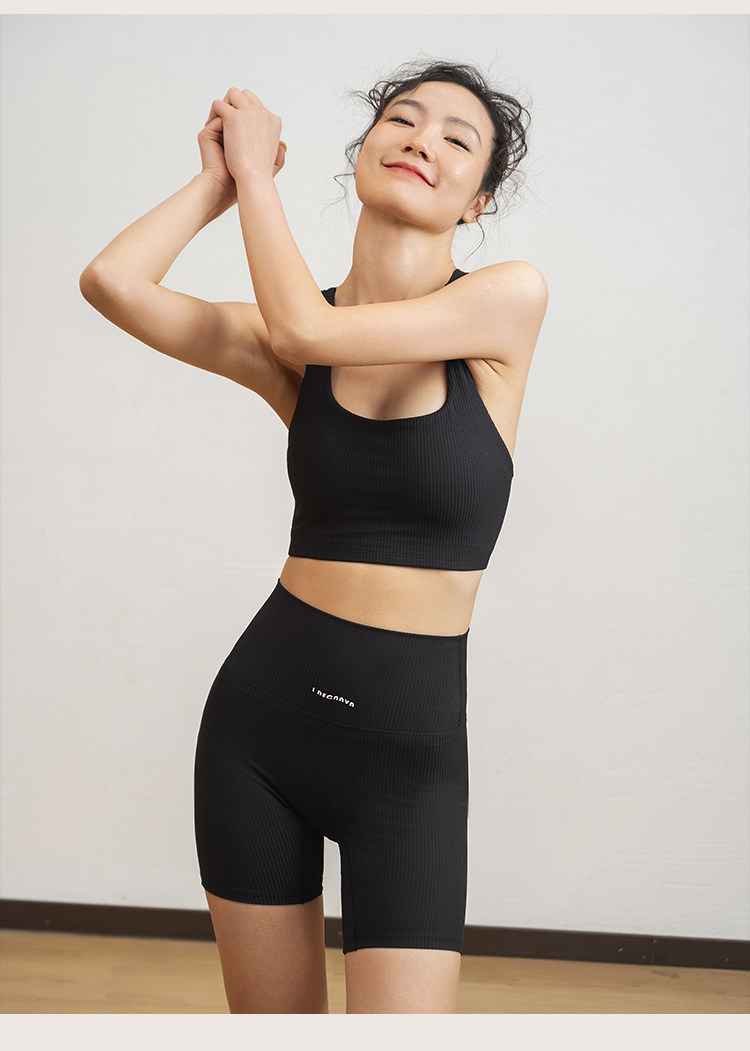 L RECNAVA 莱卡·健身运动一体式美背后背交叉U领胸衣 无尴尬线三分骑行短裤套装【可分开买】
