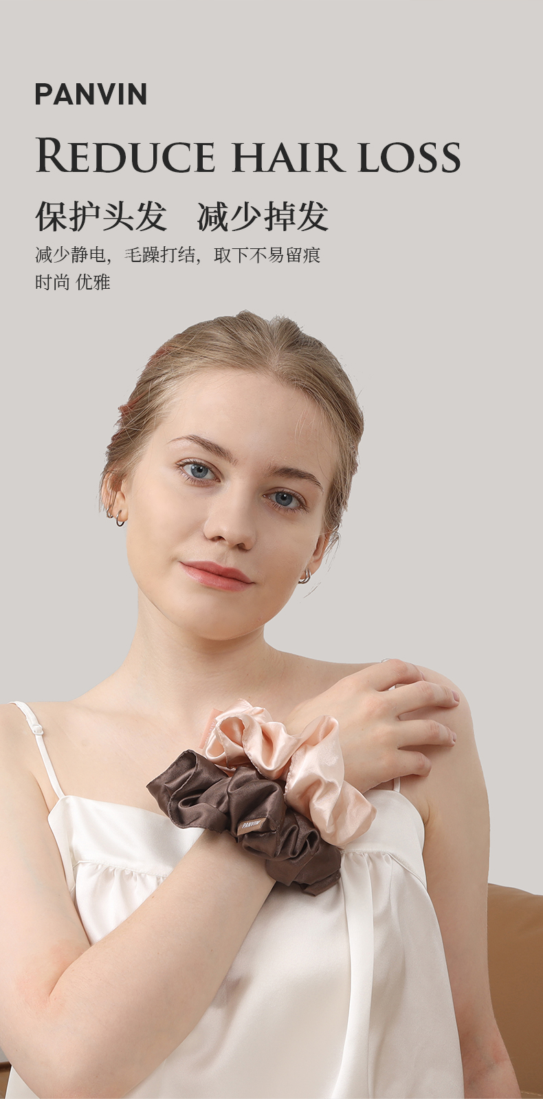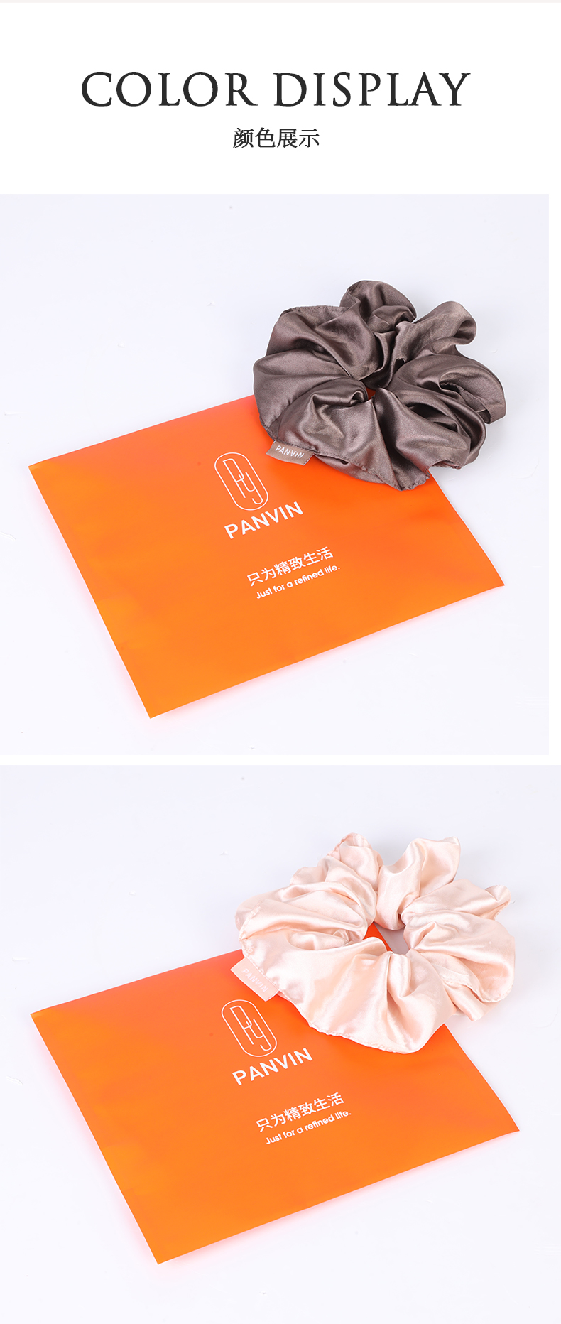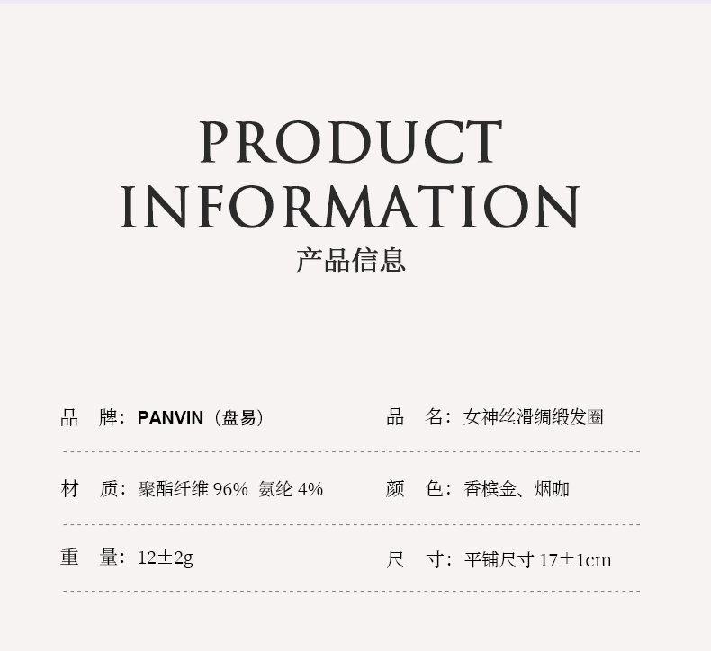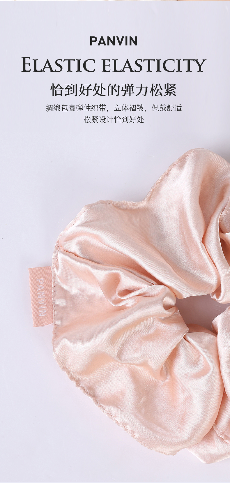 PANVIN女神丝滑绸缎发圈,缎面质感,不挑发量,满足各类发型,松紧合适,稳固不易掉落