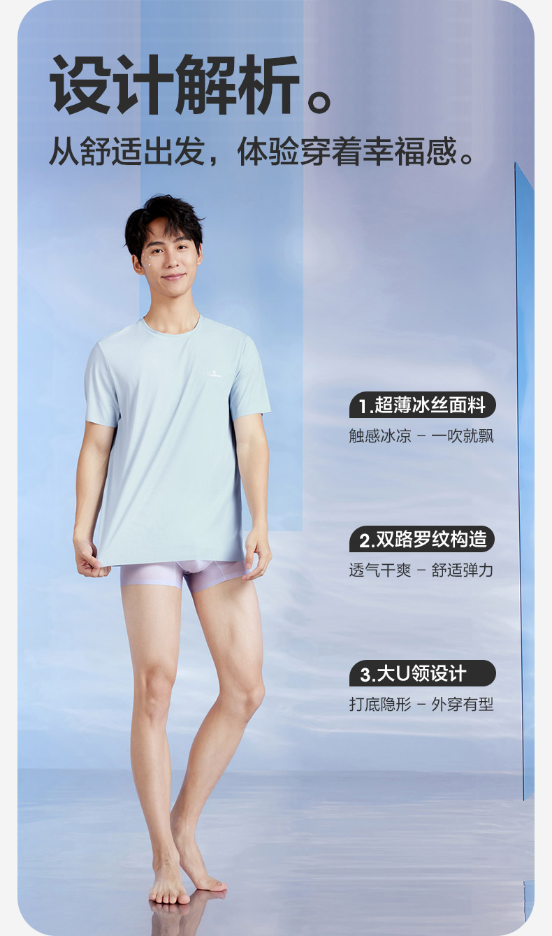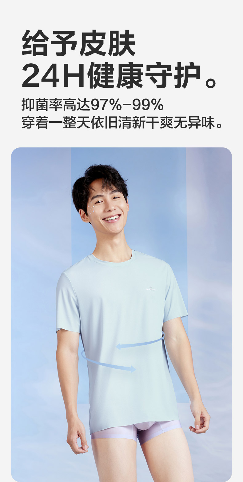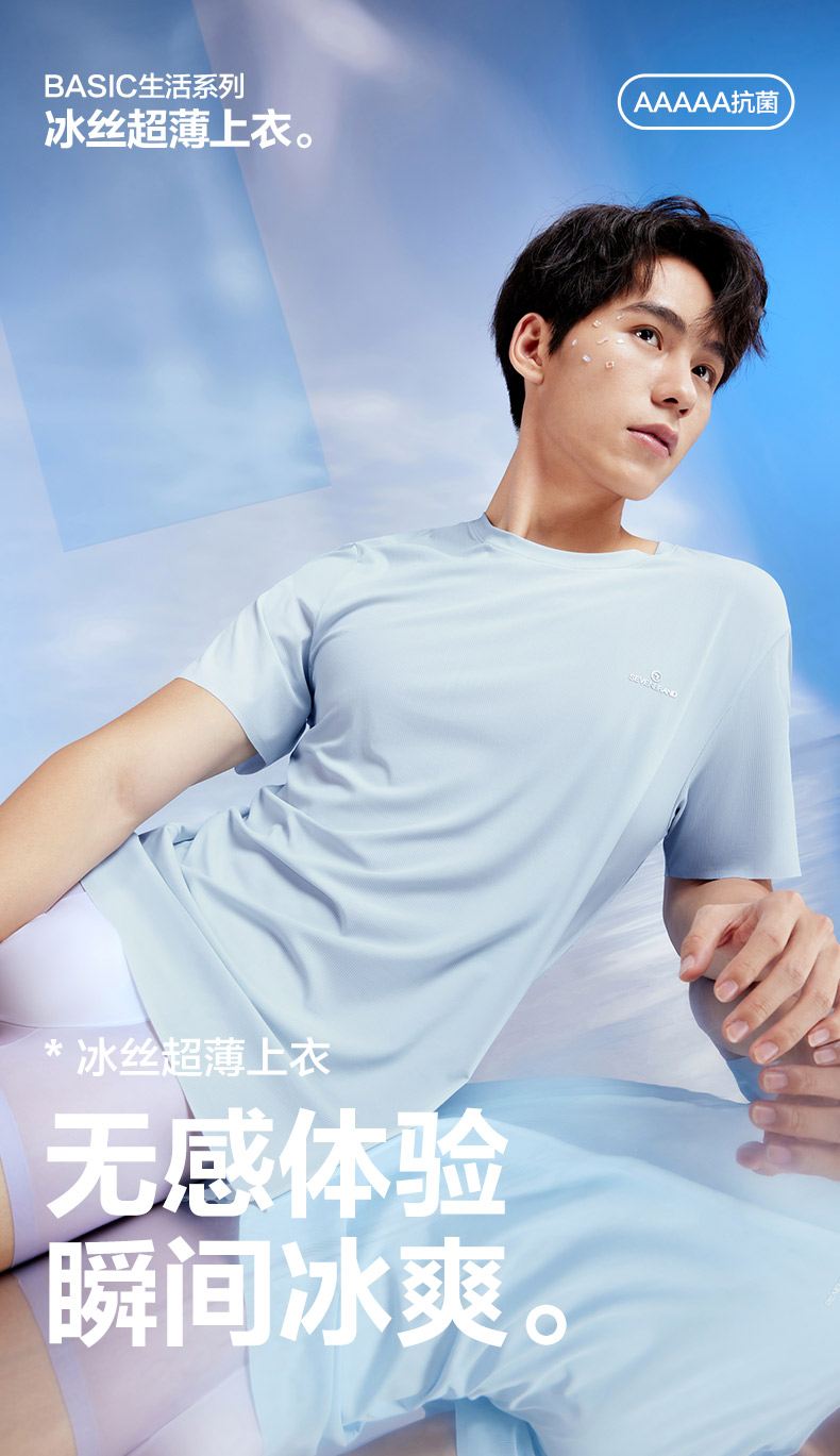 柒牌男士短袖T恤2024夏季凉感抗菌透气亲肤高弹罗纹打底薄款内衣 126F70060
