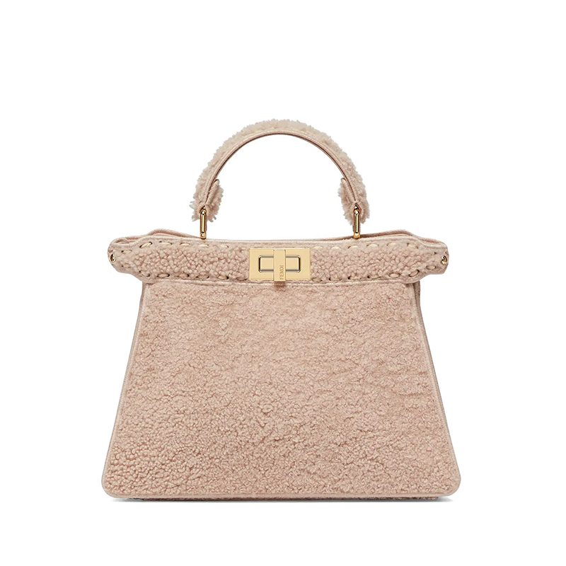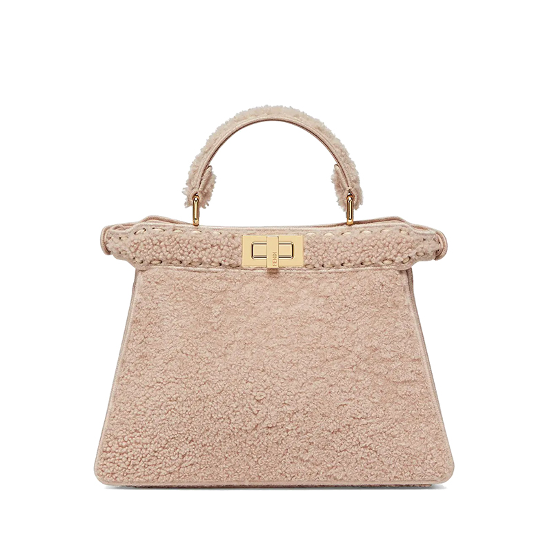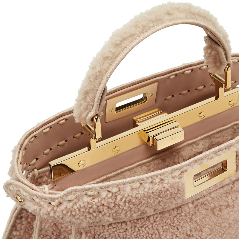 【包税】FENDI/芬迪 2021秋冬新款PEEKABOO ISEEU系列 女士小号浅粉色美利奴羊皮标志性旋转门扣金色饰面金属配饰配可拆卸肩带单肩斜跨手提包8BN327AHJ6F0H43