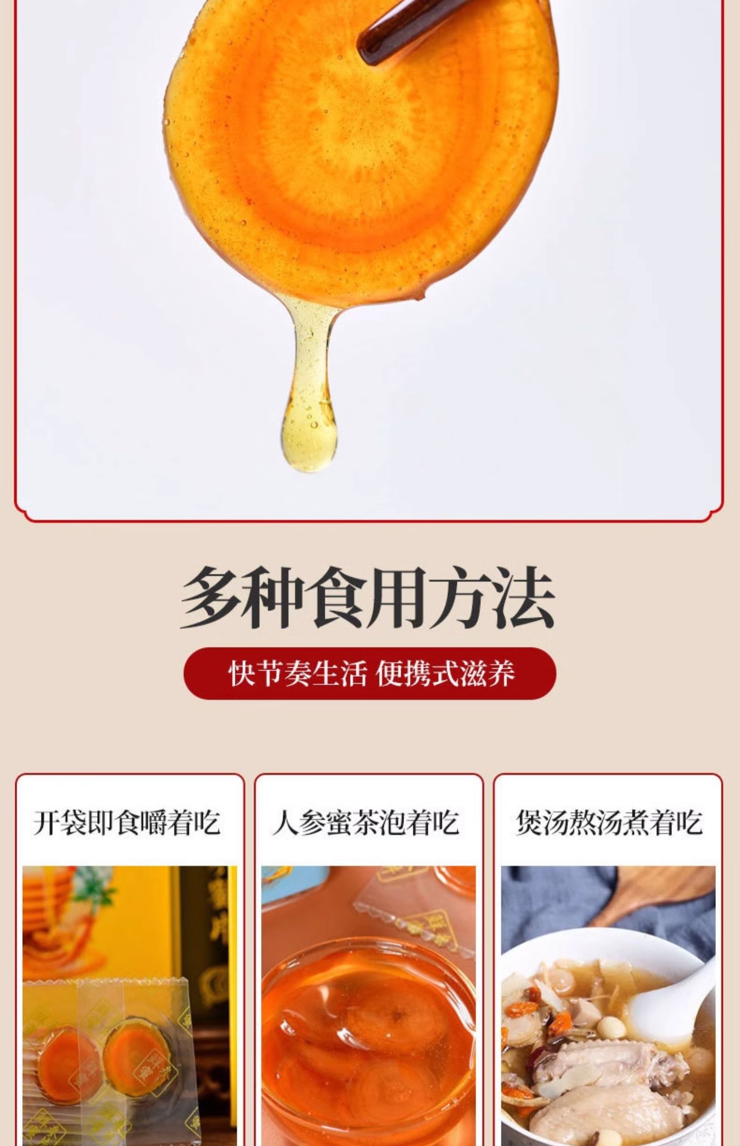 柳正官人参蜜片 新鲜长白山人参蜜片即食 50g/罐