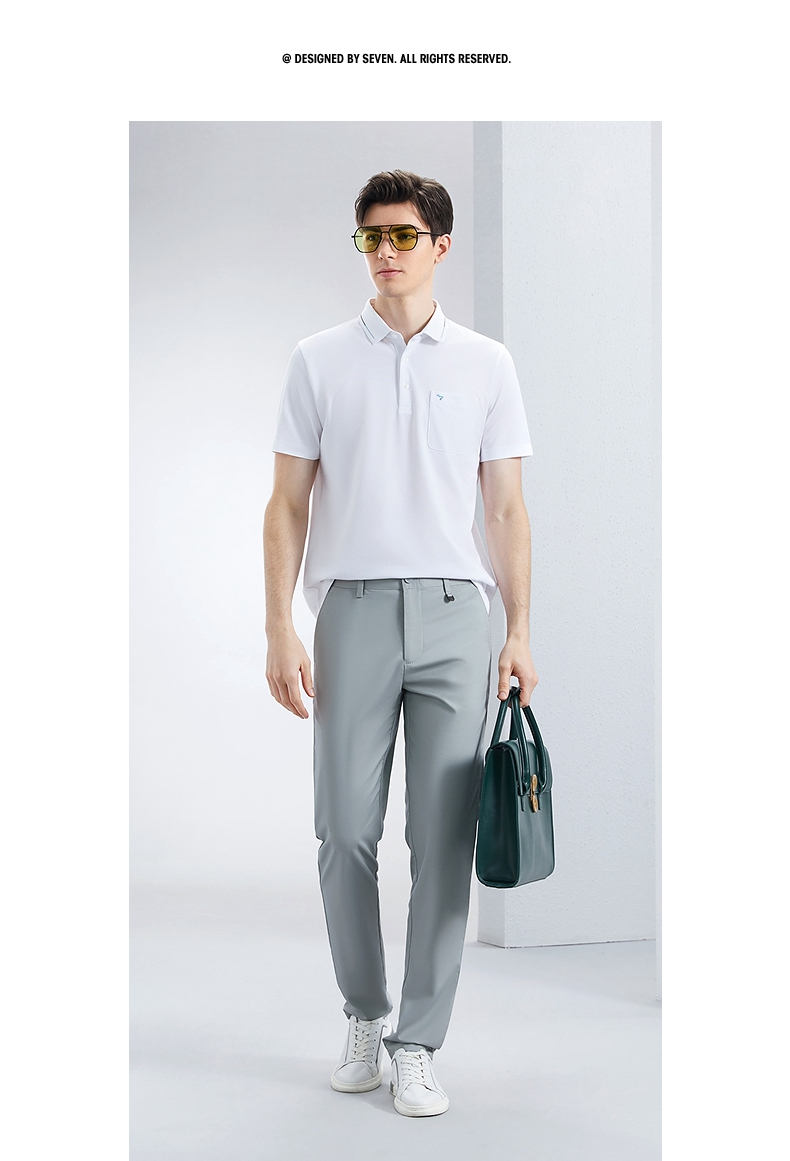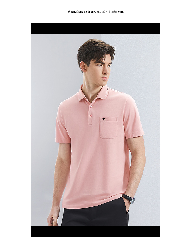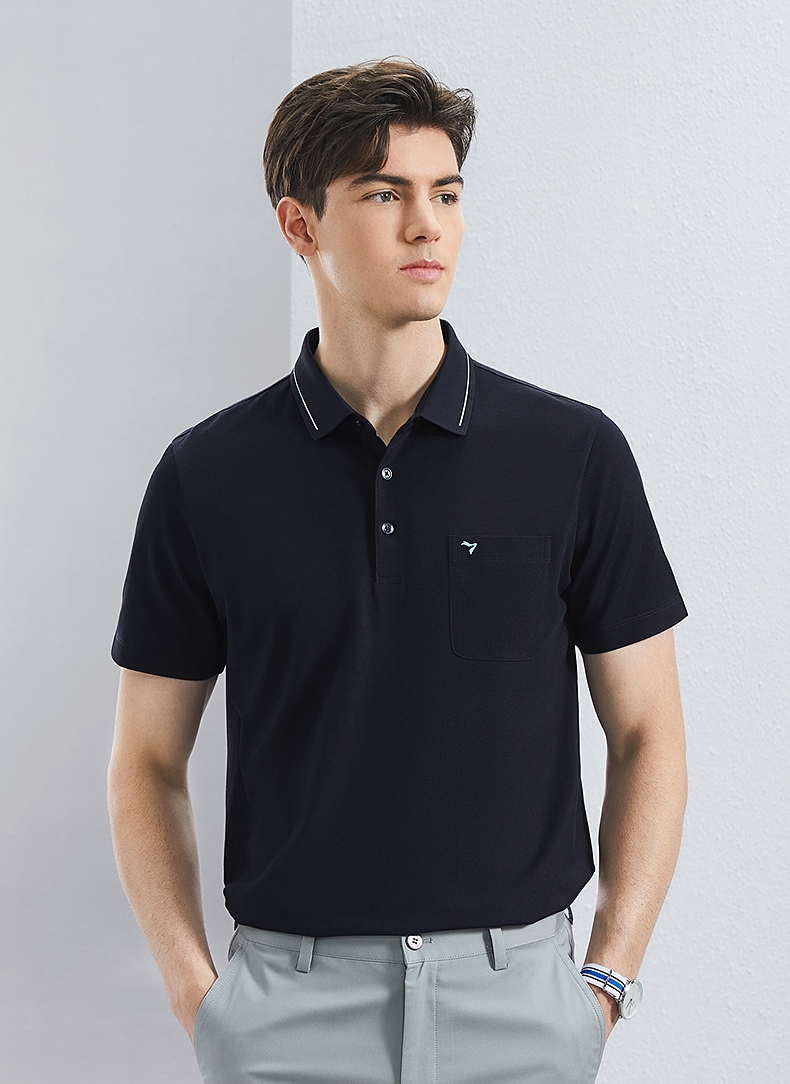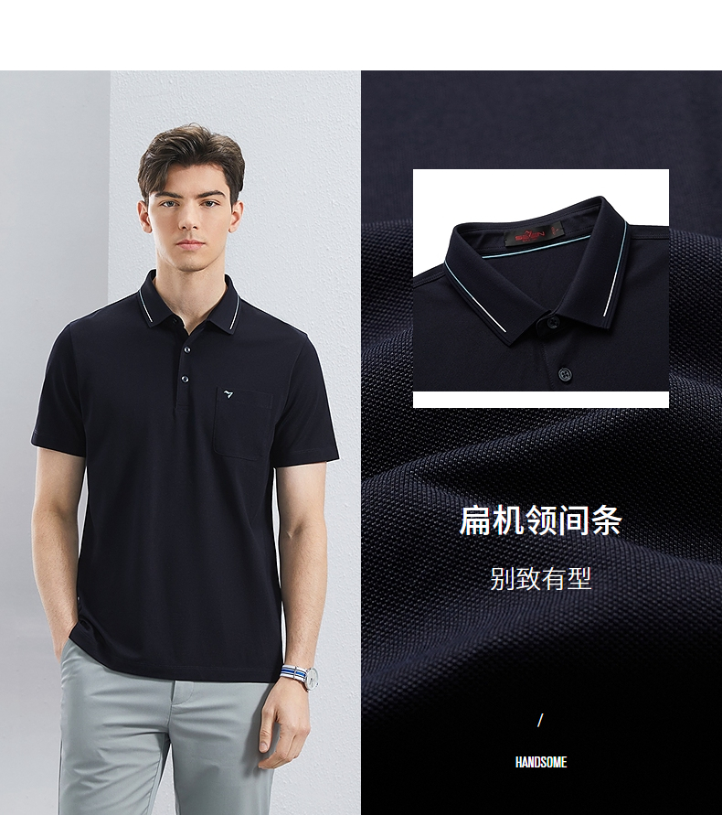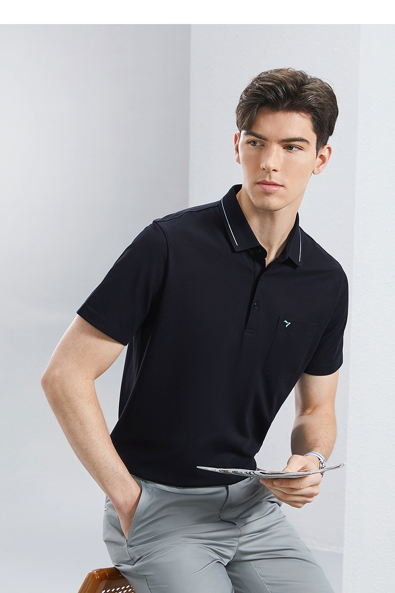 【不变形领】【5A抗菌2A防螨】柒牌男士短袖polo衫夏季薄款时尚简约口袋款T恤 126T70440