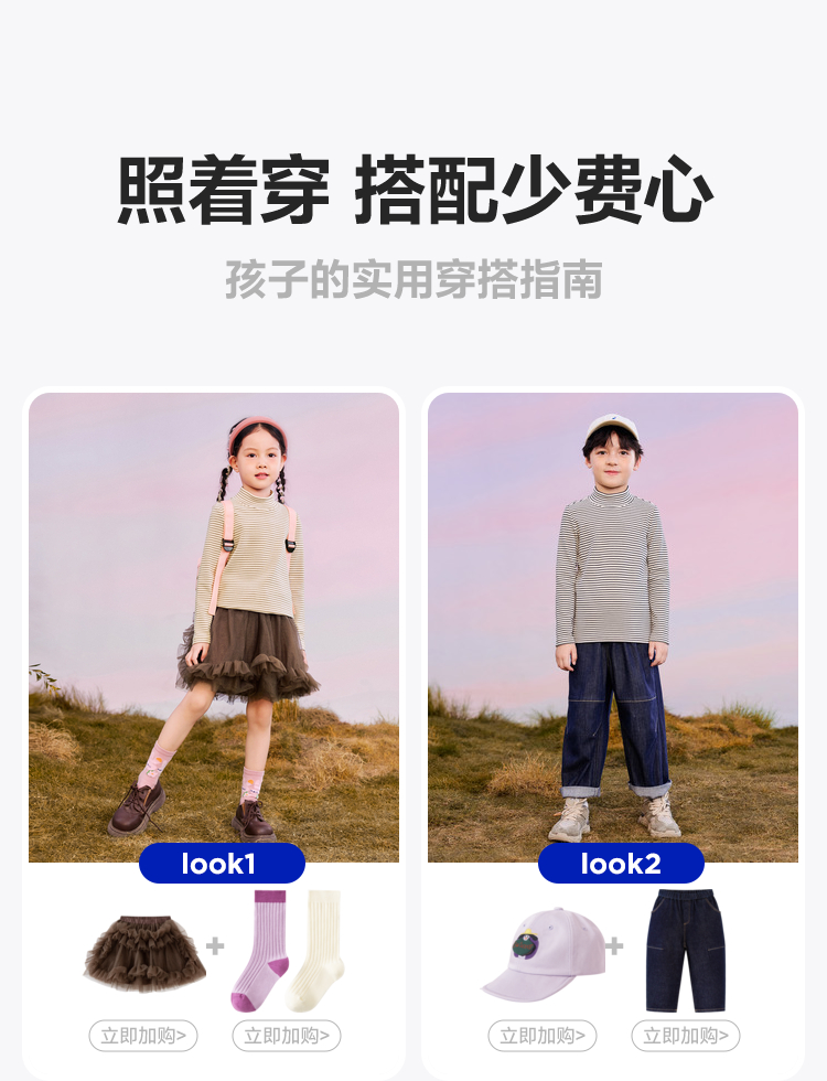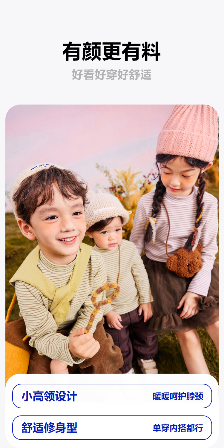 【亲子糯米T】迷你巴拉男女童T恤冬新品高领打底衫