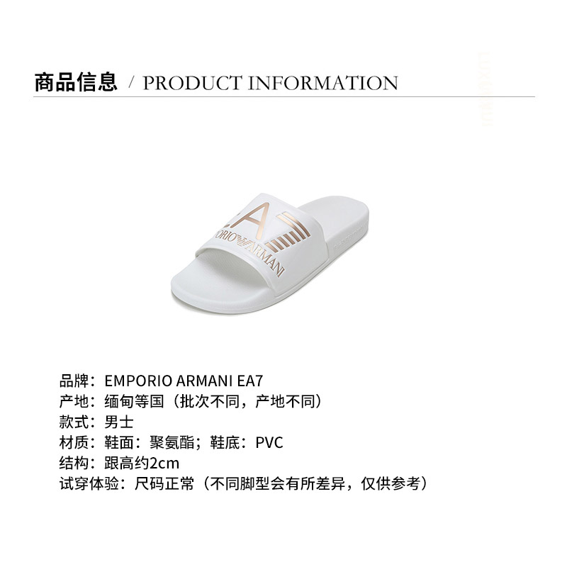 品牌:EA7/EA7产地:缅甸等国(批次不同,产地不同)款式:男士颜色:白色LOGO图案材质:聚氨酯