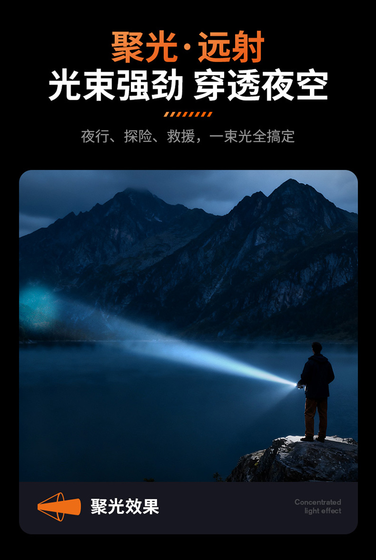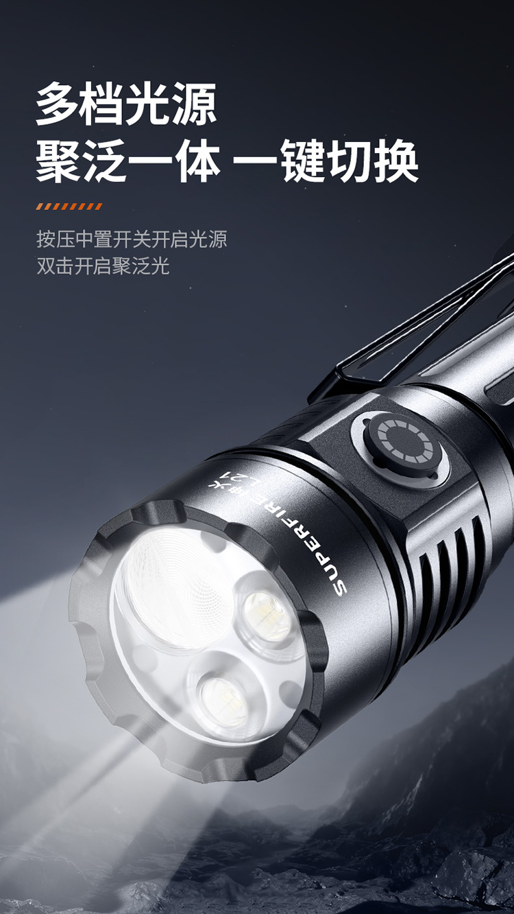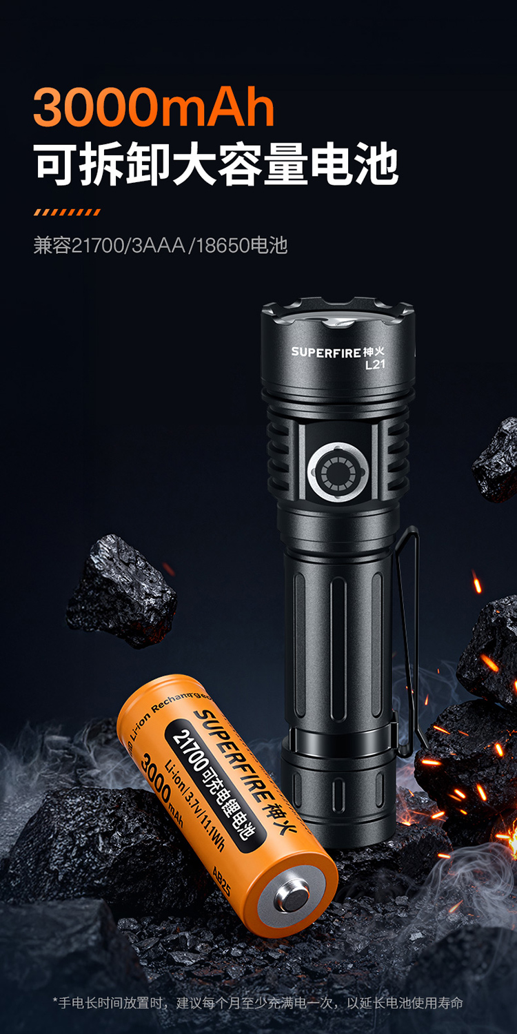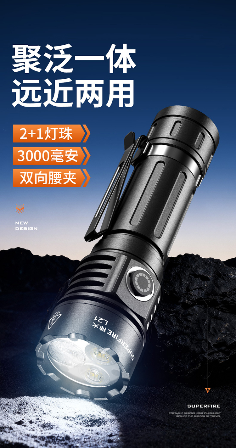 神火L21强光手电筒高亮远射长续航聚泛一体家用应急户外照明手电
