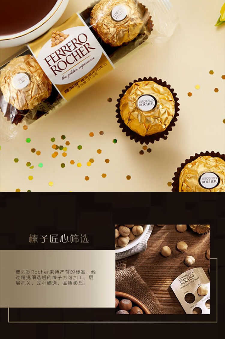 费列罗榛果威化巧克力制品3粒装37.5g/040095 多重滋味层层用心婚庆伴手礼推荐
