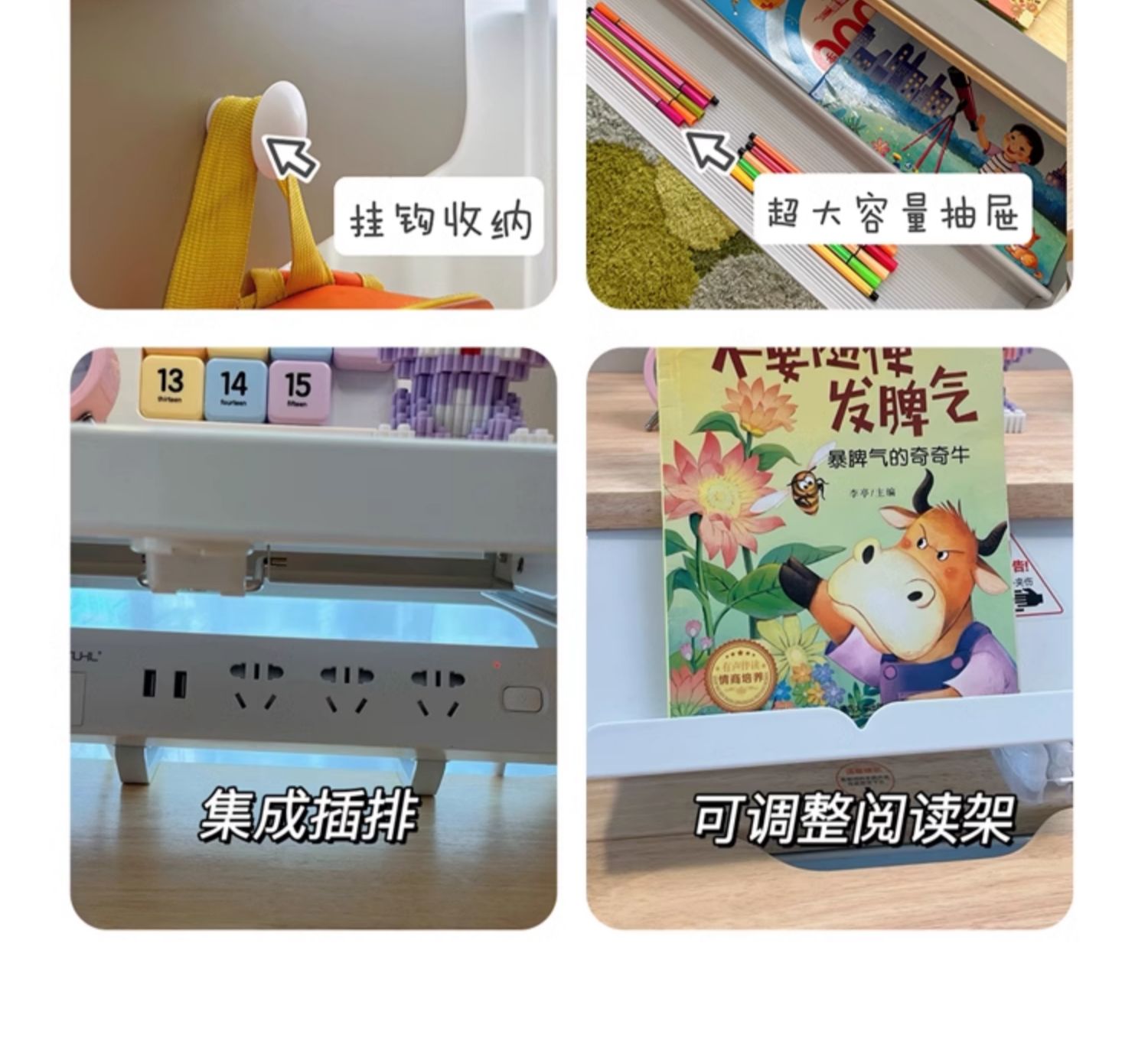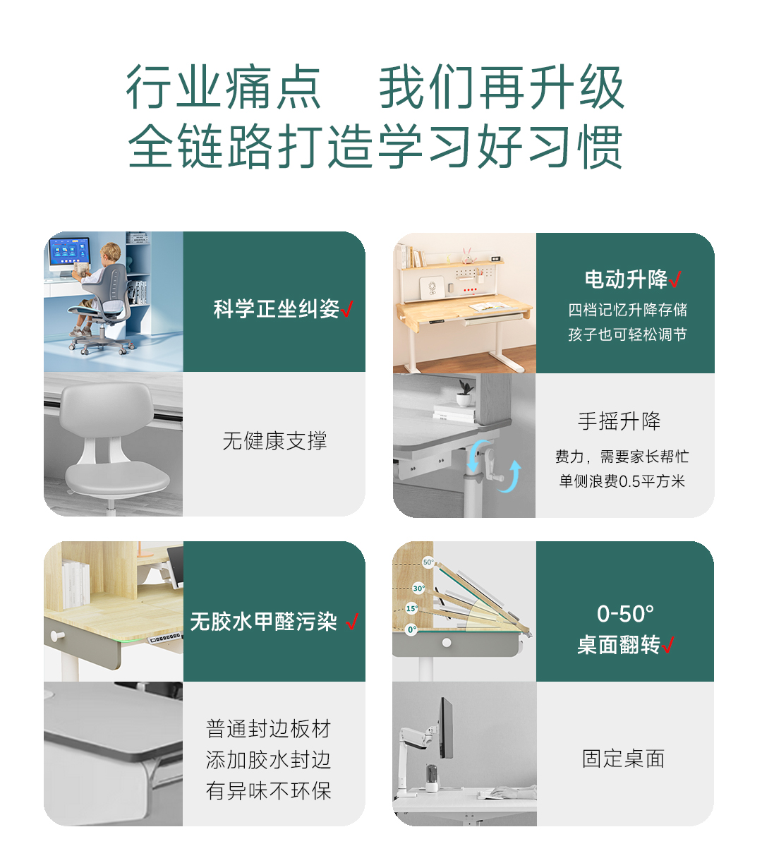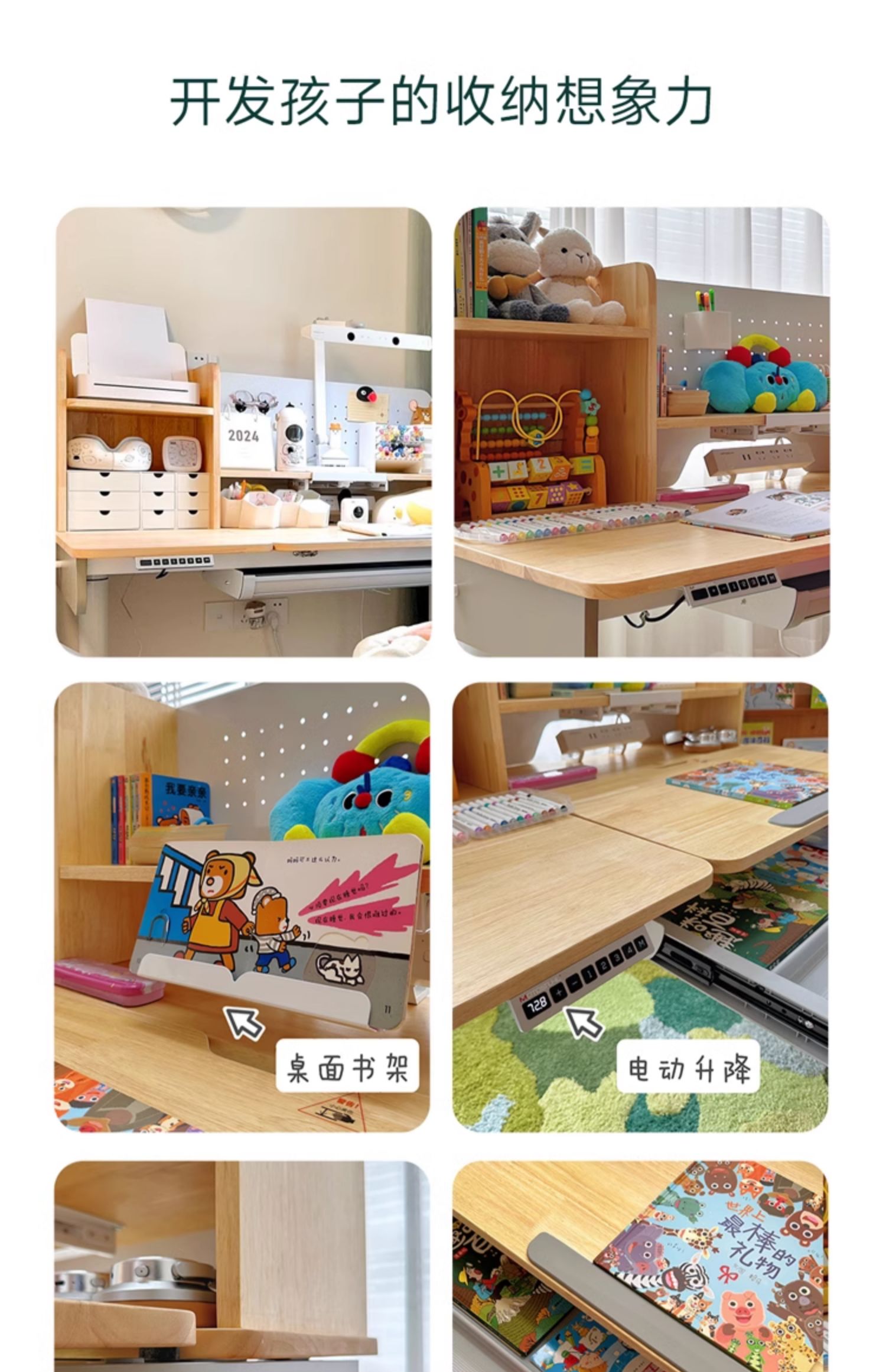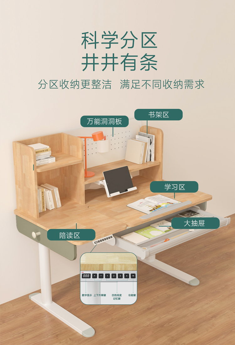 摩伽原木实木儿童书桌双驱动电动升降学习桌小学初中高中大学