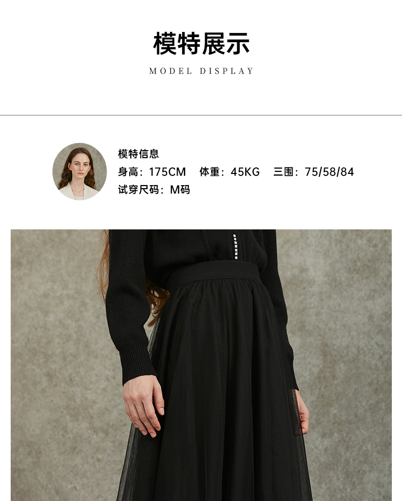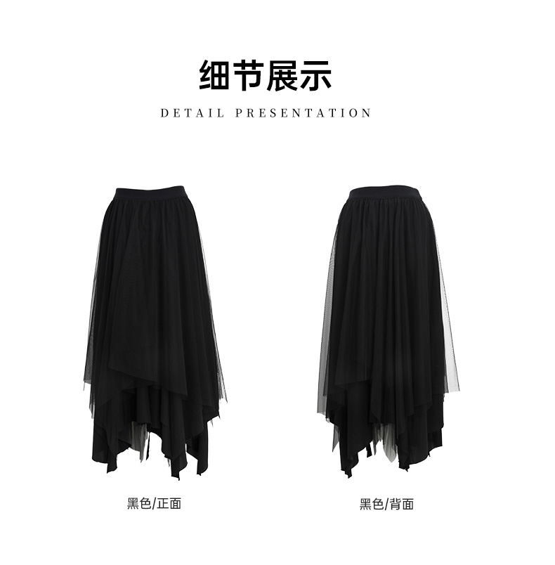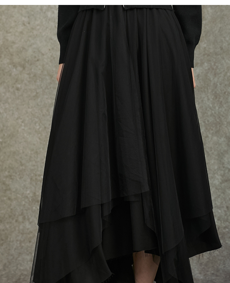 Famecoco范可儿不规则网纱半身裙长款纱裙垂坠感百搭FAC6HA027