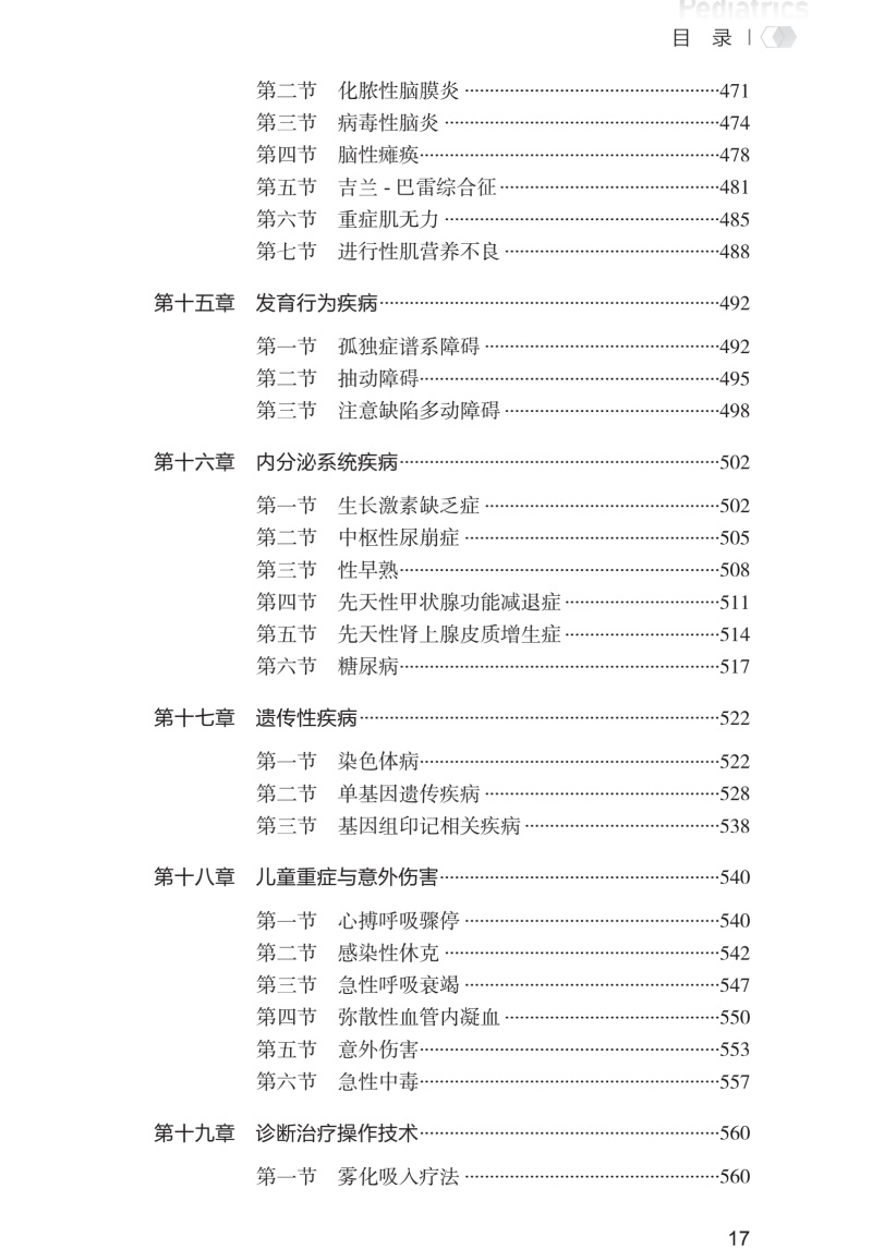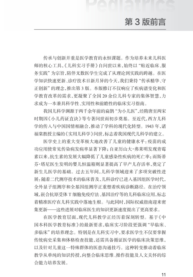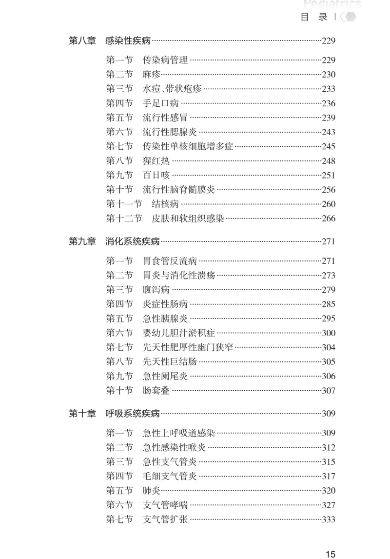 第一章儿科实习医师总则/1 第一节儿科实习医师守则/1 第二节儿科病史采集与书写/2 第三节儿科体格检查/5 第二章儿科常见症状与体征/14 第一节发热/14 第二节咳嗽/18 第三节胸腔积液/20 第四节腹痛/23 第五节呕吐/26 第六节消化道出血/28 第七节贫血/30 第八节肝脾大/33 第九节头痛/35 第十节惊厥/38 第十一节水肿/41 第十二节血尿/43 第十三节蛋白尿/46 第十四节高血压/47 第三章生长发育//49 第一节体格发育/49 第二节神经心理发育/51 第三节预防接种/54 第四节各年龄期儿童保健重点/56 第四章儿童营养与营养性疾病/60 第一节儿童营养需要量与推荐量/60 第二节婴儿喂养/62 第三节蛋白质-能量营养不良/64 第四节维生素缺乏/67 第五节微量元素缺乏症/73 第五章新生儿与新生儿疾病/77 第一节新生儿基础/77 第二节新生儿窒息和复苏/84 第三节新生儿缺氧缺血性脑病/89 第四节新生儿颅内出血/94 第五节胎粪吸入综合征/98 第六节新生儿呼吸窘迫综合征/101 第七节新生儿黄疸/106 第八节新生儿溶血病/111 第九节新生儿低钙血症/115 第十节新生儿低血糖症和高血糖症/117 第十一节支气管肺发育不良/122 第十二节新生儿感染性疾病/127 第十三节新生儿坏死性小肠结肠炎/140 第十四节新生儿产伤性疾病/144 第十五节新生儿脐部疾病/155 第十六节新生儿宫内感染/162 第六章免疫性疾病//173 第一节原发性免疫缺陷病/173 第二节继发性免疫缺陷病/190 第三节过敏性疾病/193 第七章风湿性疾病//204 第一节风湿热/204 第二节幼年型特发性关节炎/208 第三节系统性红斑狼疮/214 第四节川崎病/221 第五节过敏性紫癜/225 第八章感染性疾病//229 第一节传染病管理/229 第二节麻疹/230 第三节水痘、带状疱疹/233 第四节手足口病/236 第五节流行性感冒/239 第六节流行性腮腺炎/243 第七节传染性单核细胞增多症/245 第八节猩红热/248 第九节百日咳/251 第十节流行性脑脊髓膜炎/256 第十一节结核病/260 第十二节皮肤和软组织感染/266 第九章消化系统疾病/271 第一节胃食管反流病/271 第二节胃炎与消化性溃疡/273 第三节腹泻病/279 第四节炎症性肠病/285 第五节急性胰腺炎/295 第六节婴幼儿胆汁淤积症/300 第七节先天性肥厚性幽门狭窄/304 第八节先天性巨结肠/305 第九节急性阑尾炎/306 第十节肠套叠/307 第十章呼吸系统疾病/309 第一节急性上呼吸道感染/309 第二节急性感染性喉炎/312 第三节急性支气管炎/315 第四节毛细支气管炎/317 第五节肺炎/320 第六节支气管哮喘/327 第七节支气管扩张/333 第十一章心血管系统疾病/339 第一节心脏病诊断评估/339 第二节先天性心脏病/343 第三节充血性心力衰竭/358 第四节病毒性心肌炎/364 第五节心肌病/367 第六节感染性心内膜炎/374 第七节心律失常/377 第十二章泌尿系统疾病/387 第一节急性肾小球肾炎/387 第二节肾病综合征/390 第三节遗传性肾小球疾病/394 第四节IgA肾病/398 第五节泌尿道感染/404 第六节肾小管病/408 第七节急性肾损伤/412 第八节溶血尿毒症综合征/417 第十三章血液系统疾病/420 第一节营养性缺铁性贫血/420 第二节营养性巨幼细胞贫血/422 第三节再生障碍性贫血/424 第四节红细胞葡萄糖-6-磷酸脱氢酶缺乏症/428 第五节地中海贫血/431 第六节自身免疫性溶血性贫血/436 第七节免疫性血小板减少症/438 第八节血友病/442 第九节白血病/447 第十节淋巴瘤/450 第十一节朗格汉斯细胞组织细胞增生症/456 第十二节噬血细胞性淋巴组织细胞增生症/459 第十四章神经肌肉疾病/464 第一节癫痫/464 第二节化脓性脑膜炎/471 第三节病毒性脑炎/474 第四节脑性瘫痪/478 第五节吉兰-巴雷综合征/481 第六节重症肌无力/485 第七节进行性肌营养不良/488 第十五章发育行为疾病/492 第一节孤独症谱系障碍/492 第二节抽动障碍/495 第三节注意缺陷多动障碍/498 第十六章内分泌系统疾病/502 第一节生长激素缺乏症/502 第二节中枢性尿崩症/505 第三节性早熟/508 第四节先天性甲状腺功能减退症/511 第五节先天性肾上腺皮质增生症/514 第六节糖尿病/517 第十七章遗传性疾病/522 第一节染色体病/522 第二节单基因遗传疾病/528 第三节基因组印记相关疾病/538 第十八章儿童重症与意外伤害/540 第一节心搏呼吸骤停/540 第二节感染性休克/542 第三节急性呼吸衰竭/547 第四节弥散性血管内凝血/550 第五节意外伤害/553 第六节急性中毒/557 第十九章诊断治疗操作技术/560 第一节雾化吸入疗法/560 第二节氧气疗法/563 第三节洗胃法/564 第四节灌肠术/566 第五节导尿术/569 第六节鼻胃管插管术/571 第七节心肺复苏术/572 第八节气管插管术/574 第九节静脉穿刺术/576 第十节成分输血/578 第十一节腰椎穿刺术/582 第十二节胸腔穿刺术/584 第十三节腹腔穿刺术/587 第十四节骨髓穿刺术/588