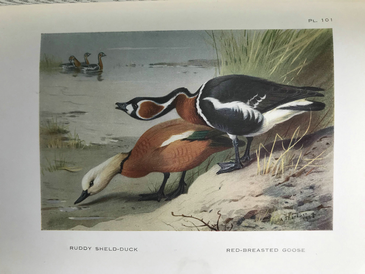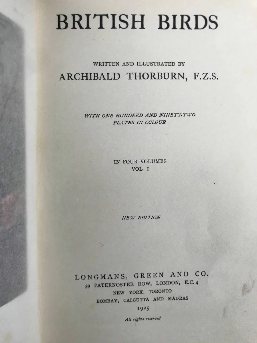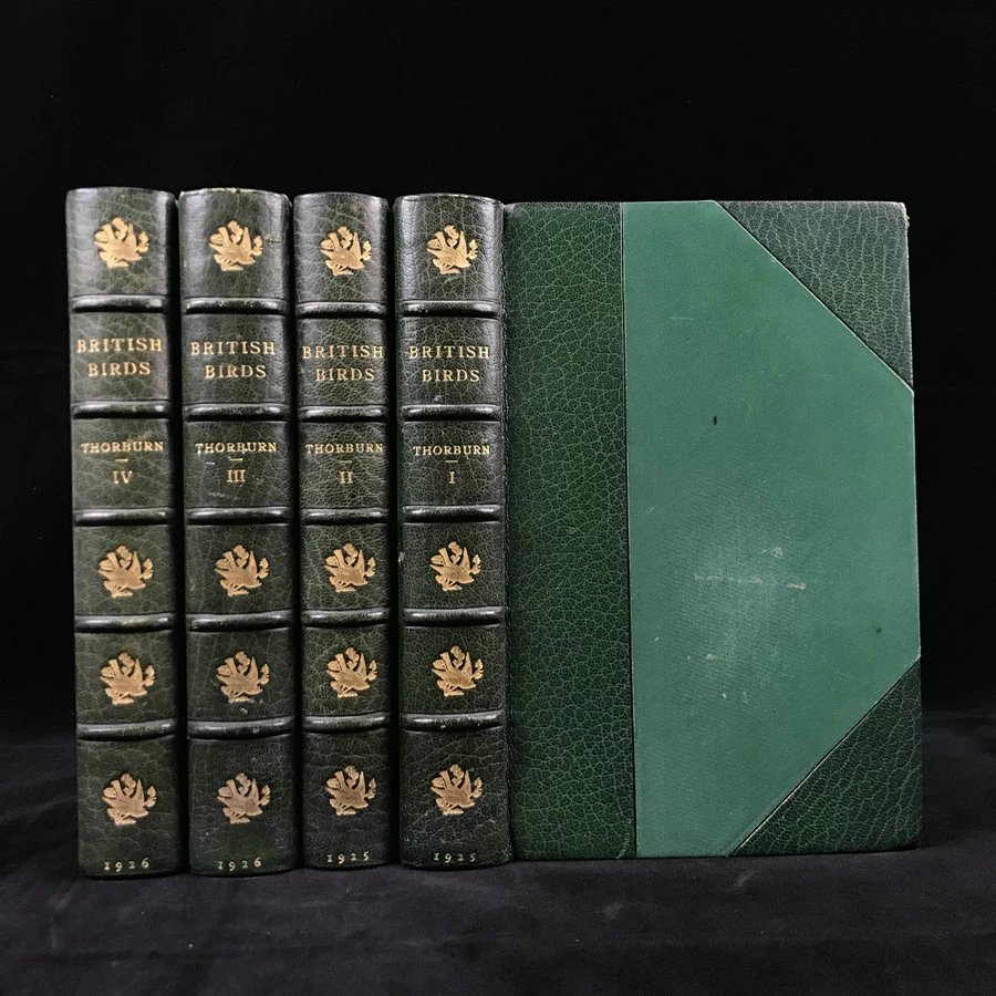 1925年 索伯恩《英国鸟类图鉴》(全4卷) 192幅彩色插图 真皮精装大32开