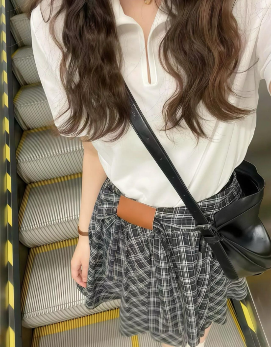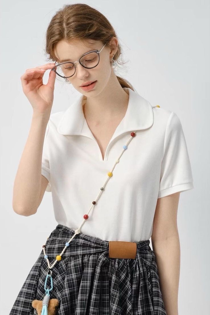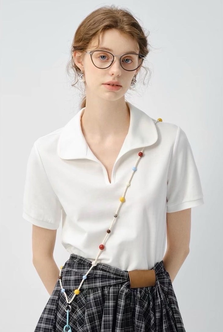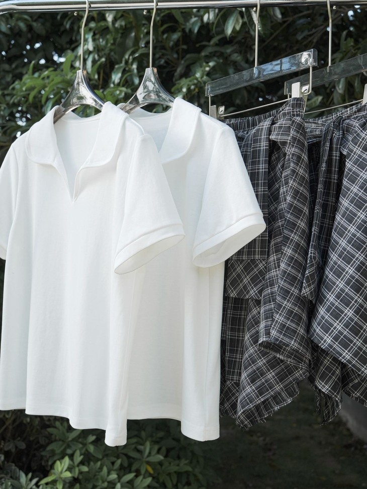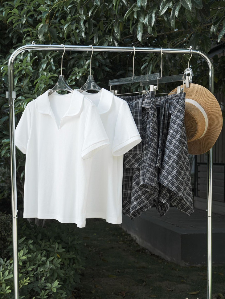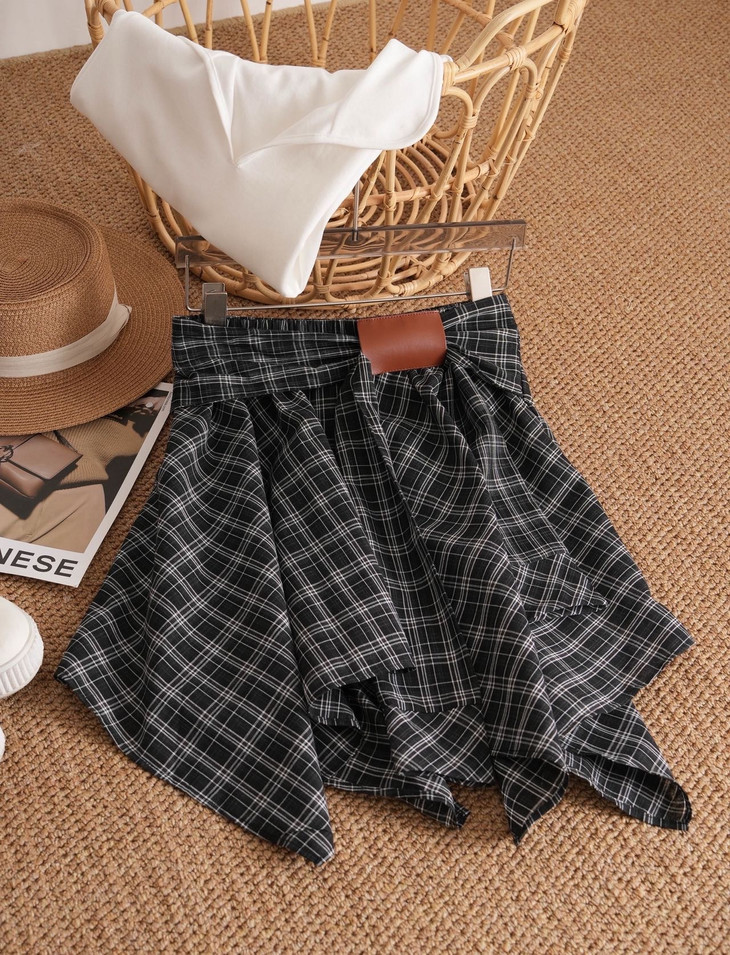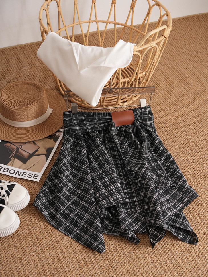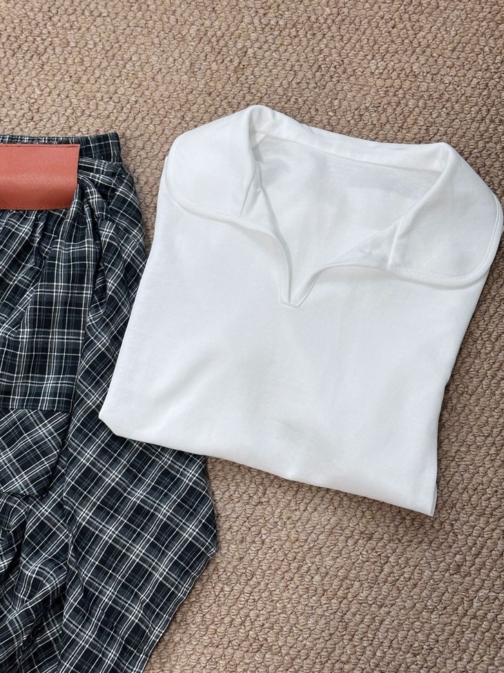 🌸春夏限定💰【苏格兰格子不规则半身裙&娃娃领正肩T恤】甜酷风造型,简约韩系氛围感穿搭!☀️翻领设计展现颈部线条,日常百搭又通勤