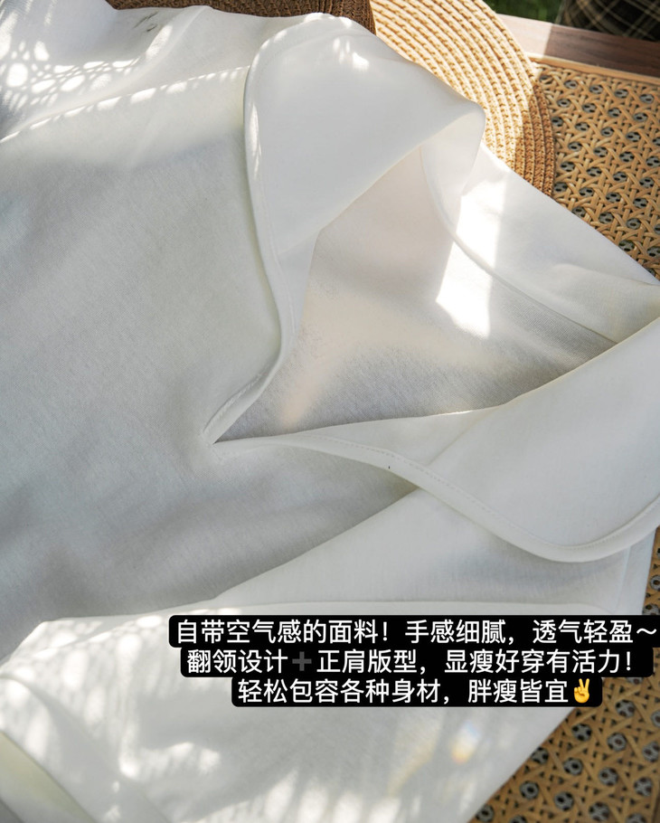 翻领V字领口 正肩设计上衣——直角肩轻松拿捏 拒绝软塌显壮❌ 微宽松正肩剪裁,精准贴合肩线 视觉缩窄5cm❗️ 溜肩、圆肩秒变“直角肩” 藏肉显瘦一绝 微胖姐妹也能穿出纸片人既视感