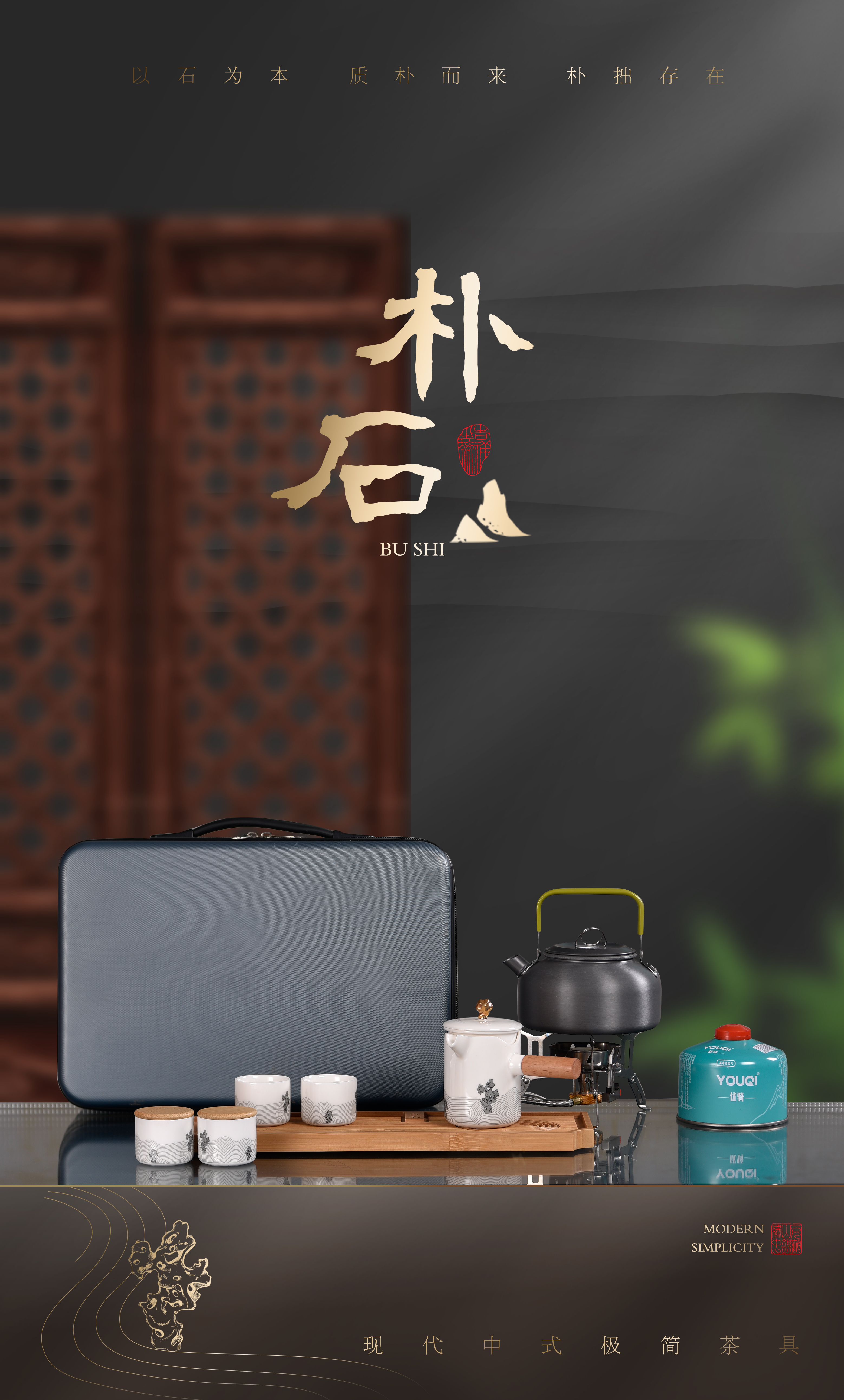 知勤堂 品牌陶瓷茶具创意新中式朴石户外套装旅行野餐露营便携