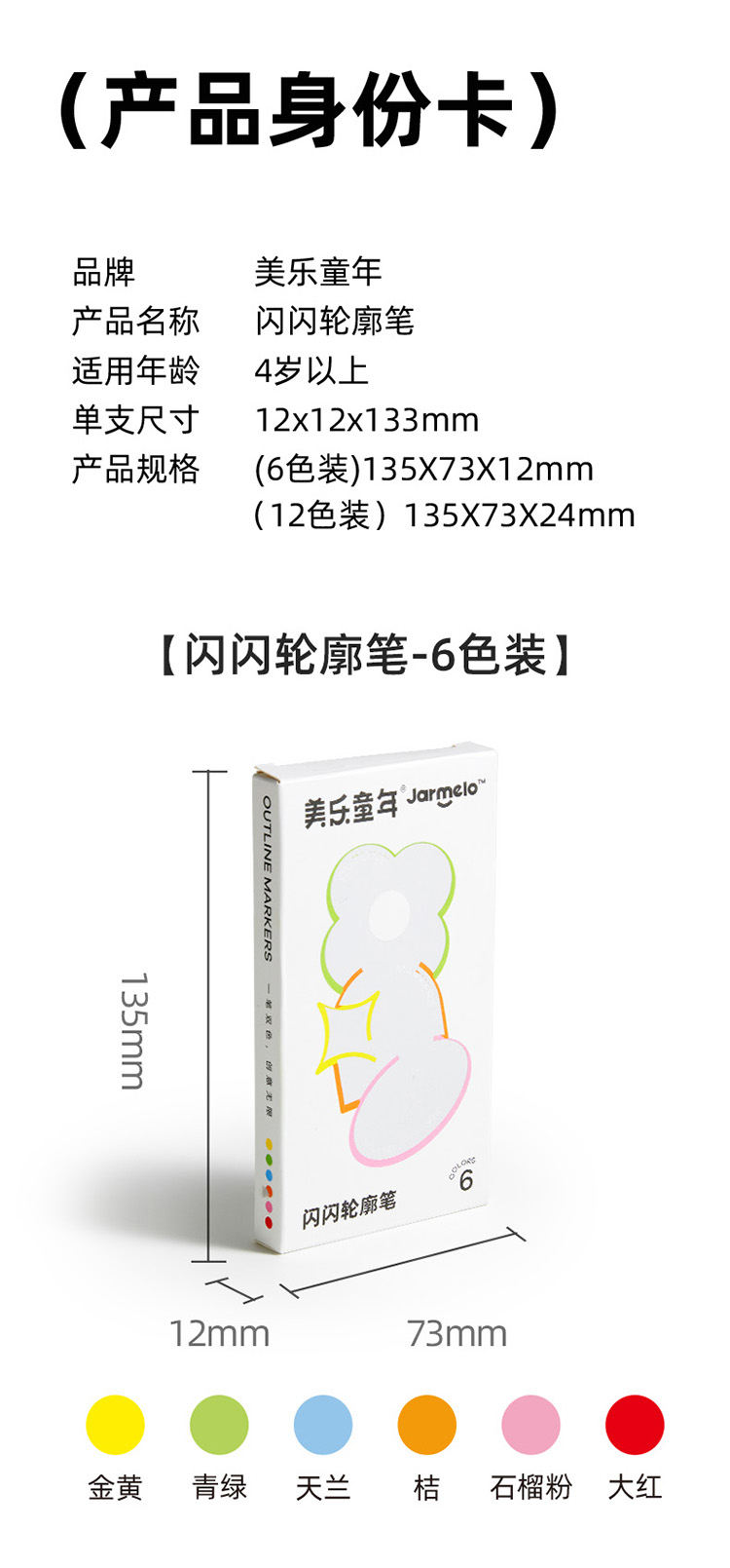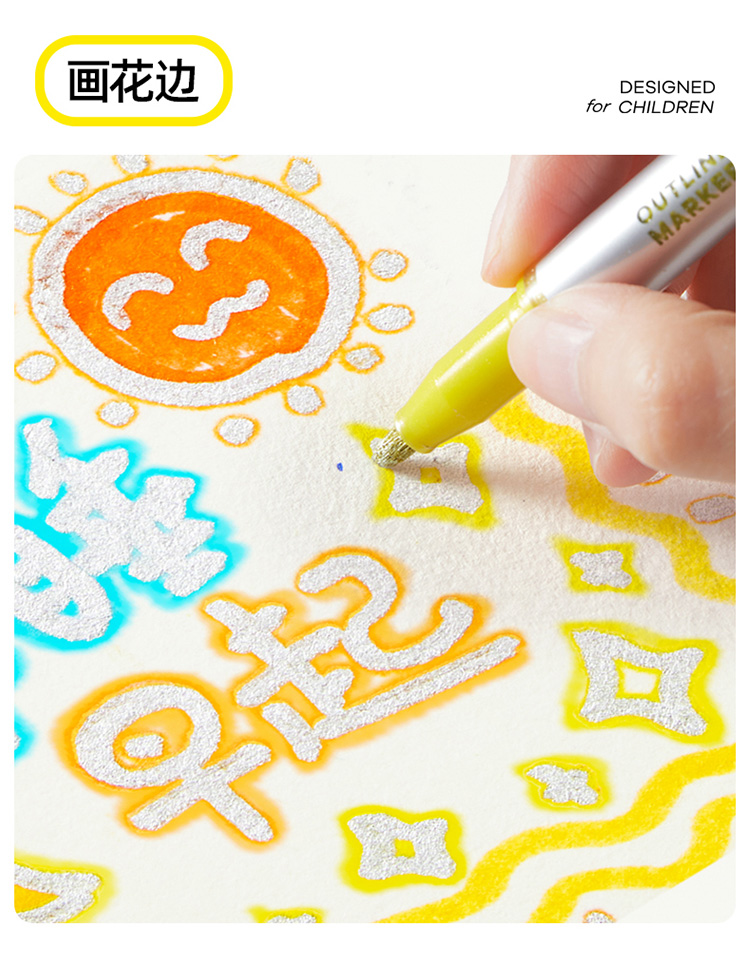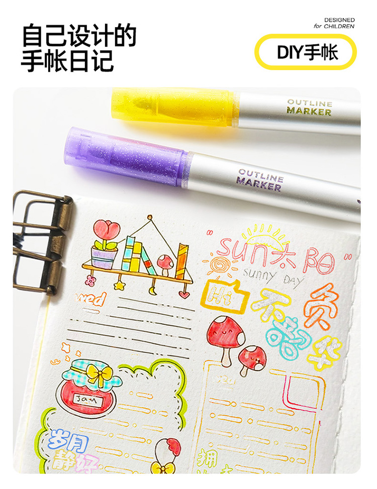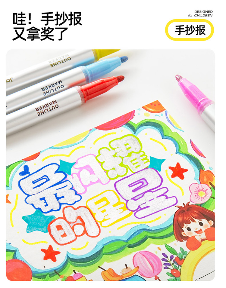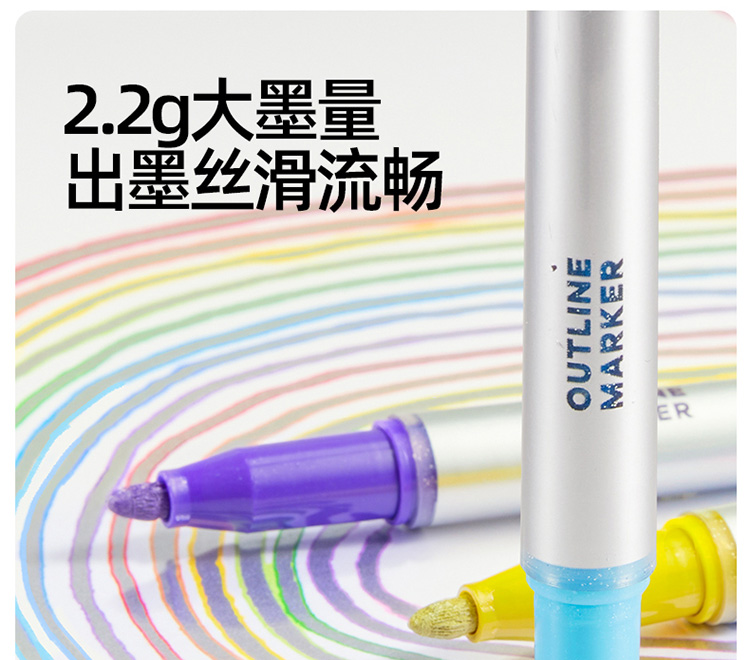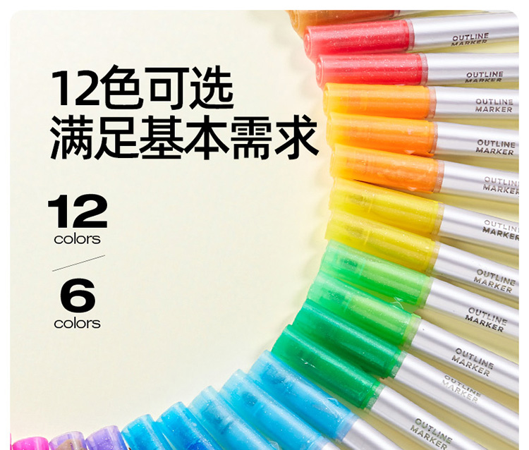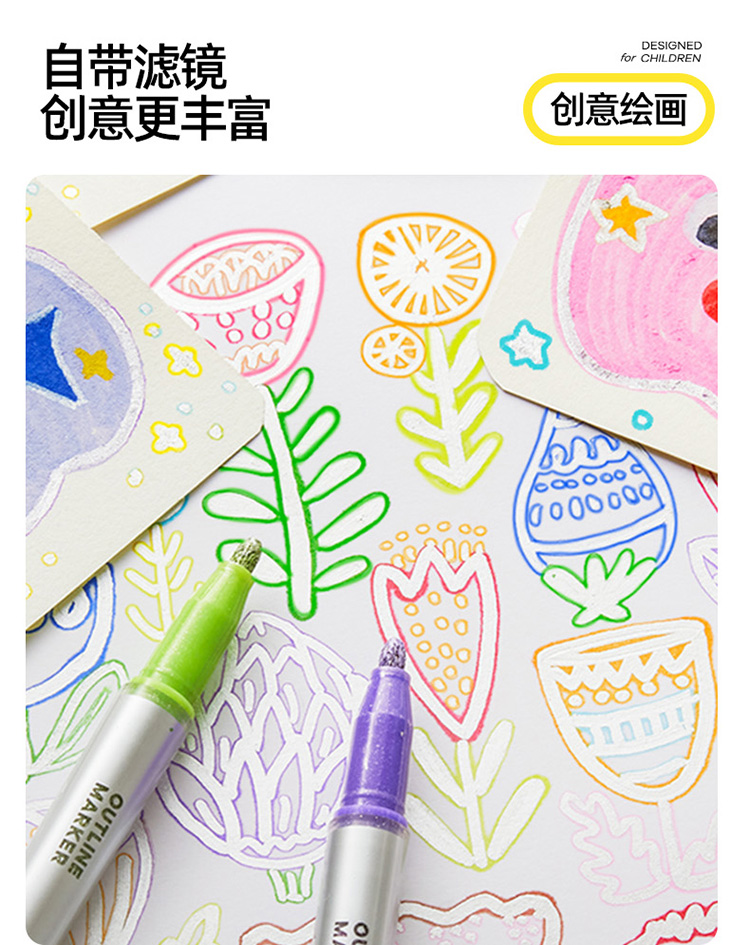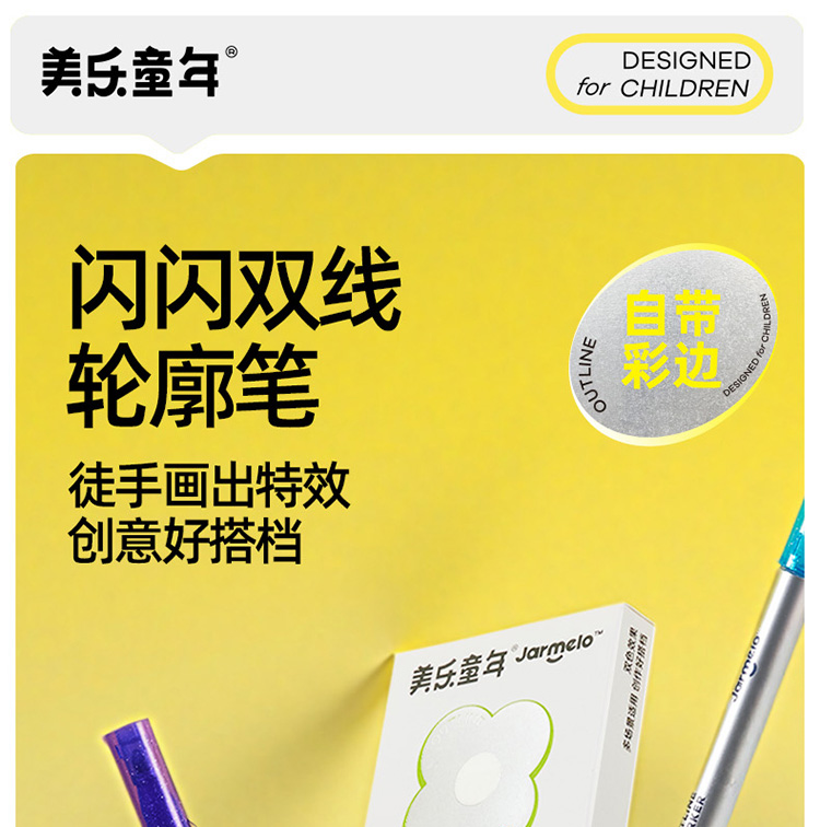 美乐童年闪闪轮廓笔双色双线花型曲线手抄报专用荧光笔彩色记号笔儿童闪光彩色笔小学生专用无毒高颜值发光笔