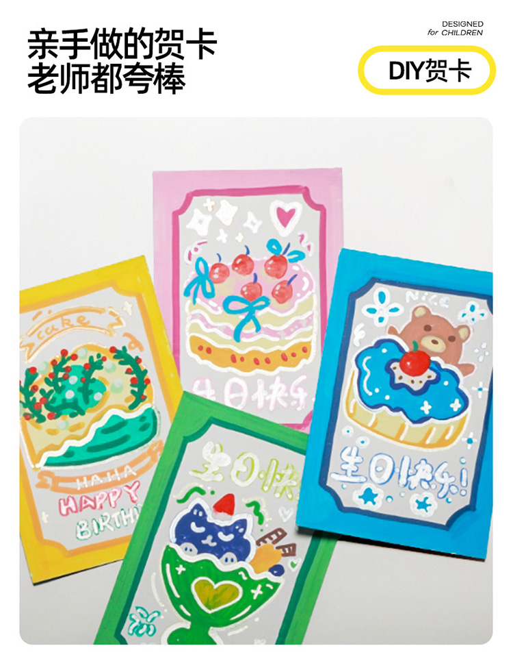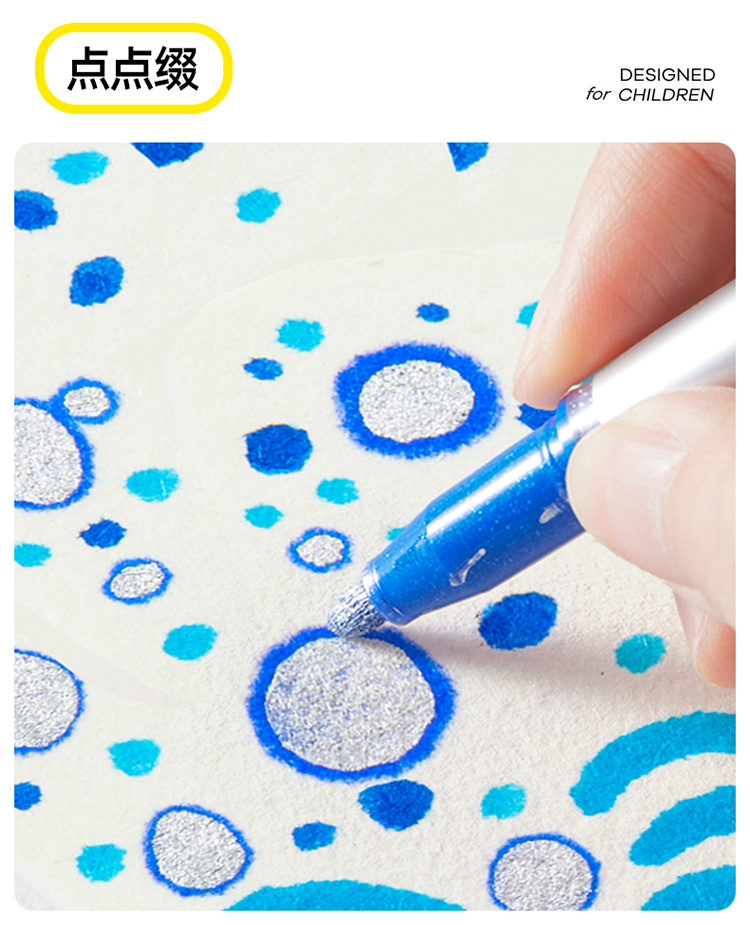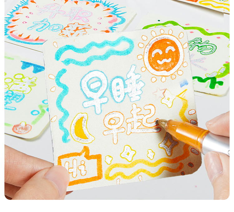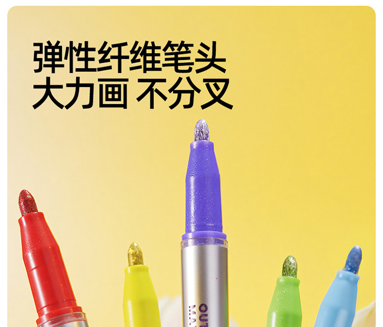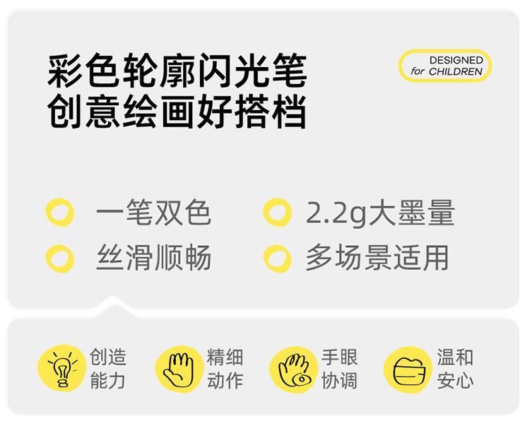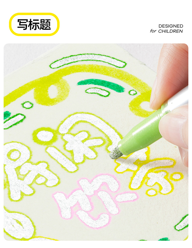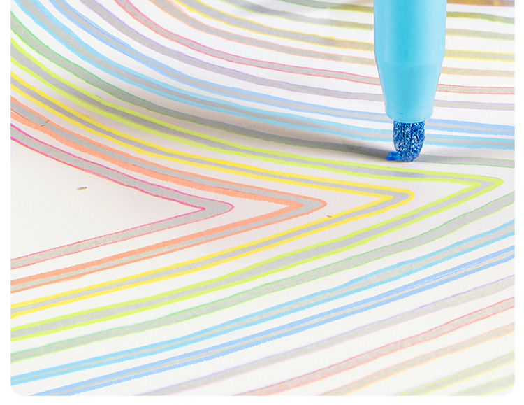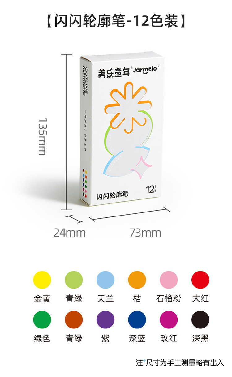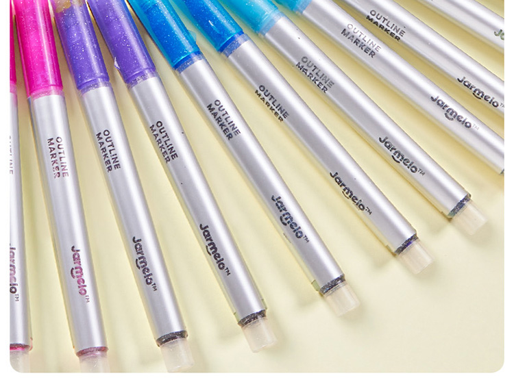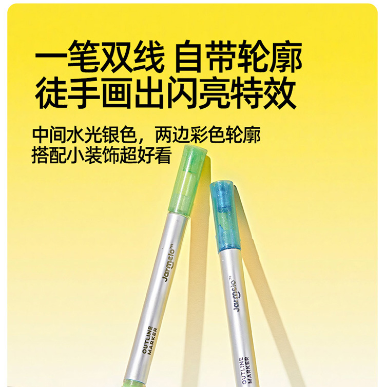 美乐童年闪闪轮廓笔双色双线花型曲线手抄报专用荧光笔彩色记号笔儿童闪光彩色笔小学生专用无毒高颜值发光笔