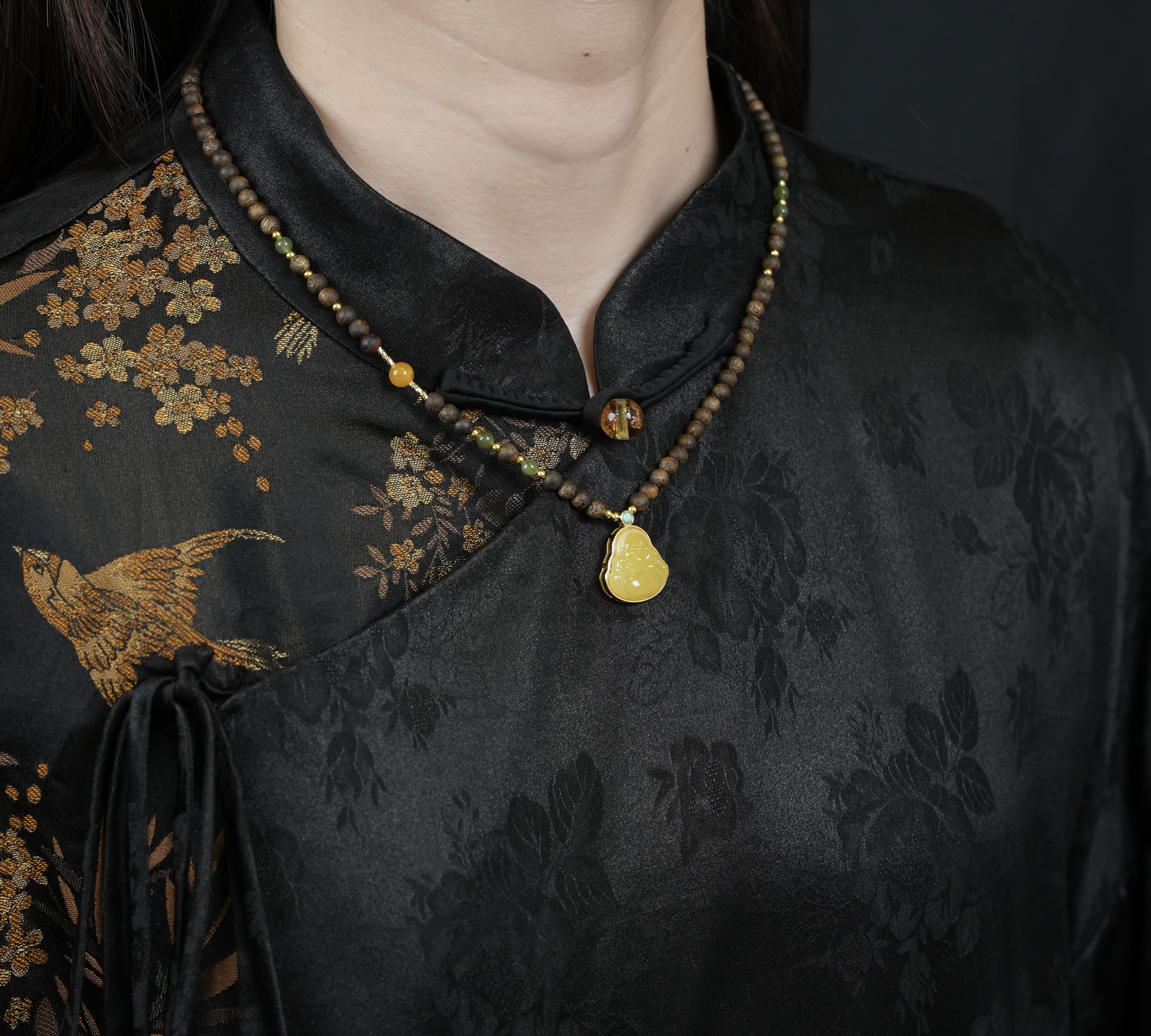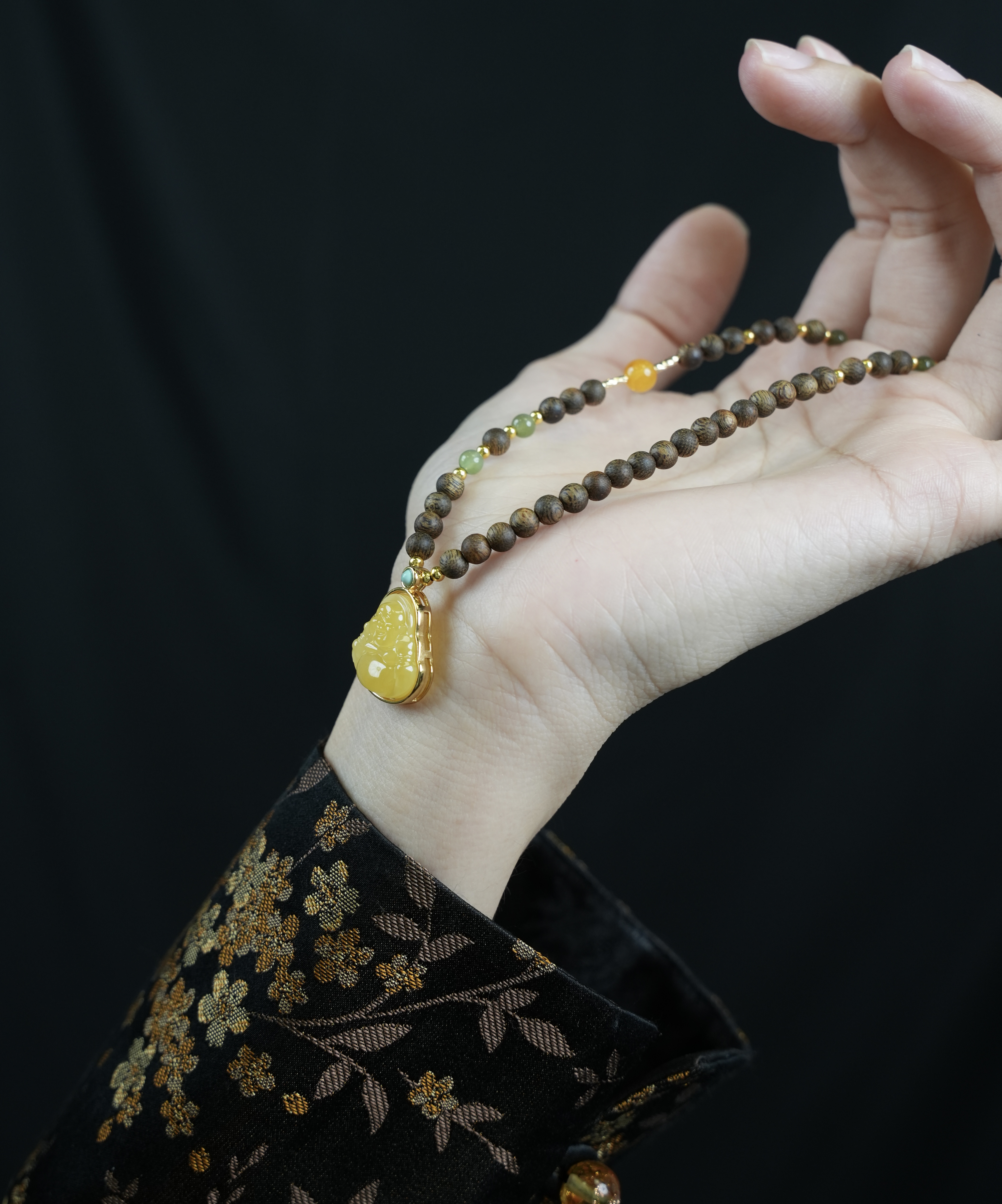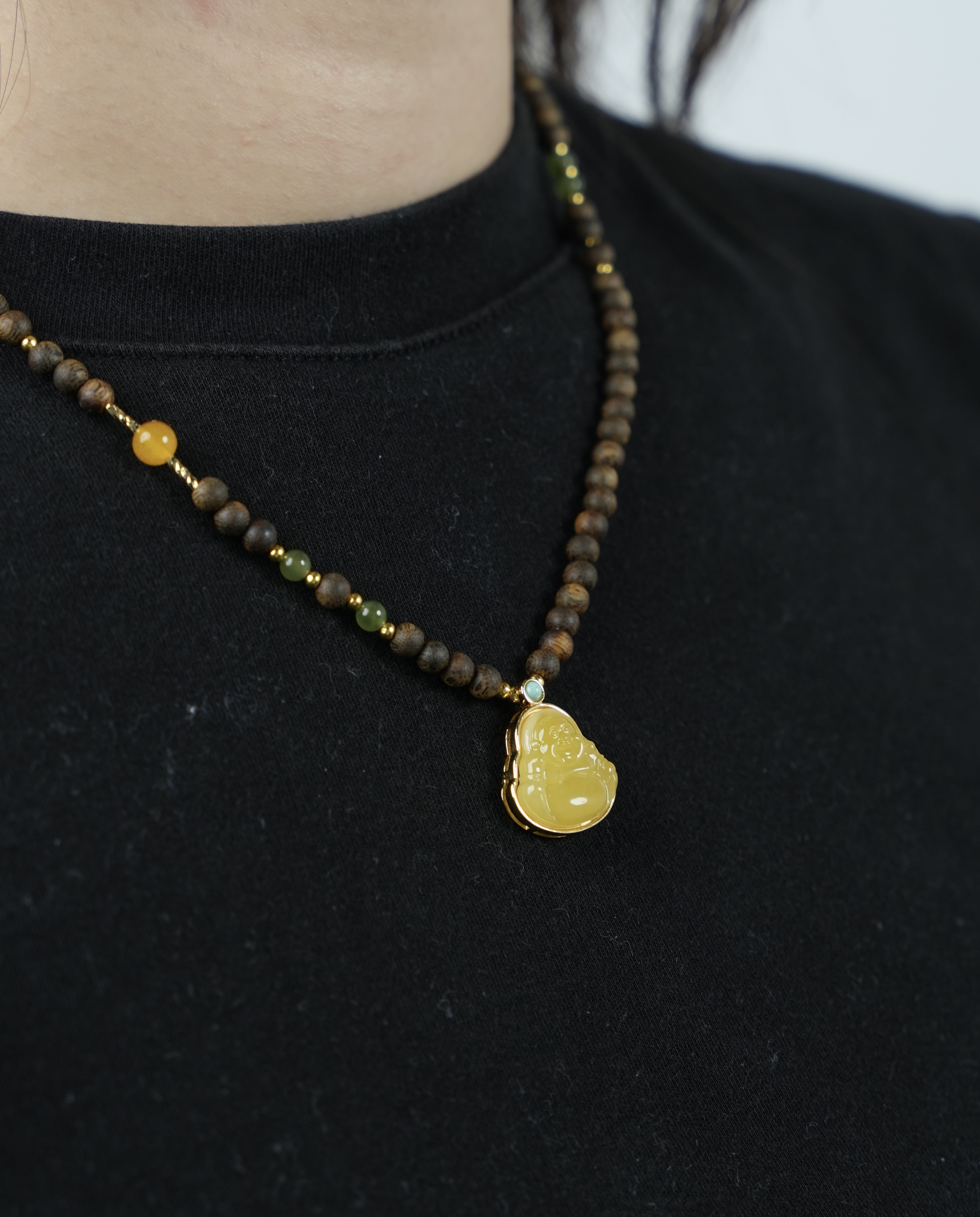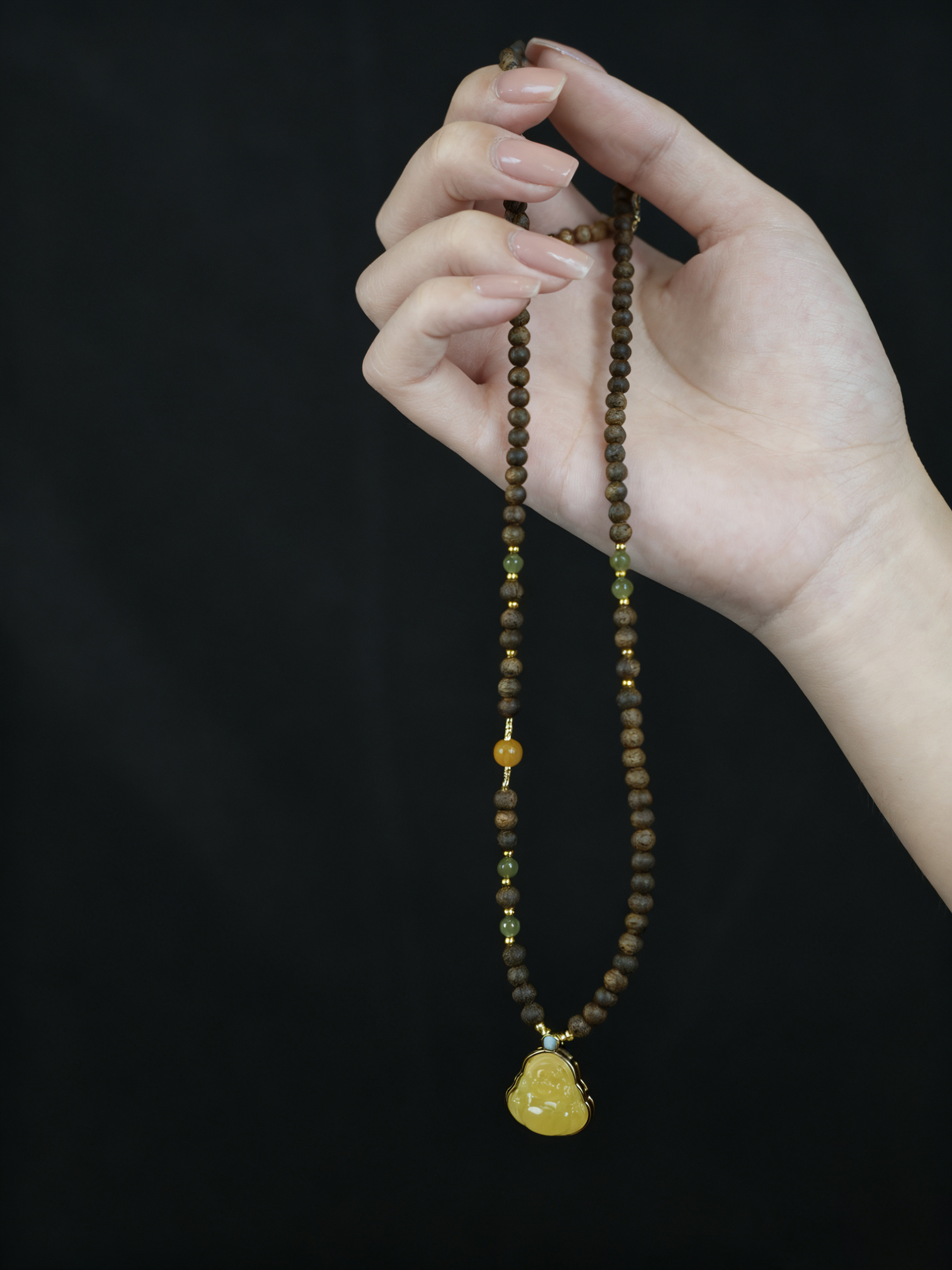 棋楠沉香与蜜蜡笑口常开佛的组合