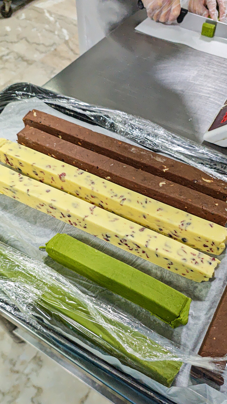 因此我们摈弃了添加果仁的做法,纯纯的黄油与纯纯的抹茶粉结合