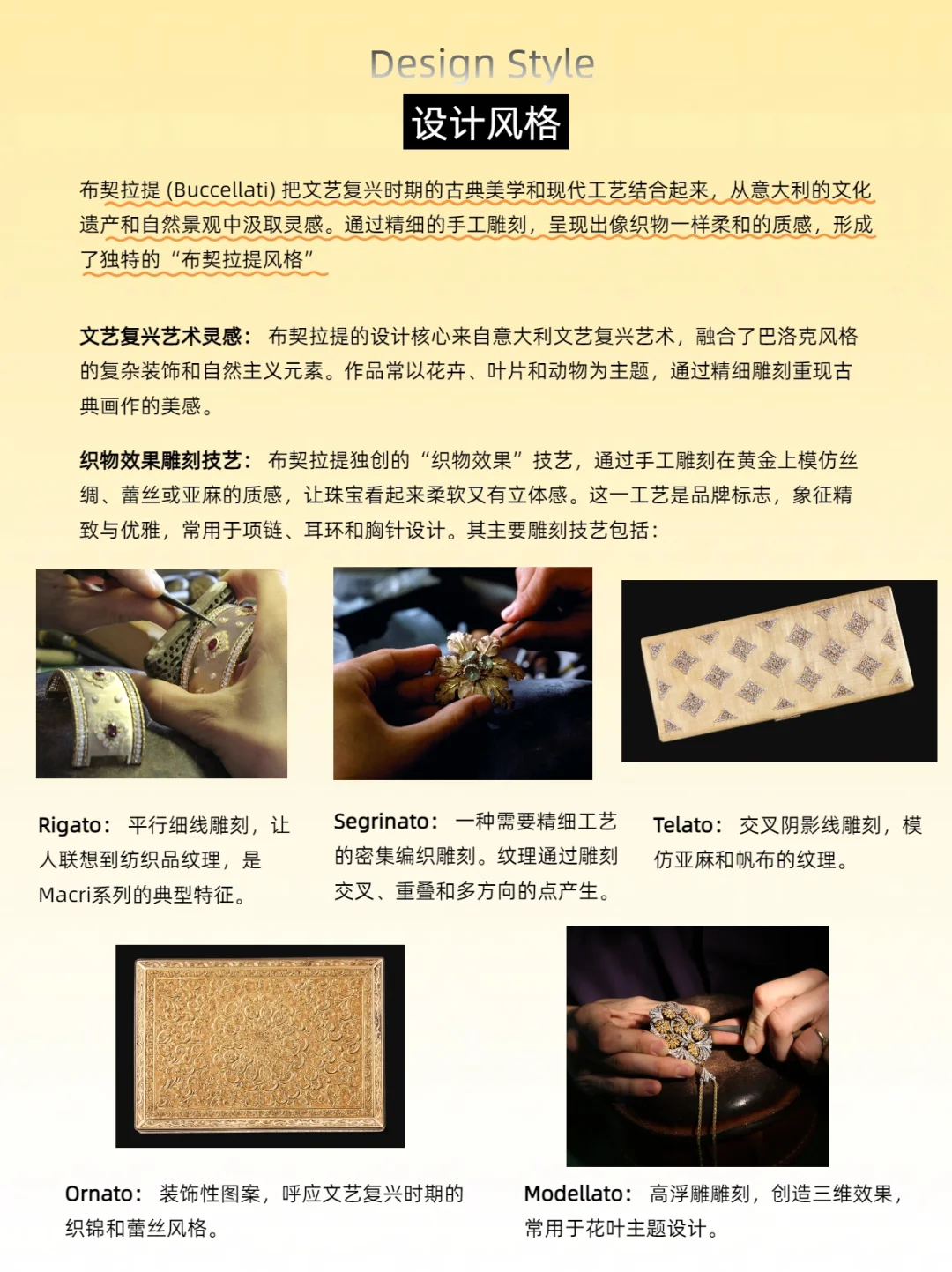 然后剩下的织纹雕金就是那个Rombi和Macri这两个系列基本上都是Meini来完成的,最后的几个步骤(包括字印)是在布契拉提他们自己的小workshop里完成,这个步骤我们是接触不到的.所以说我们品牌产品,是在工艺上做区分。