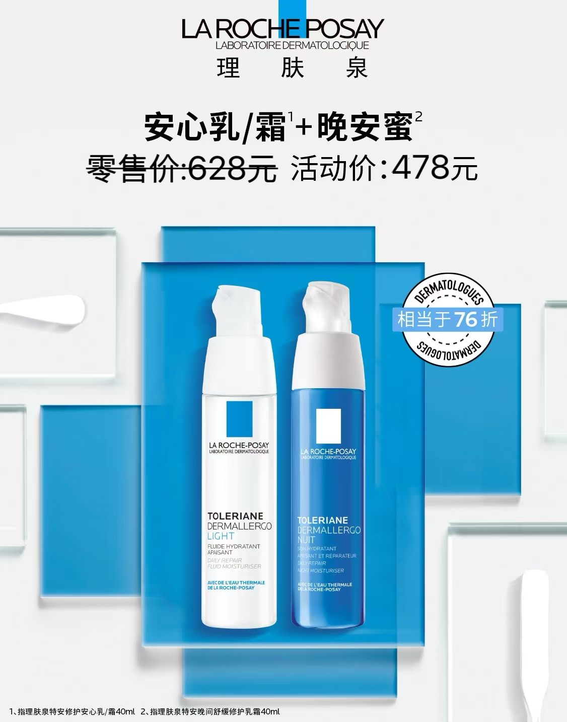 【理肤泉4月】B1F理肤泉特安修护乳40ml/1支+理肤泉特安夜间舒缓修护乳霜40ml/1支
