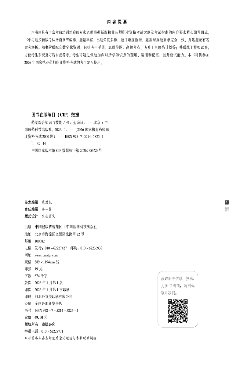 2026国家执业药师职业资格考试2000题 药学综合知识与技能 张万金 主编 赠2套模拟试卷 9787521458251 中国医药科技出版社