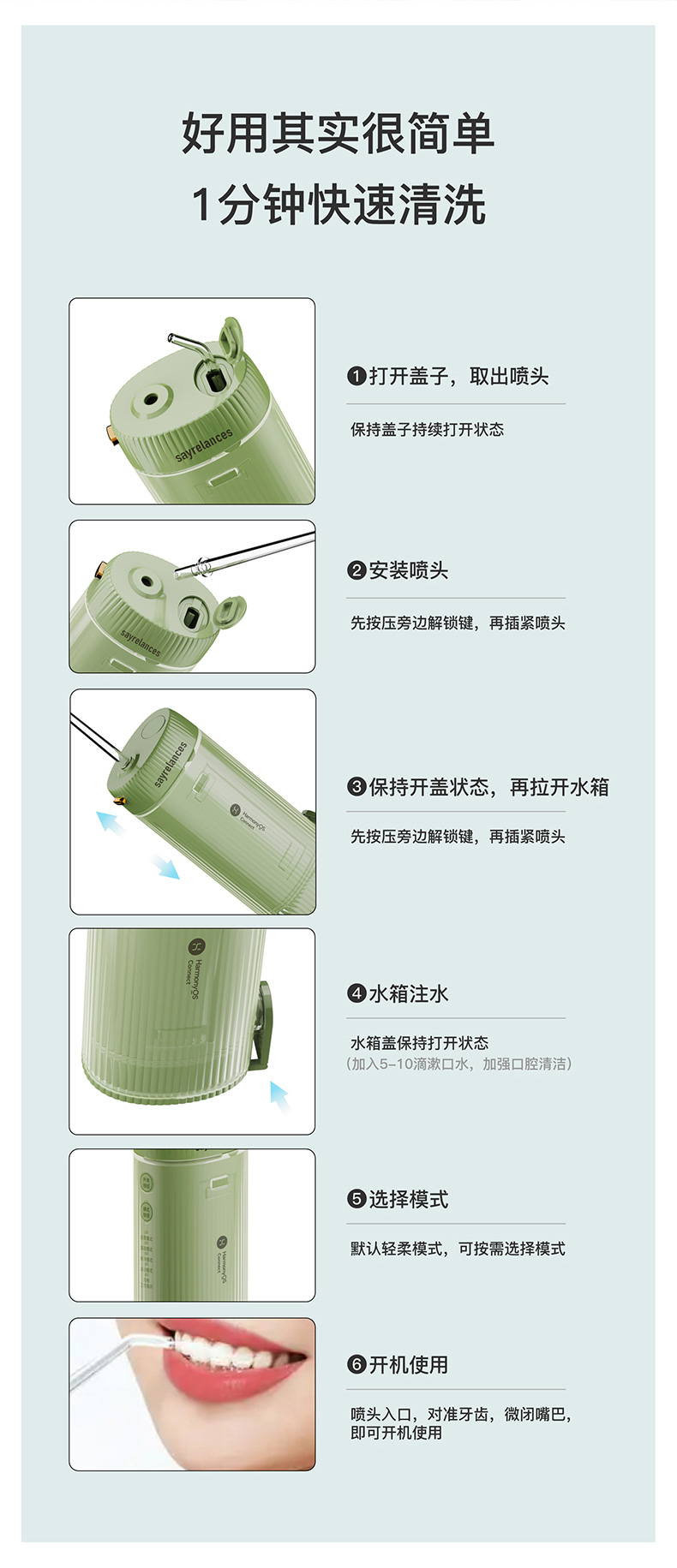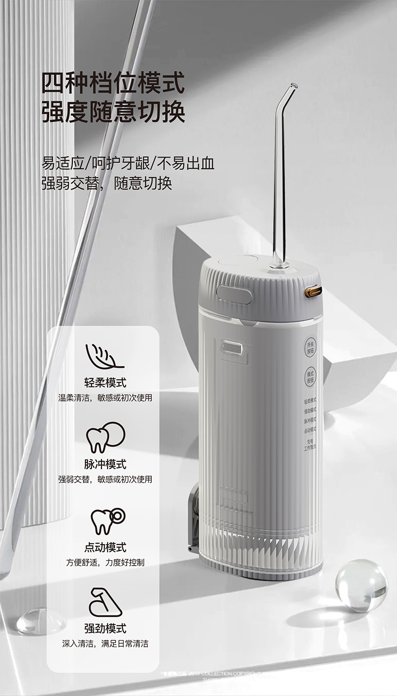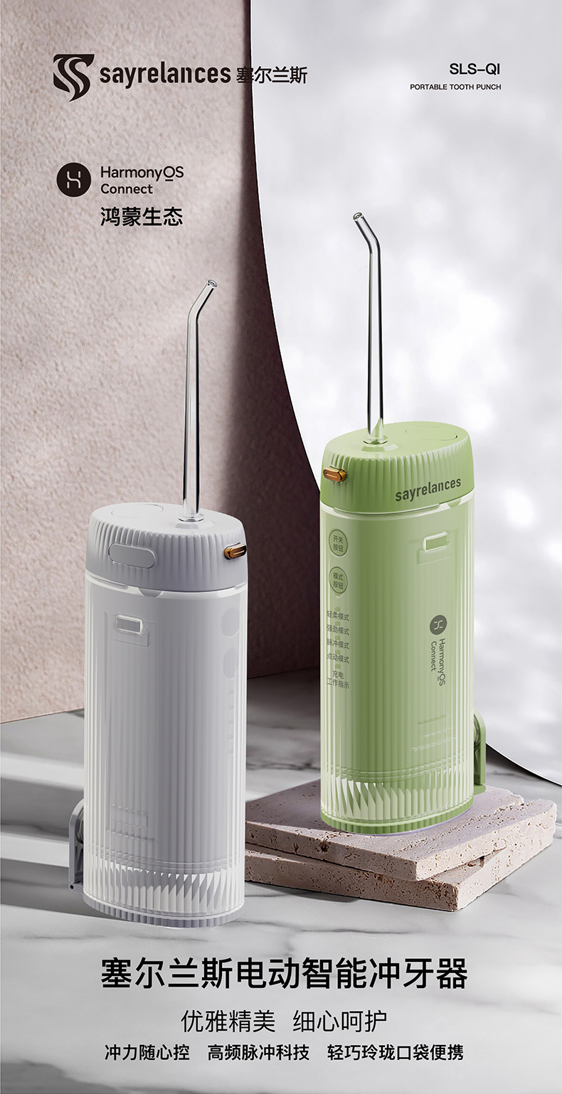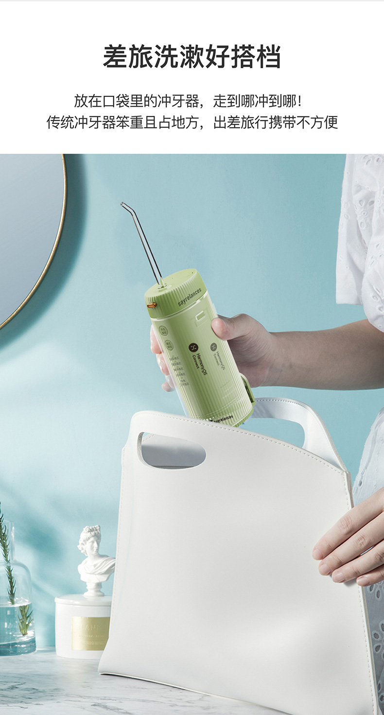【全新升级款】塞尔兰斯便携式智能冲牙器SLS-Q1 口袋便携水牙线 4种洁牙模式切换 IPX7级防水 可拆卸易清洗 160ML大容量水箱